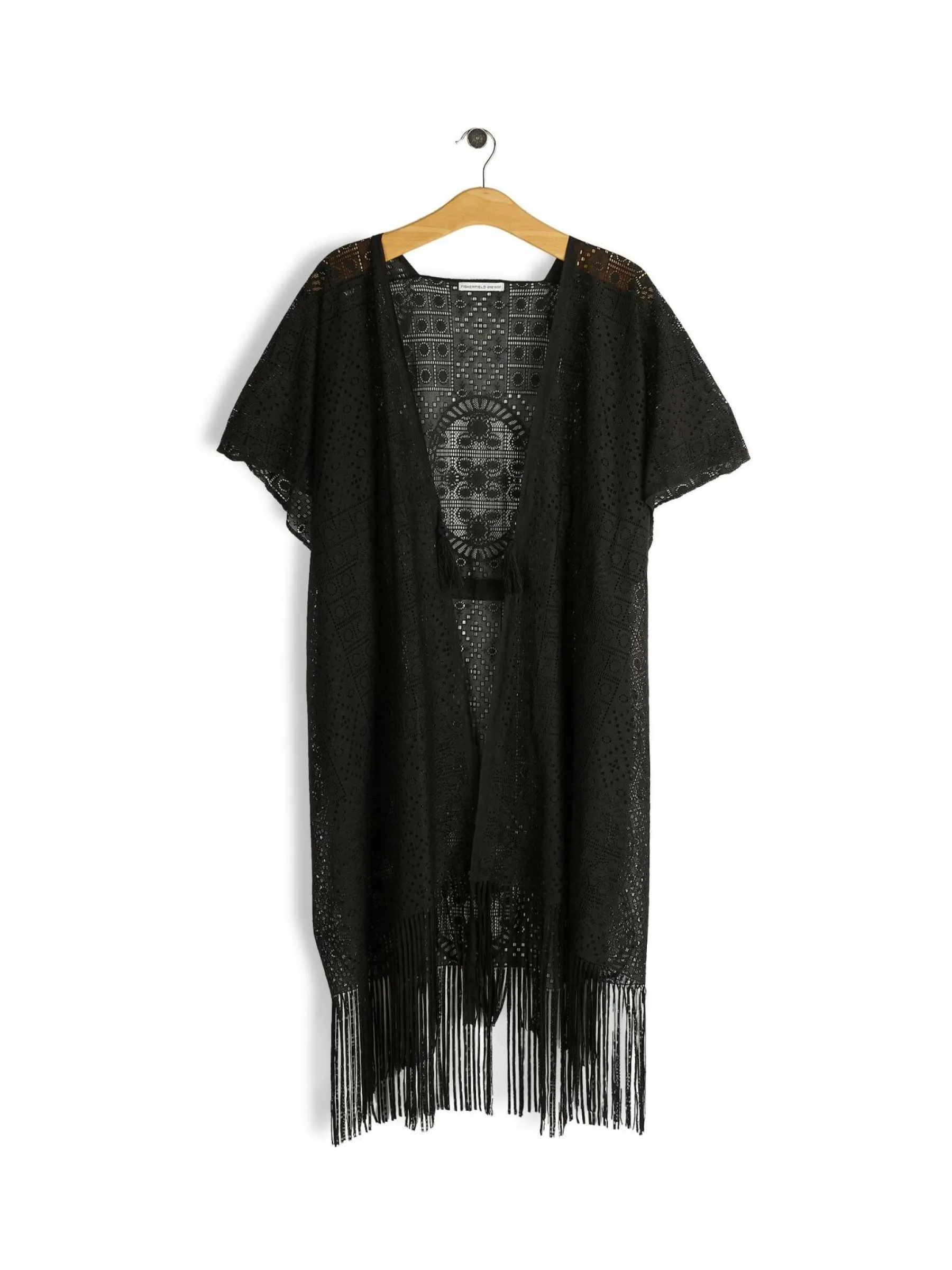 Kolor: czarnyKrój: regularTyp: szal, ponchoDługość: dlugiePattern style: pojedynczy kolor, szydełkowaneDetal: bez z…