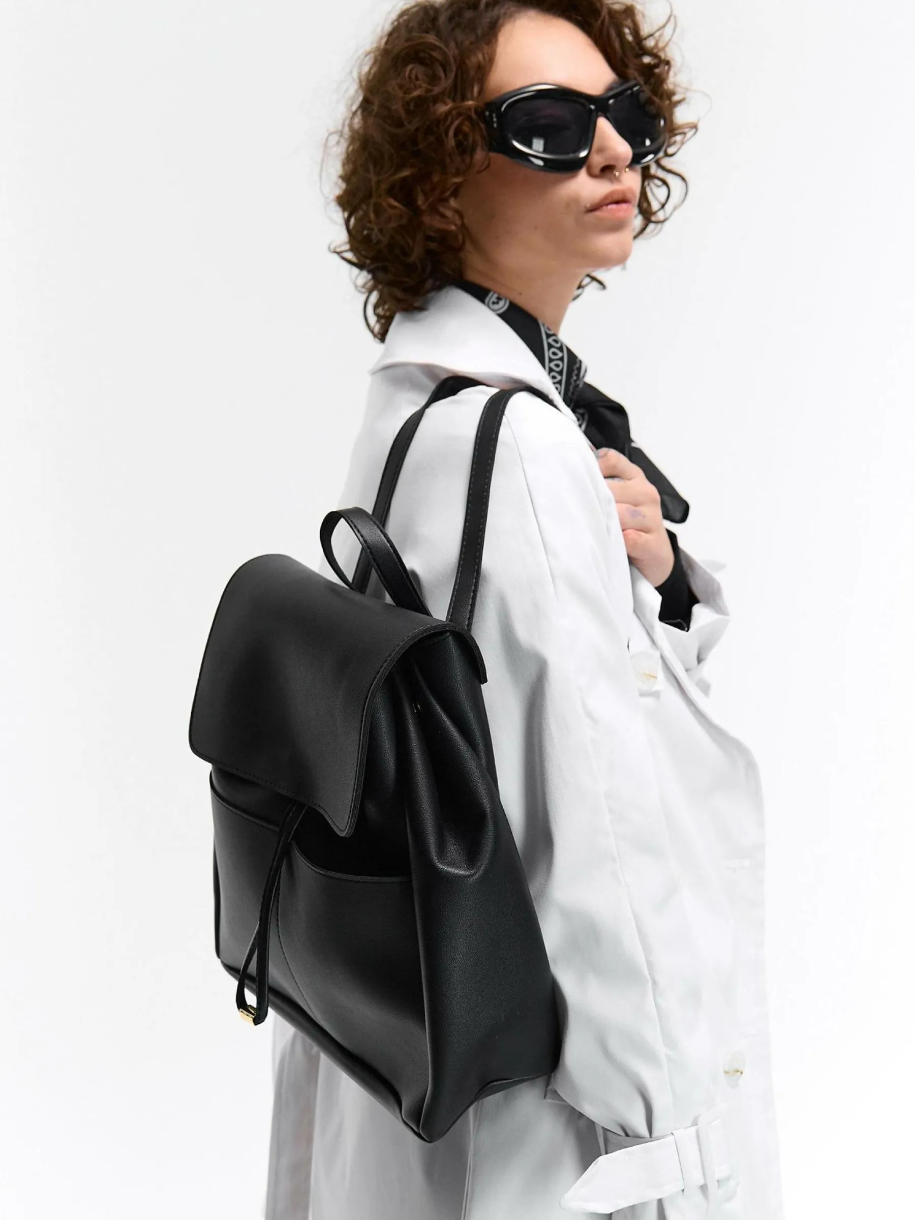 Kolor: czarnyKrój: podstawowyTyp: plecakPattern style: pojedynczy kolorDetal: na snapy, ze sznurowaniemMateriał: sztuc…