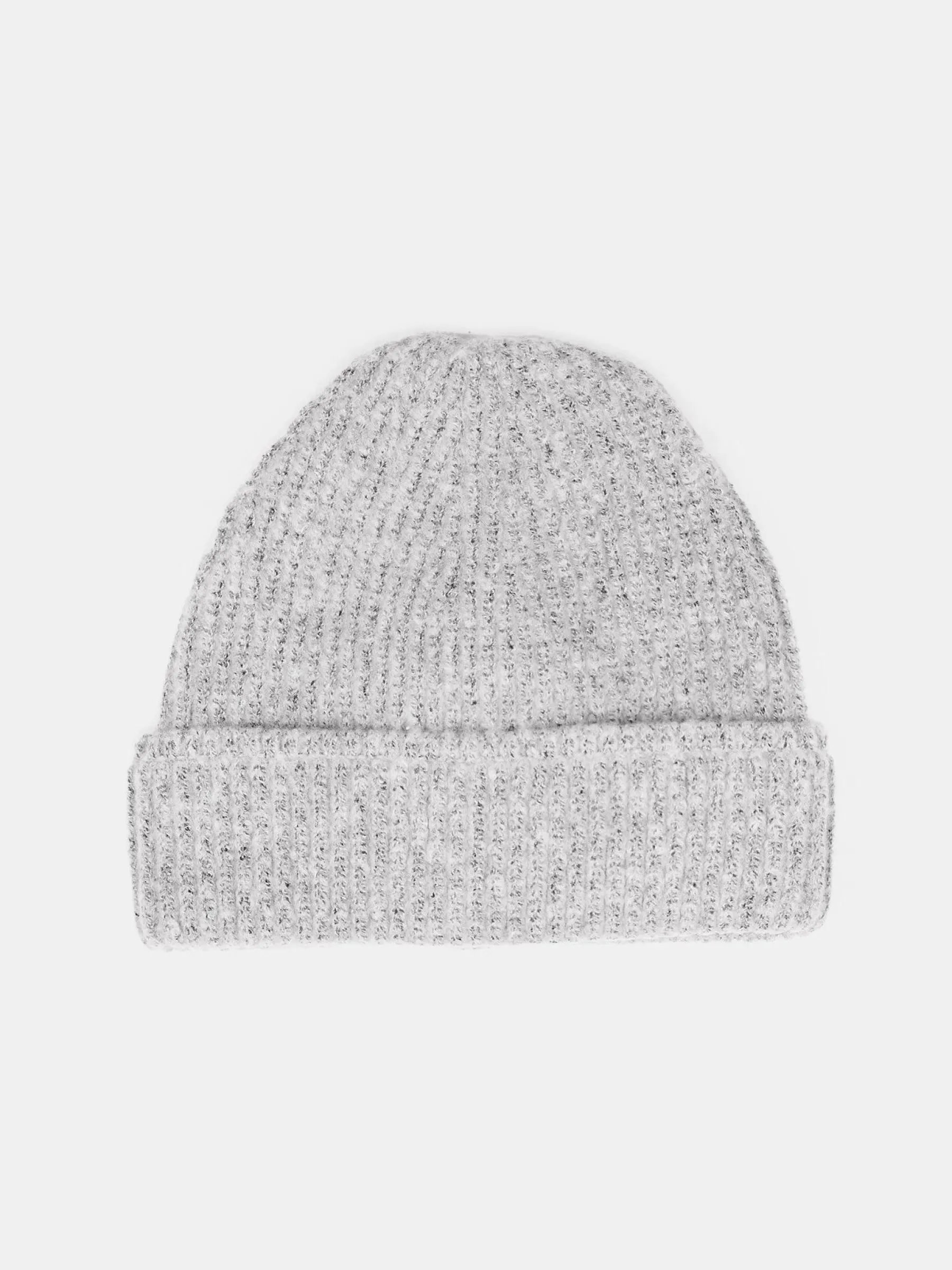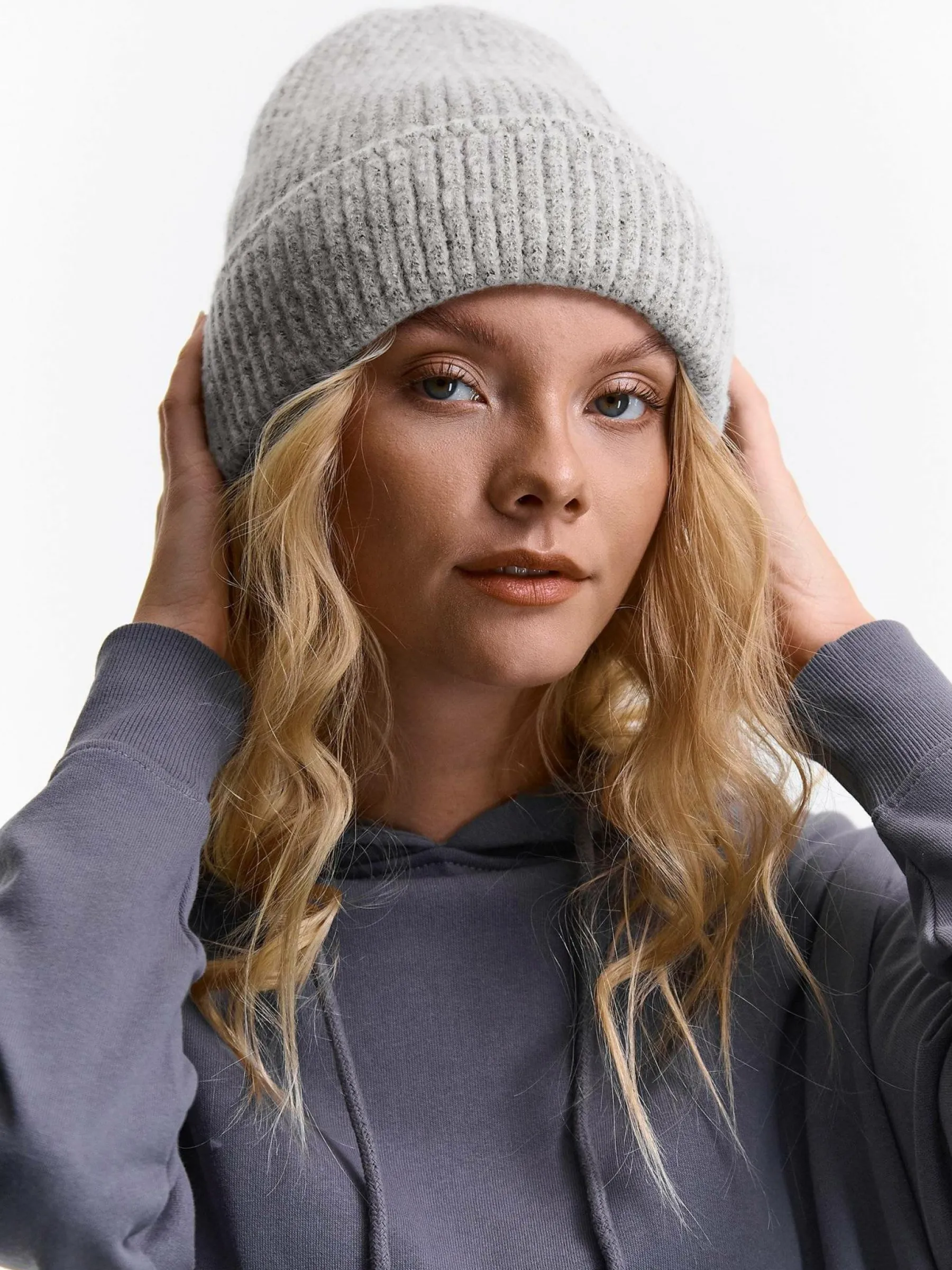 Kolor: szaryKrój: podstawowyTyp: czapkaPattern style: pojedynczy kolor, żebrowanyMateriał: trykotowyPłeć: kobietyOk…