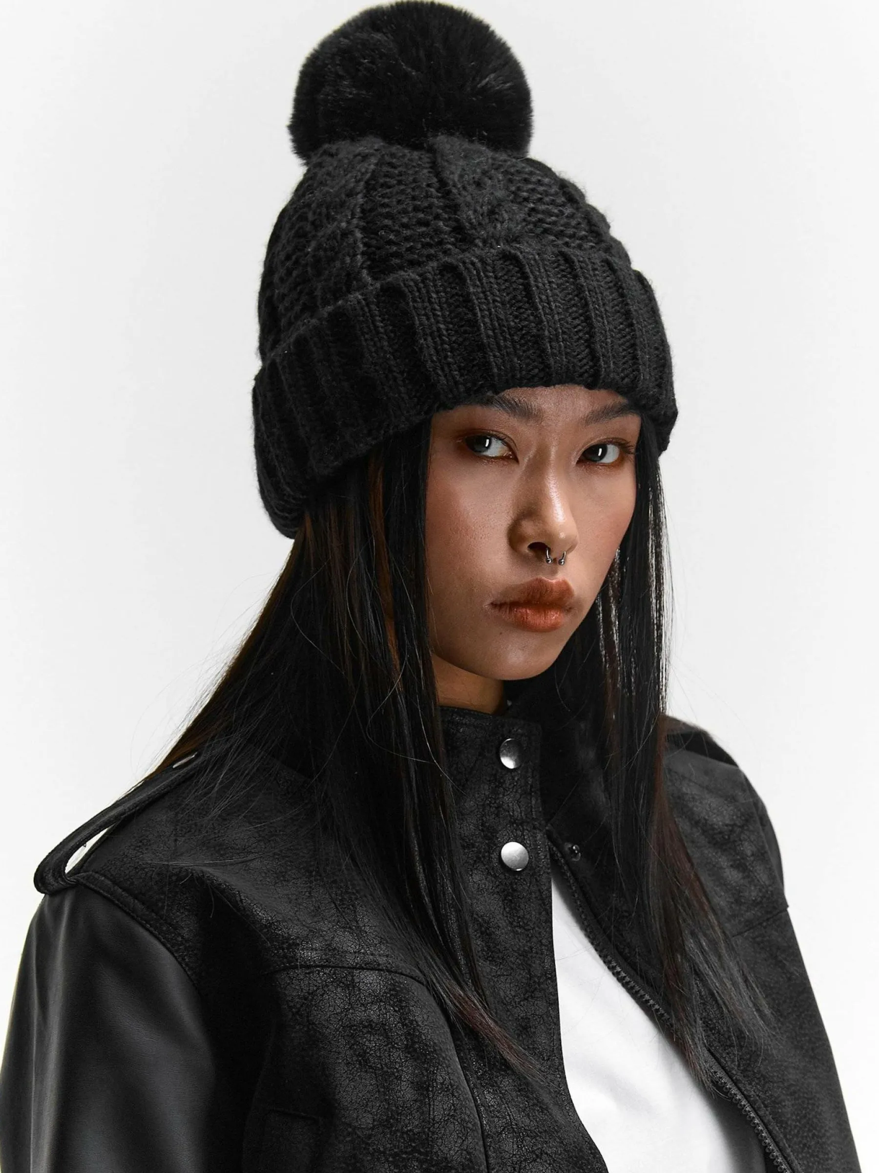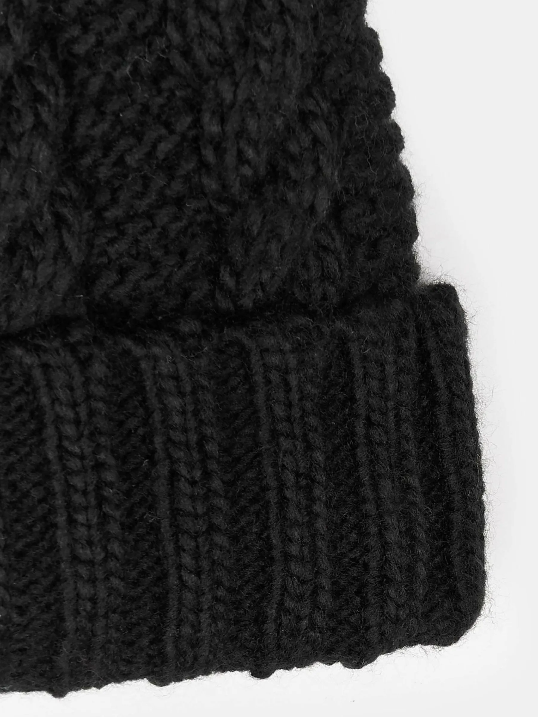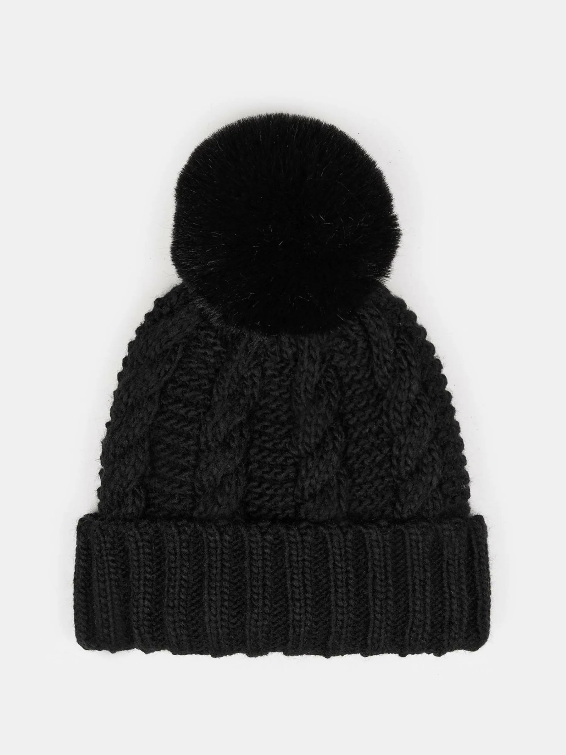 Kolor: czarnyKrój: podstawowyTyp: czapkaPattern style: pojedynczy kolor, strukturowaneDetal: z pomponemMateriał: tryko…