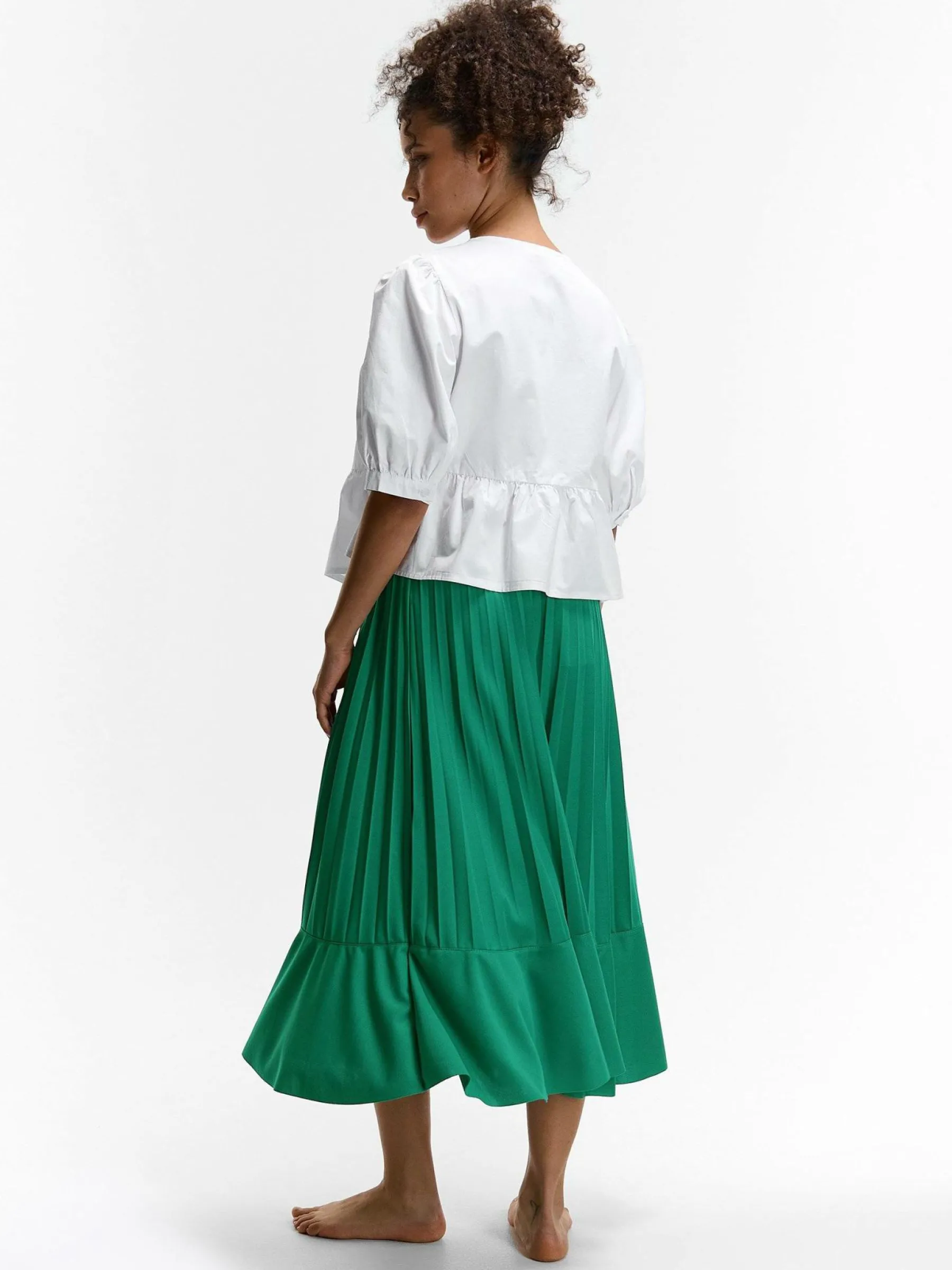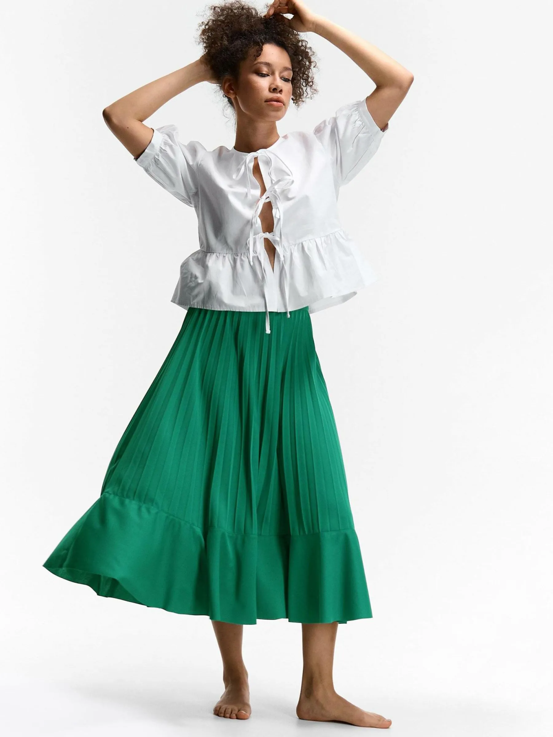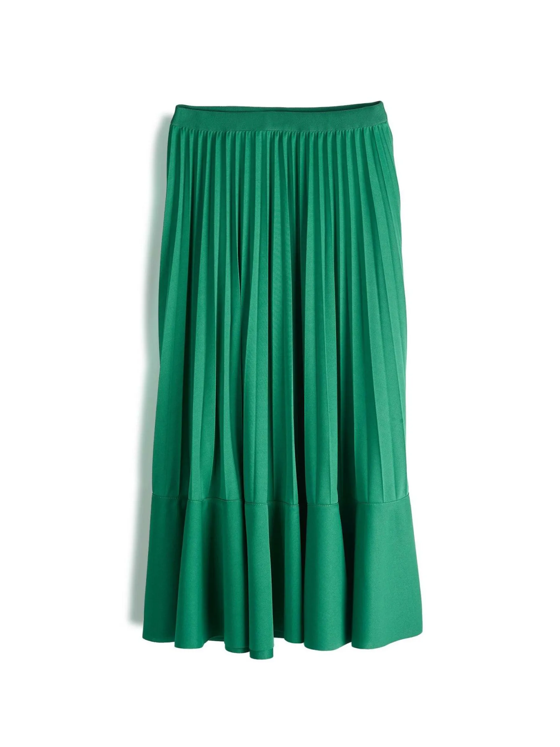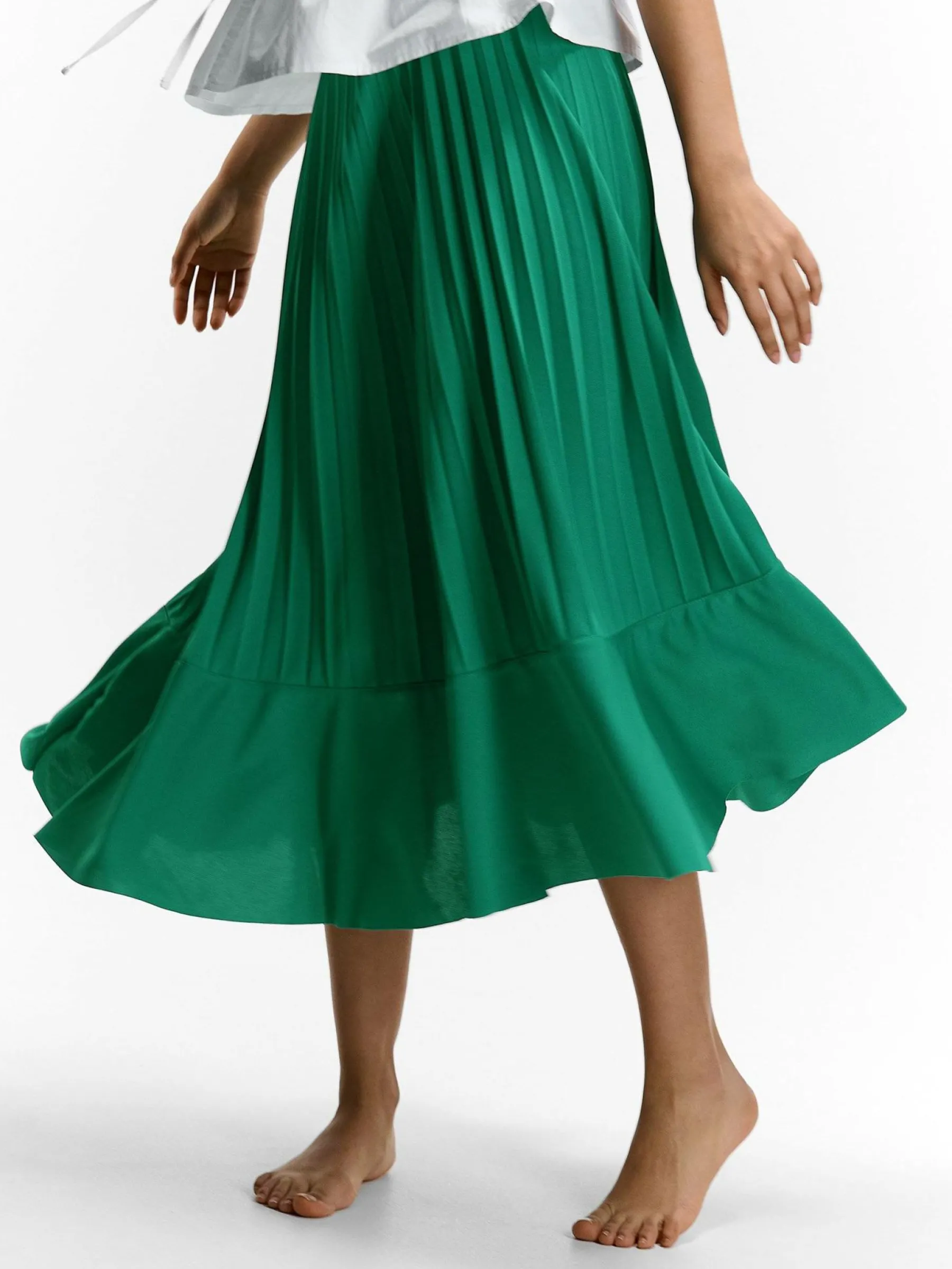 Kolor: zielonyKrój: plisowaneTyp: spódnicaDługość: midiPattern style: pojedynczy kolorDetal: z falbaną, z elastycz…