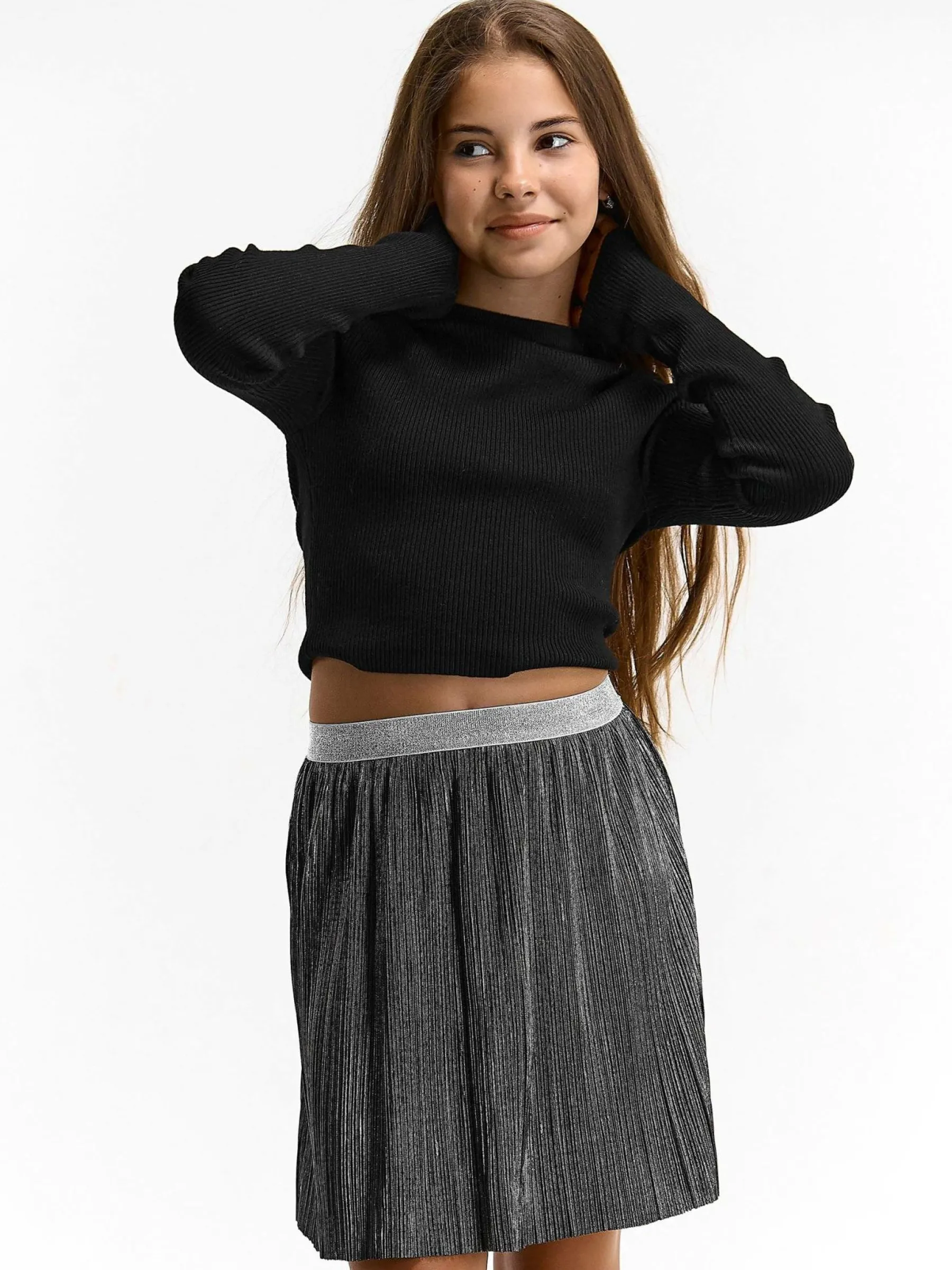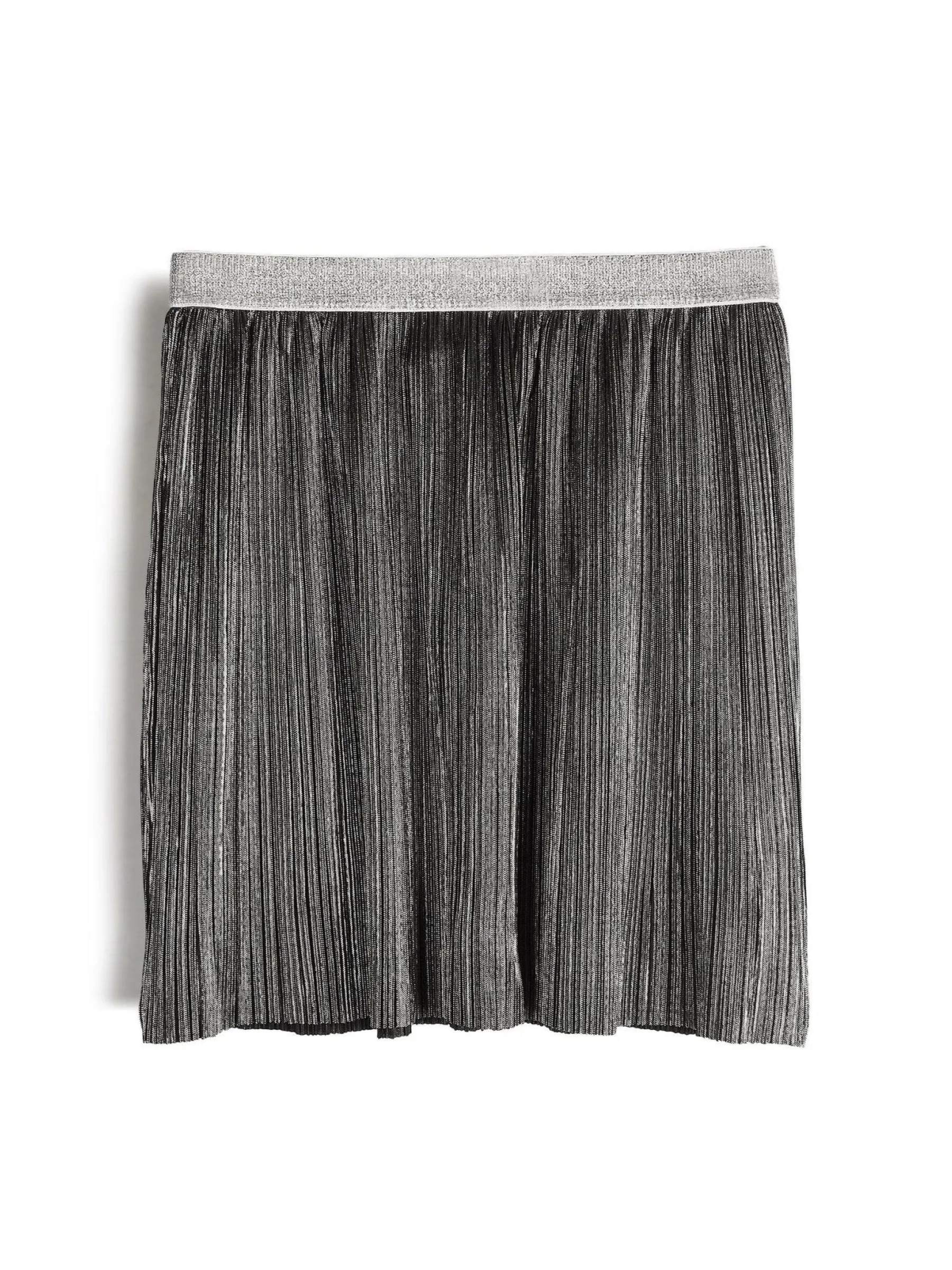 Kolor: szaryKrój: plisowaneTyp: spódnicaDługość: miniPattern style: pojedynczy kolorDetal: z elastyczną opaskąMat…