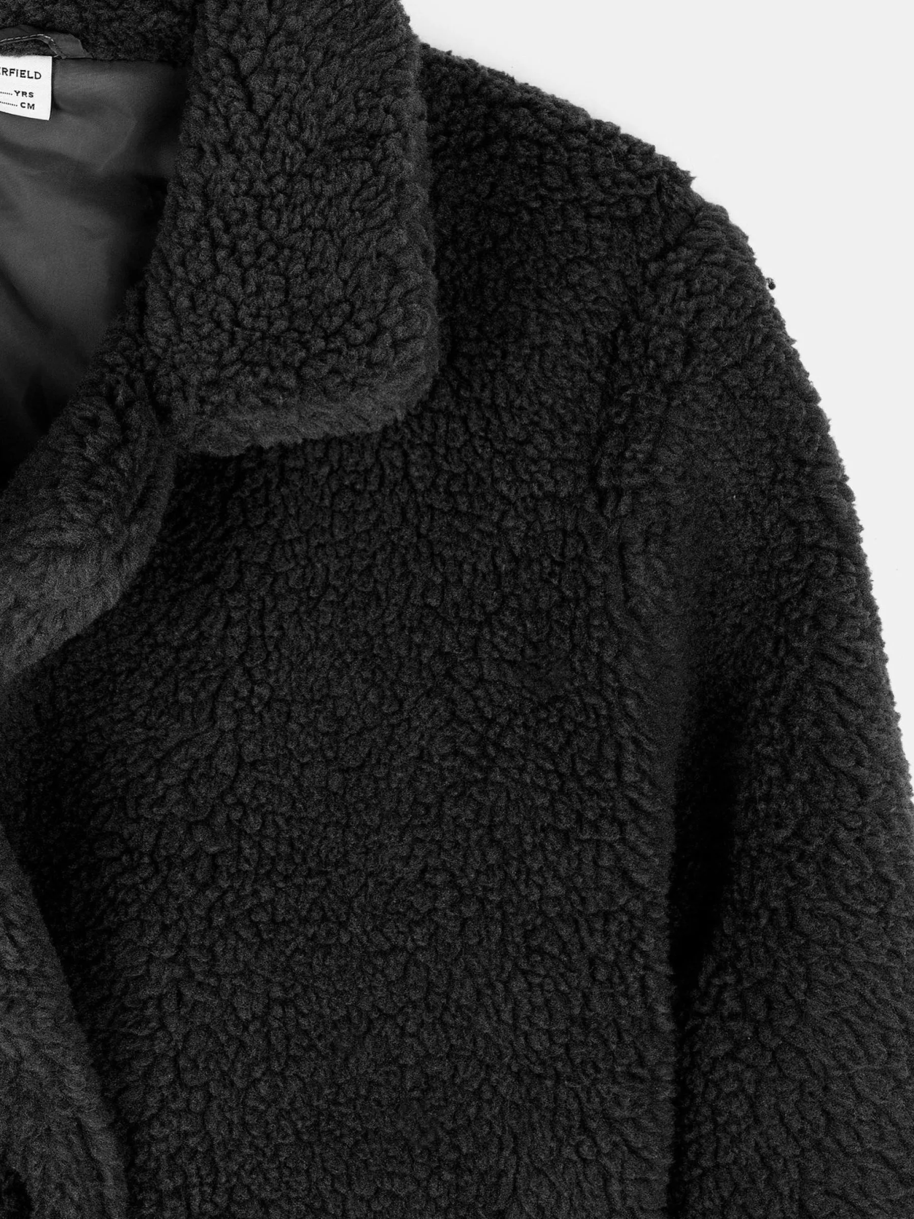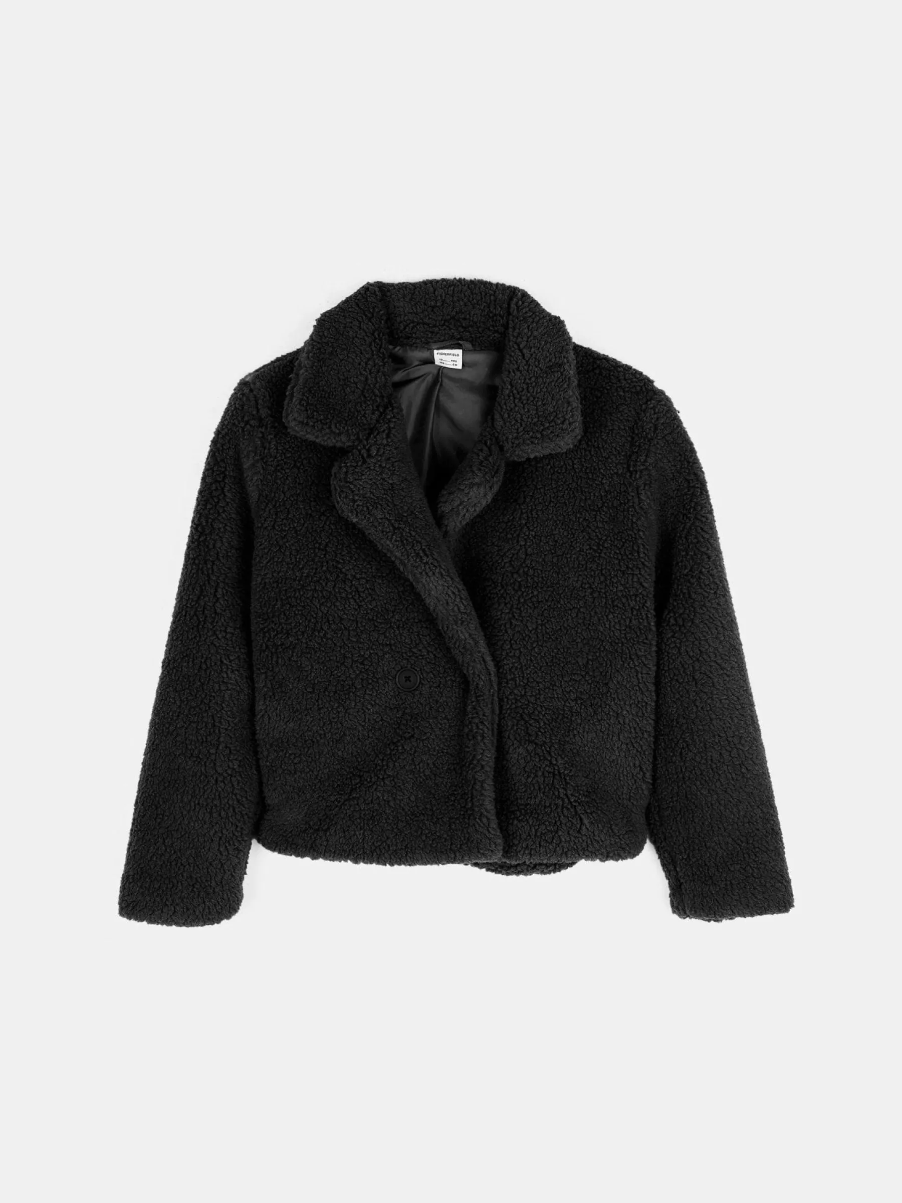 Kolor: czarnyKrój: podstawowyTyp: płaszczRekaw: długi rękawDługość: krótkiPattern style: pojedynczy kolorDetal: …