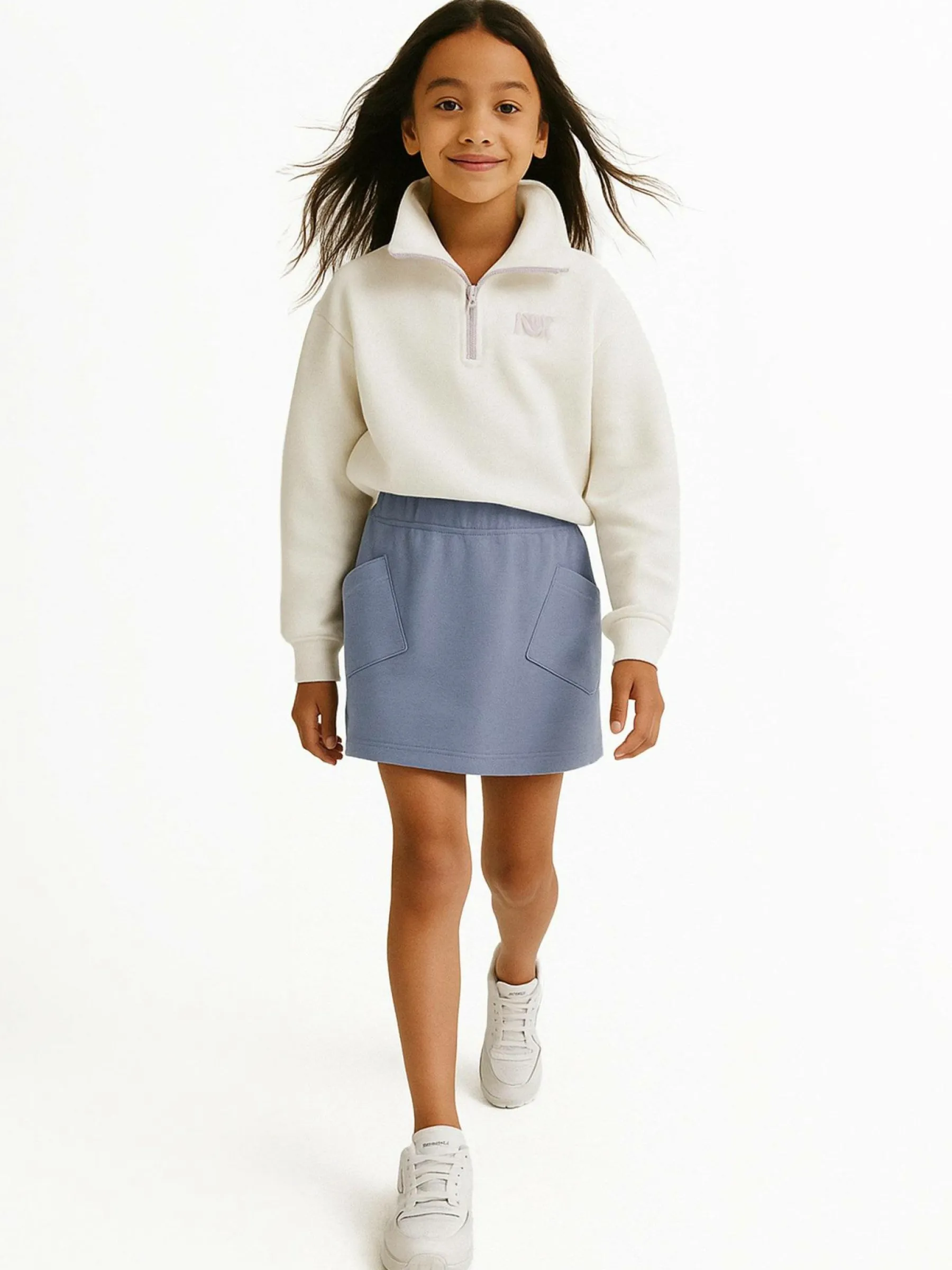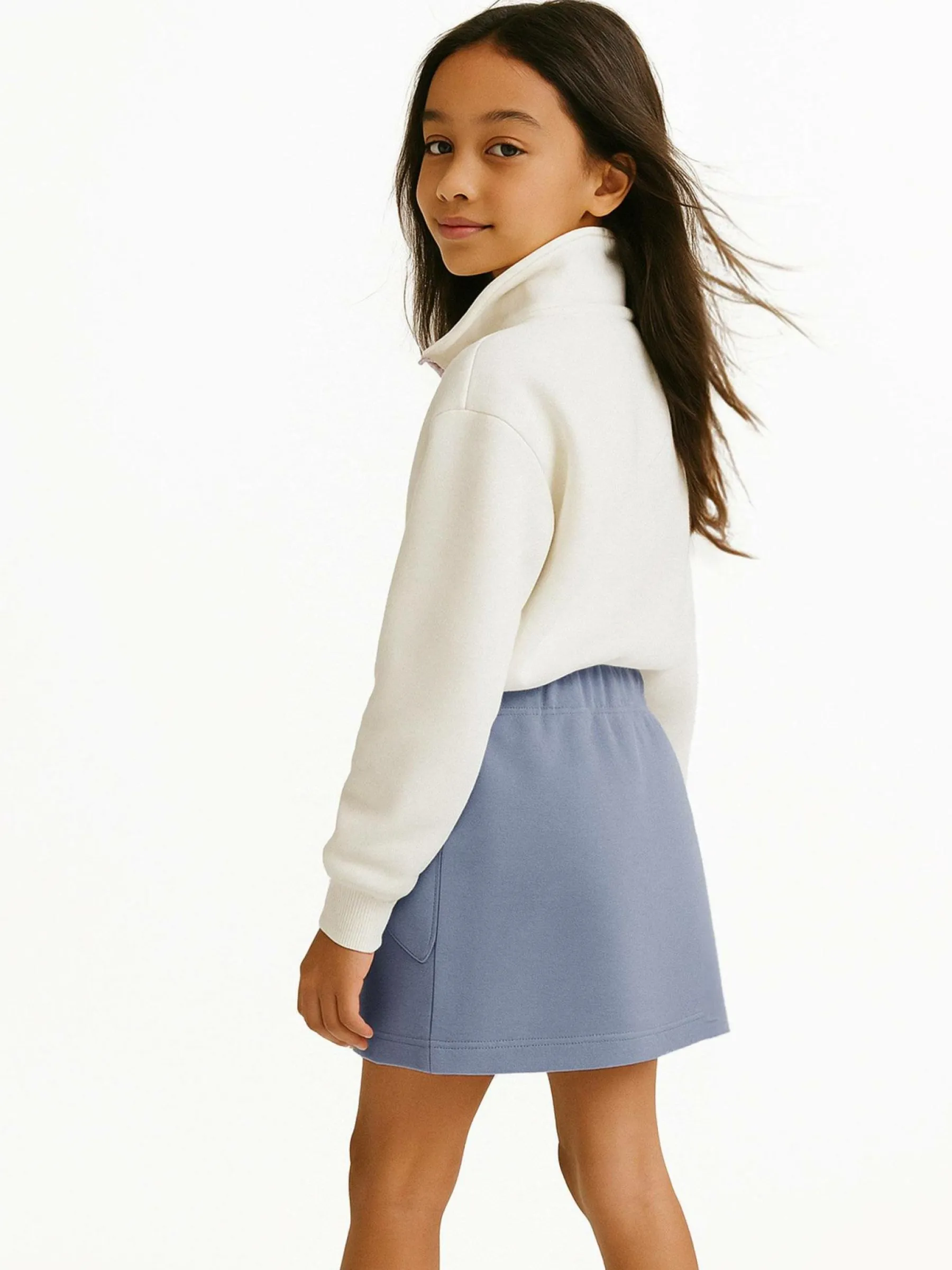 Kolor: niebieskiKrój: regularTyp: spódnicaDługość: miniPattern style: pojedynczy kolorDetal: z kieszeniami, z falba…