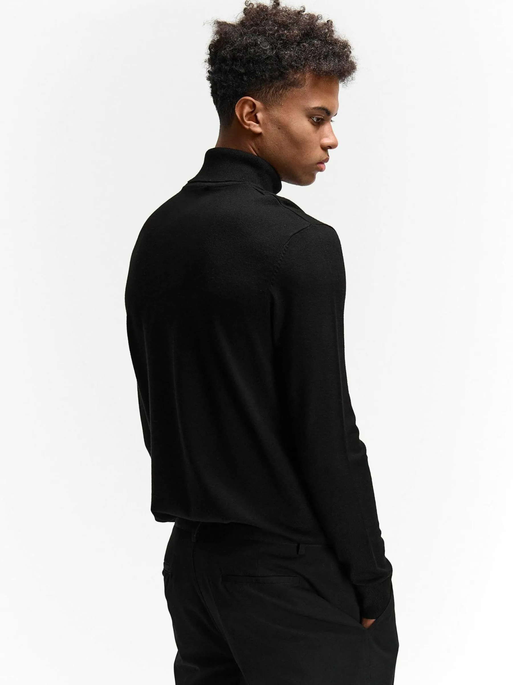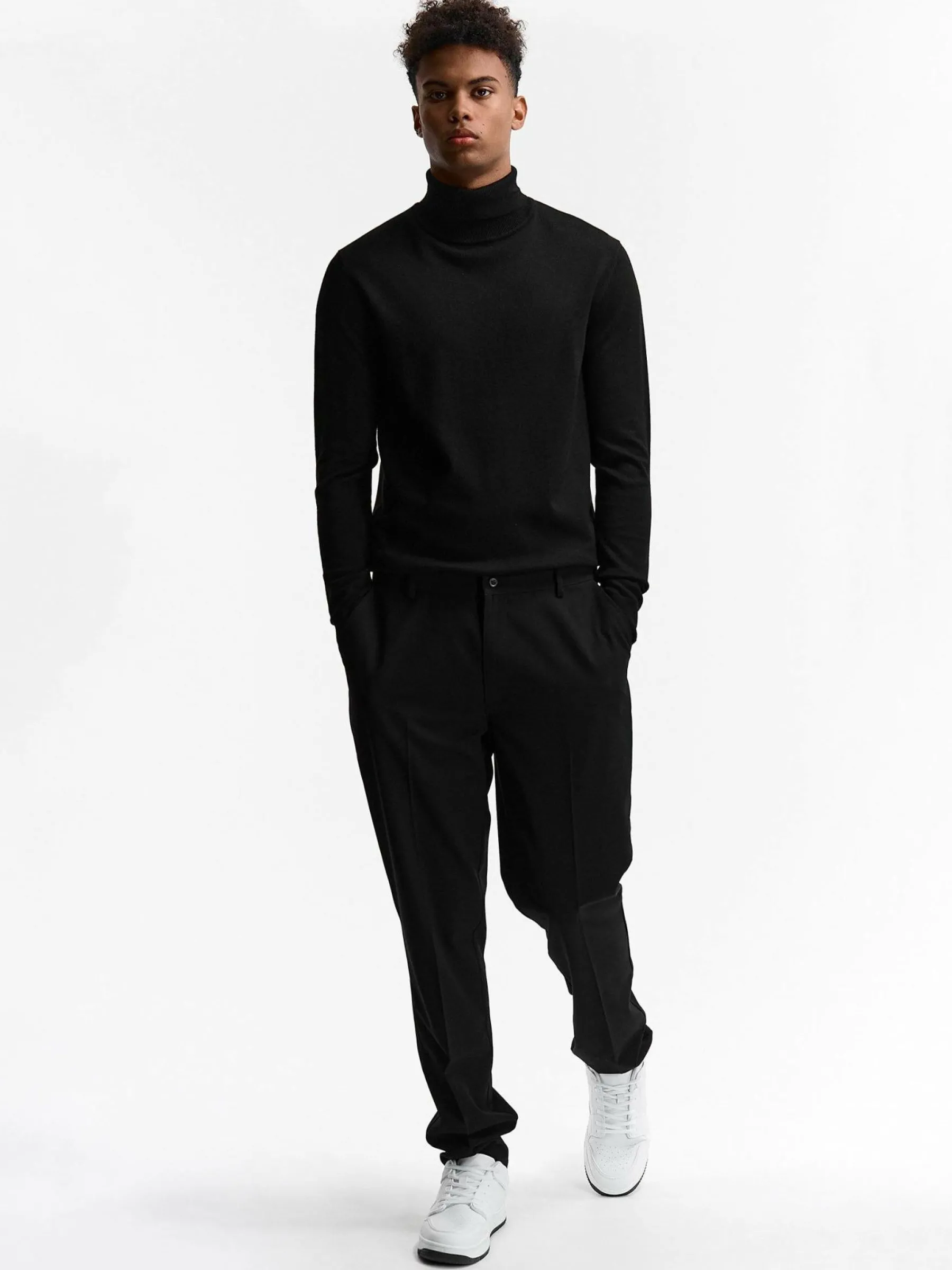 Kolor: czarnyKrój: regularTyp: golfRekaw: długi rękawPattern style: pojedynczy kolorDetal: nad głowąMateriał: tryk…
