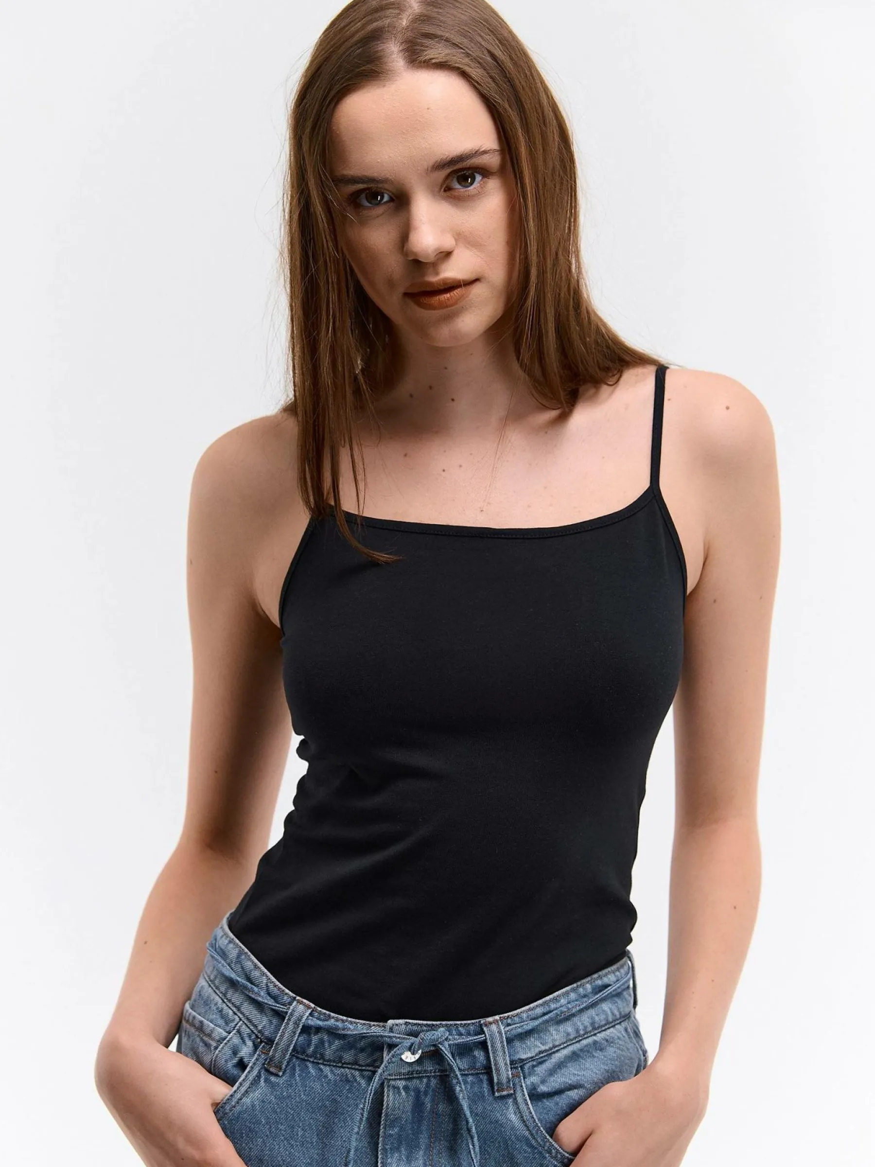 Kolor: czarnyKrój: regularTyp: podkoszulekRekaw: bez rękawówDługość: krótkiPattern style: pojedynczy kolorDetal: …