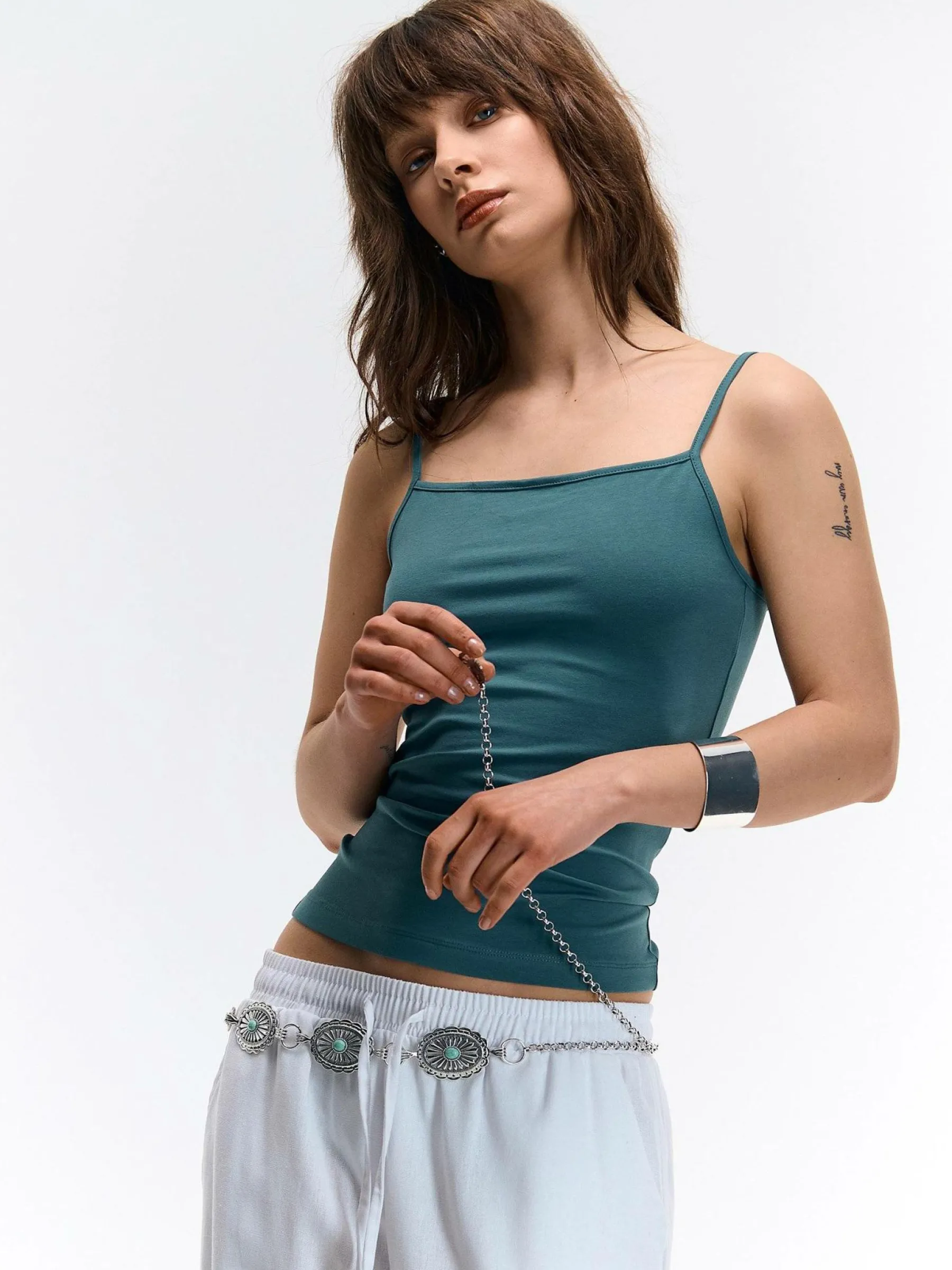 Kolor: zielonyKrój: regularTyp: podkoszulekRekaw: bez rękawówDługość: krótkiPattern style: pojedynczy kolorDetal:…