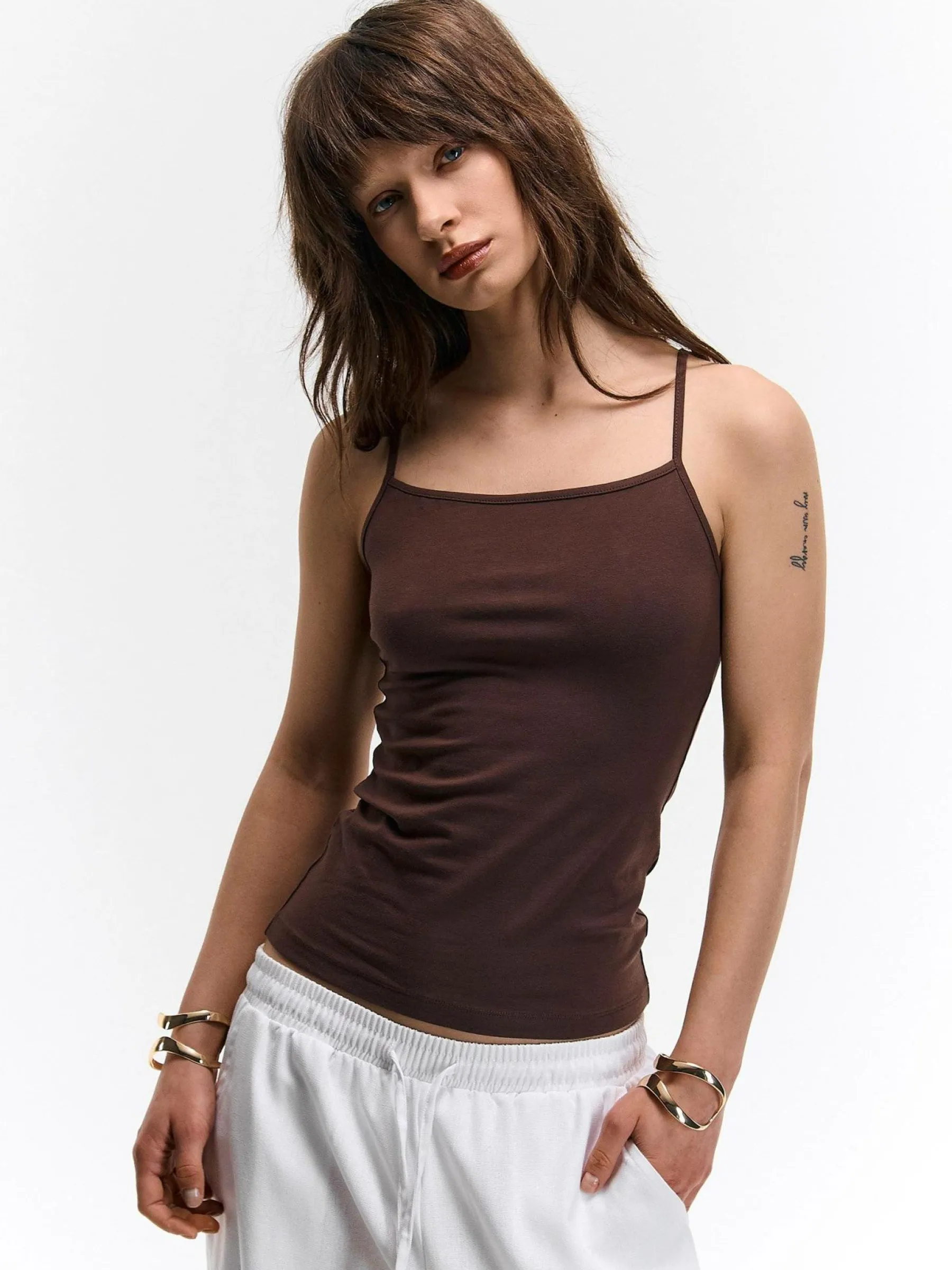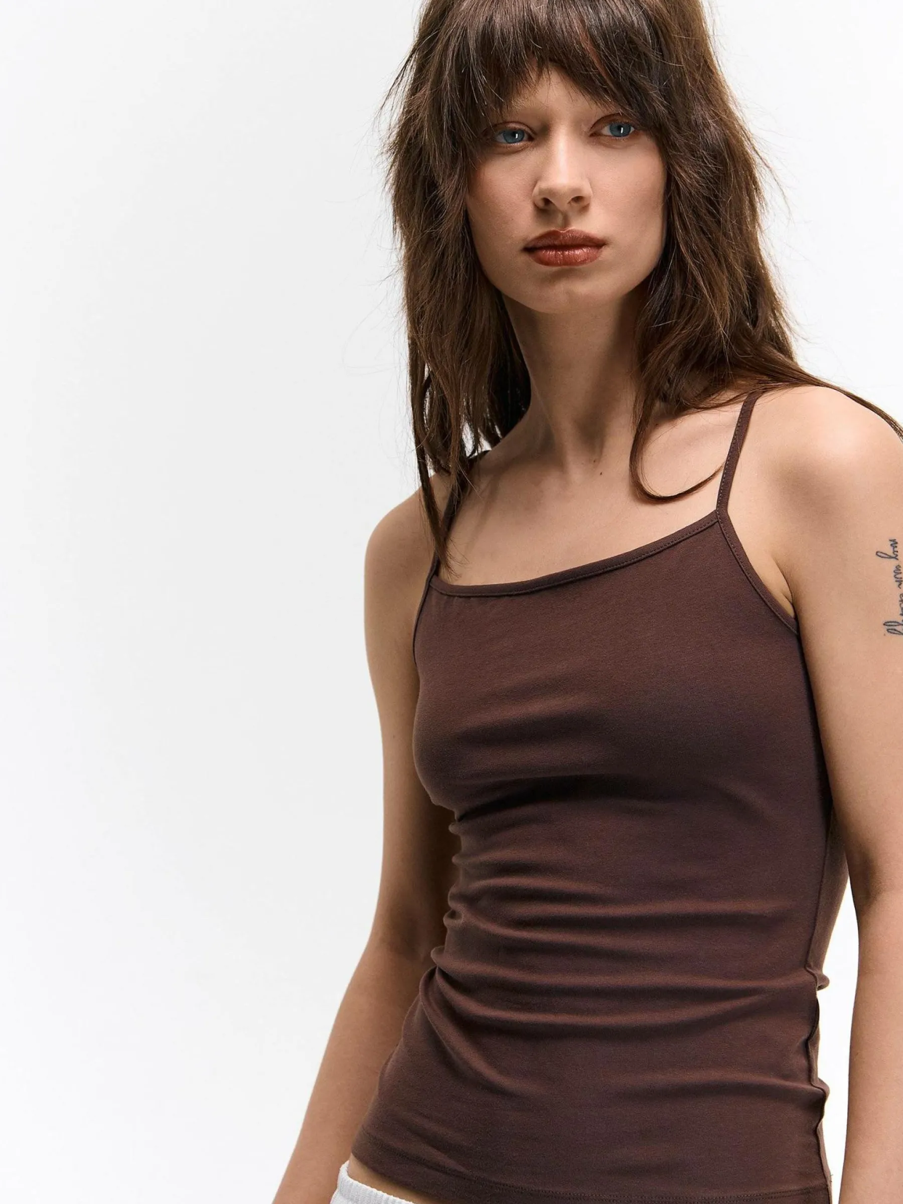 Kolor: brązowyKrój: regularTyp: podkoszulekRekaw: bez rękawówDługość: krótkiPattern style: pojedynczy kolorDetal…