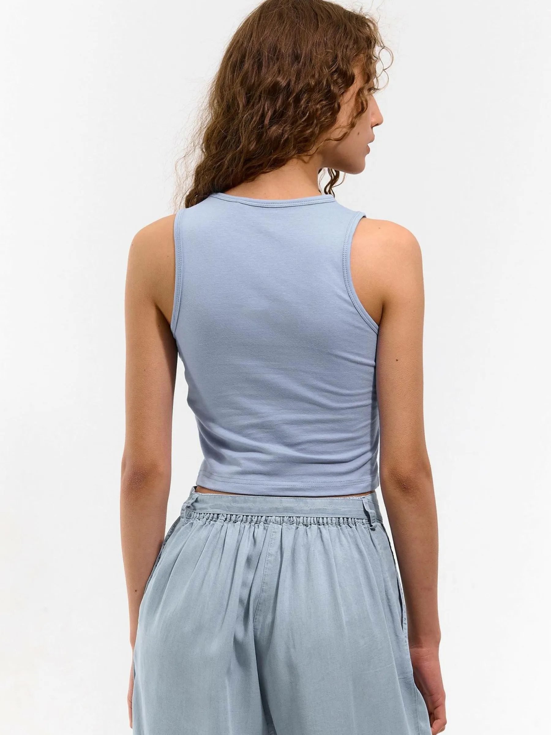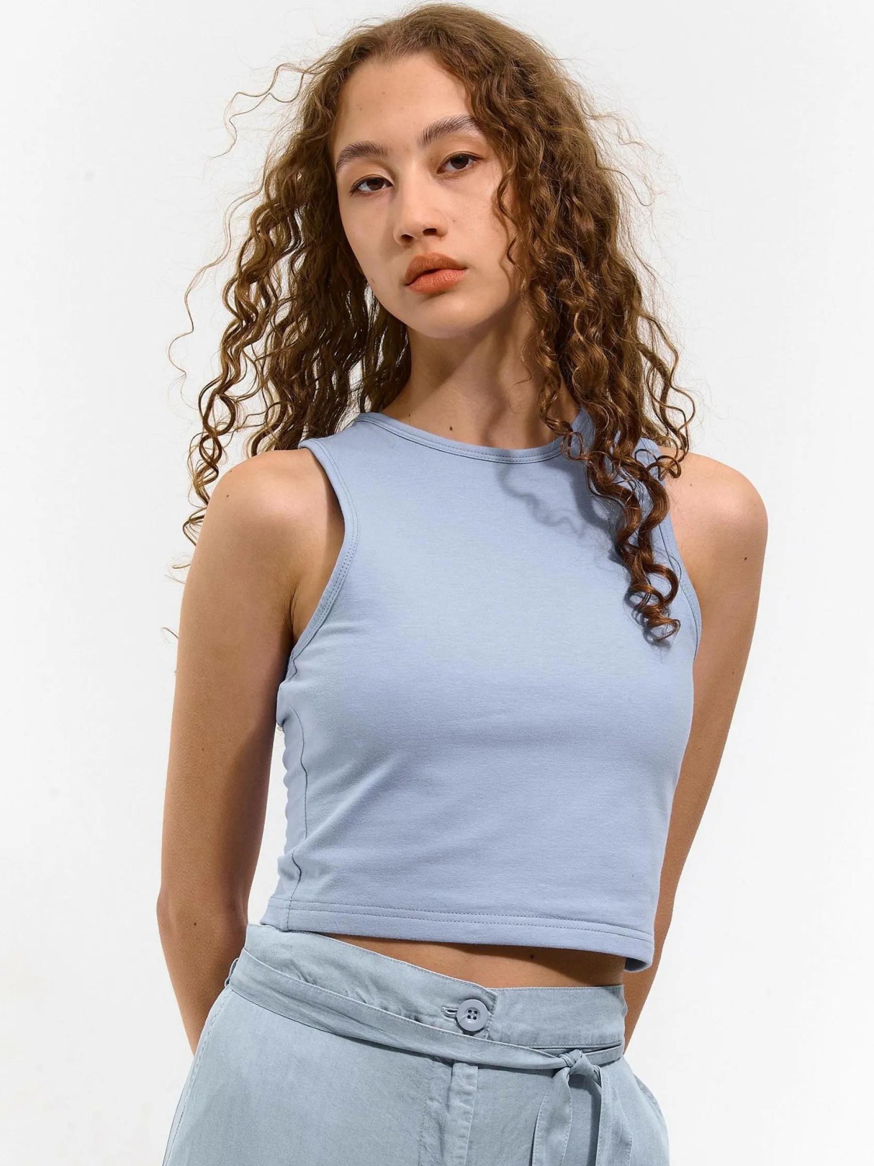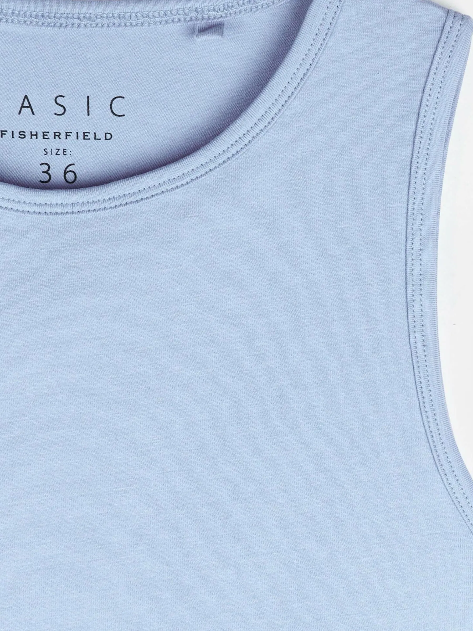 Kolor: niebieskiKrój: regularTyp: podkoszulekRekaw: bez rękawówDługość: krótkiPattern style: pojedynczy kolorDeta…