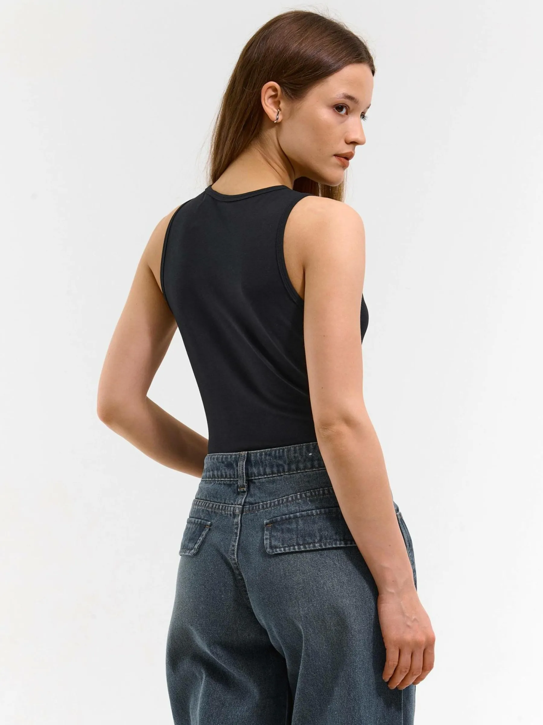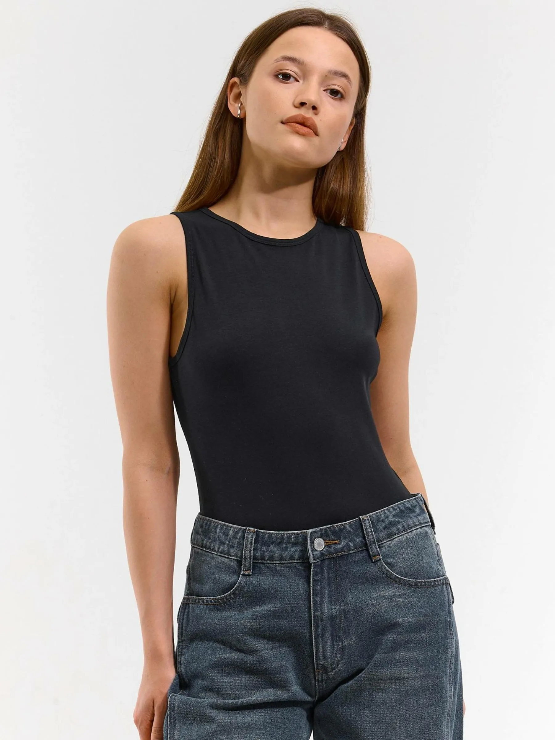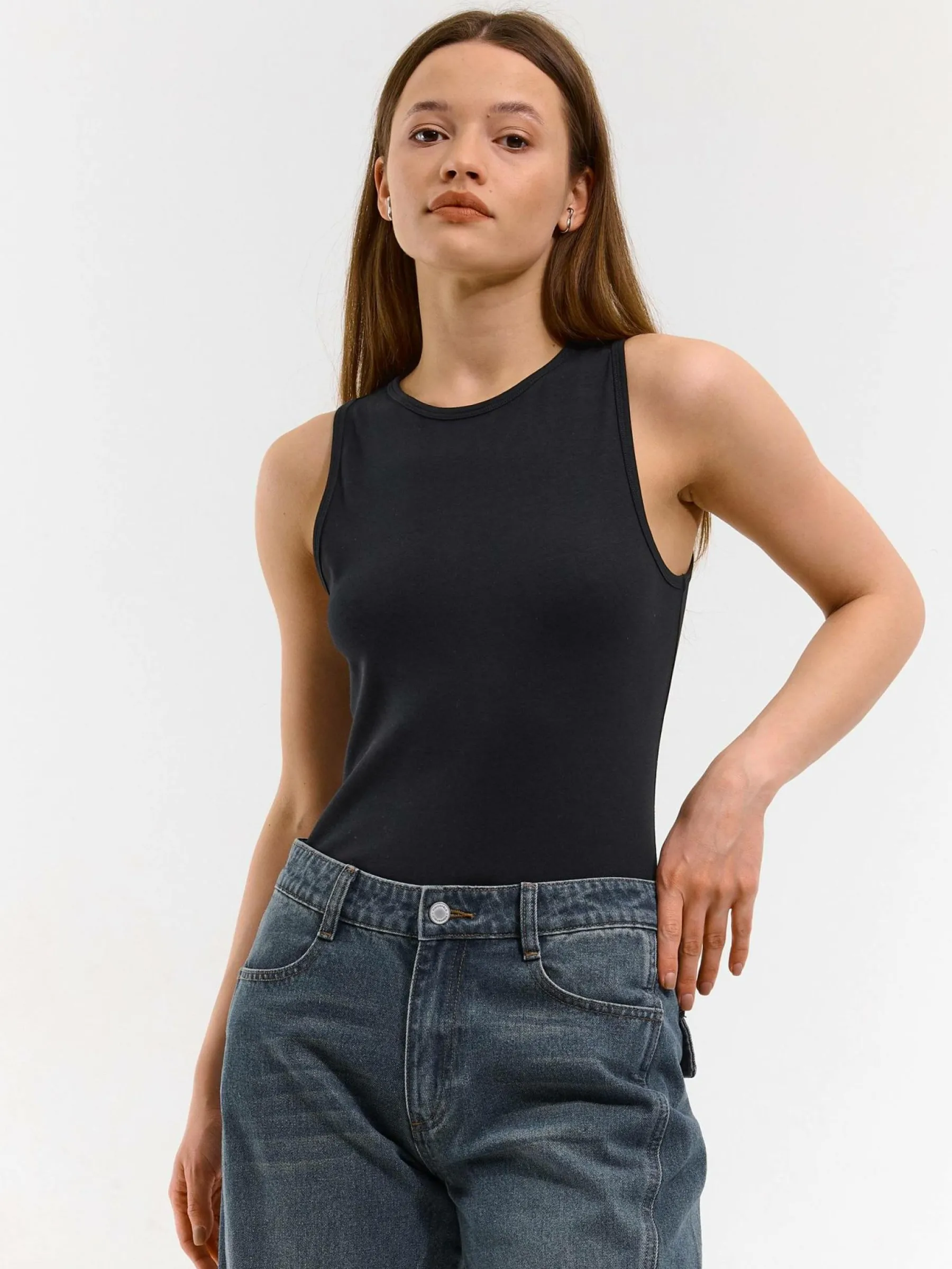Kolor: czarnyKrój: regularTyp: podkoszulekRekaw: bez rękawówDługość: krótkiPattern style: pojedynczy kolorDetal: …