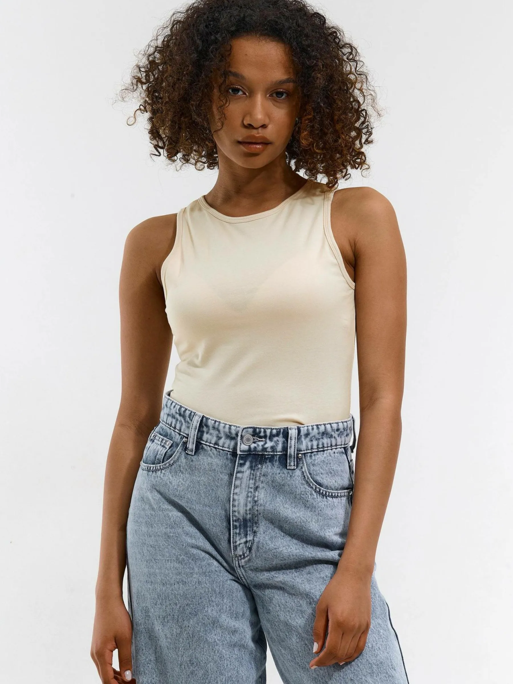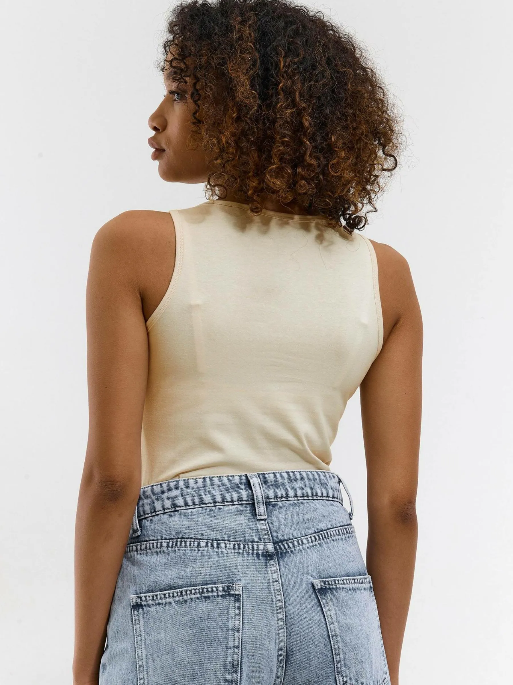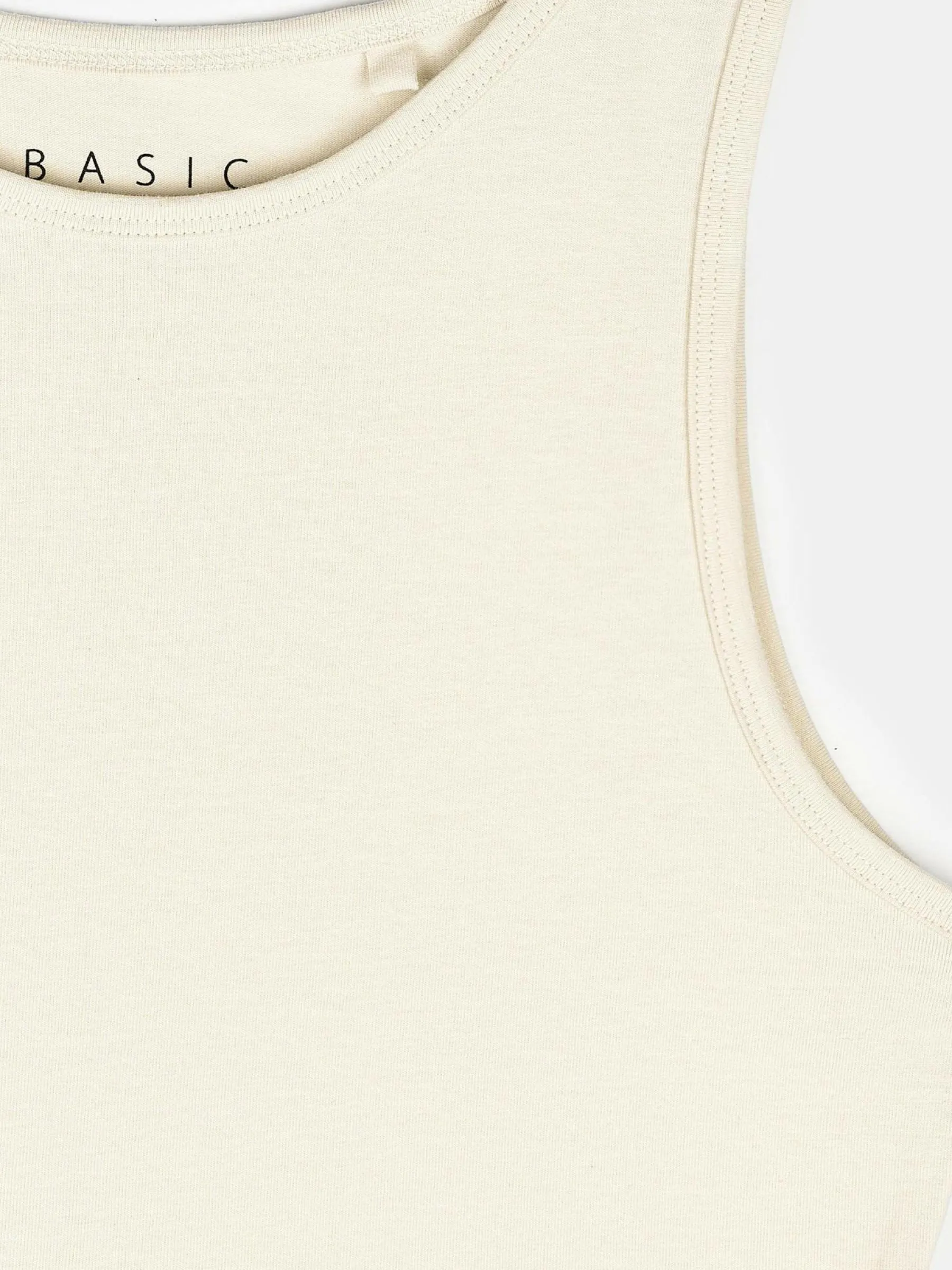 Kolor: beżowyKrój: regularTyp: podkoszulekRekaw: bez rękawówDługość: krótkiPattern style: pojedynczy kolorDetal:…