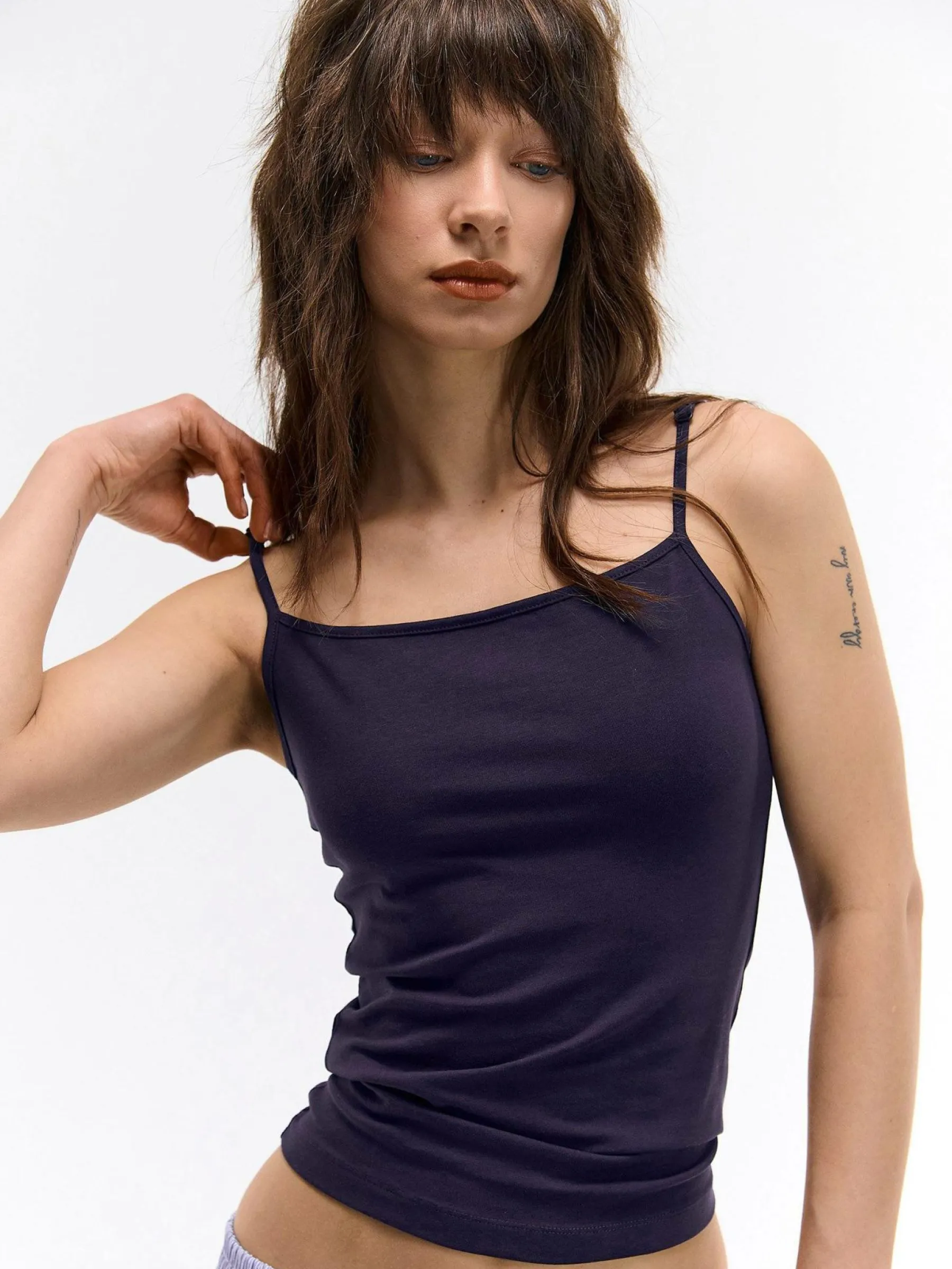 Kolor: granatowyKrój: regularTyp: podkoszulekRekaw: bez rękawówDługość: krótkiPattern style: pojedynczy kolorDeta…