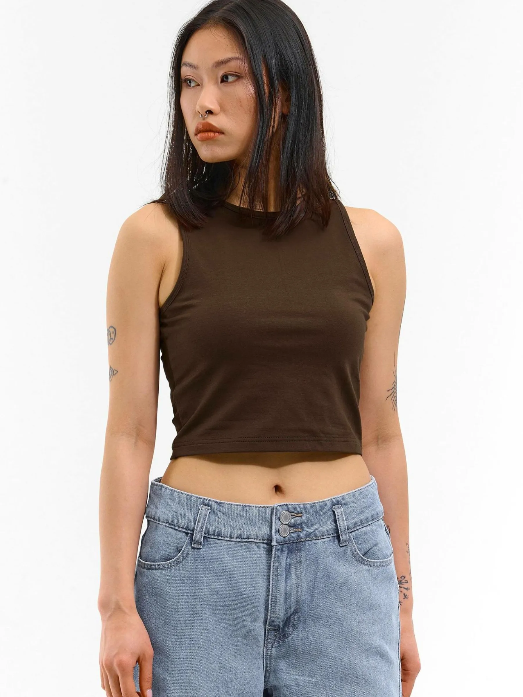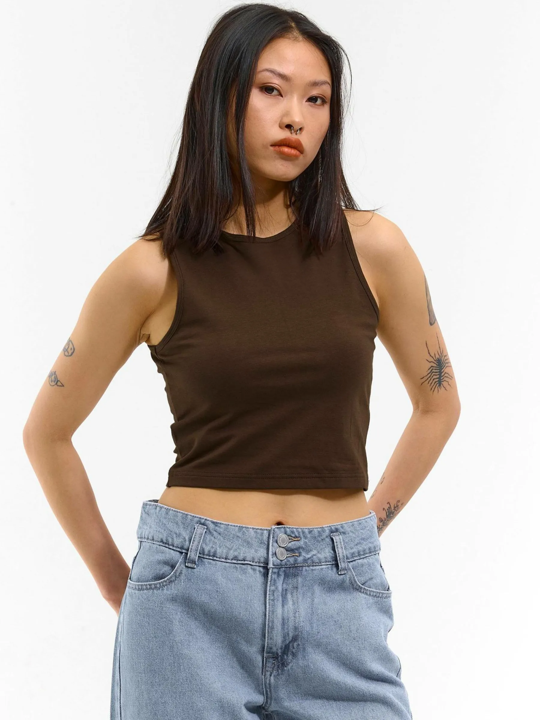 Kolor: brązowyKrój: regularTyp: podkoszulekRekaw: bez rękawówDługość: krótkiPattern style: pojedynczy kolorDetal…