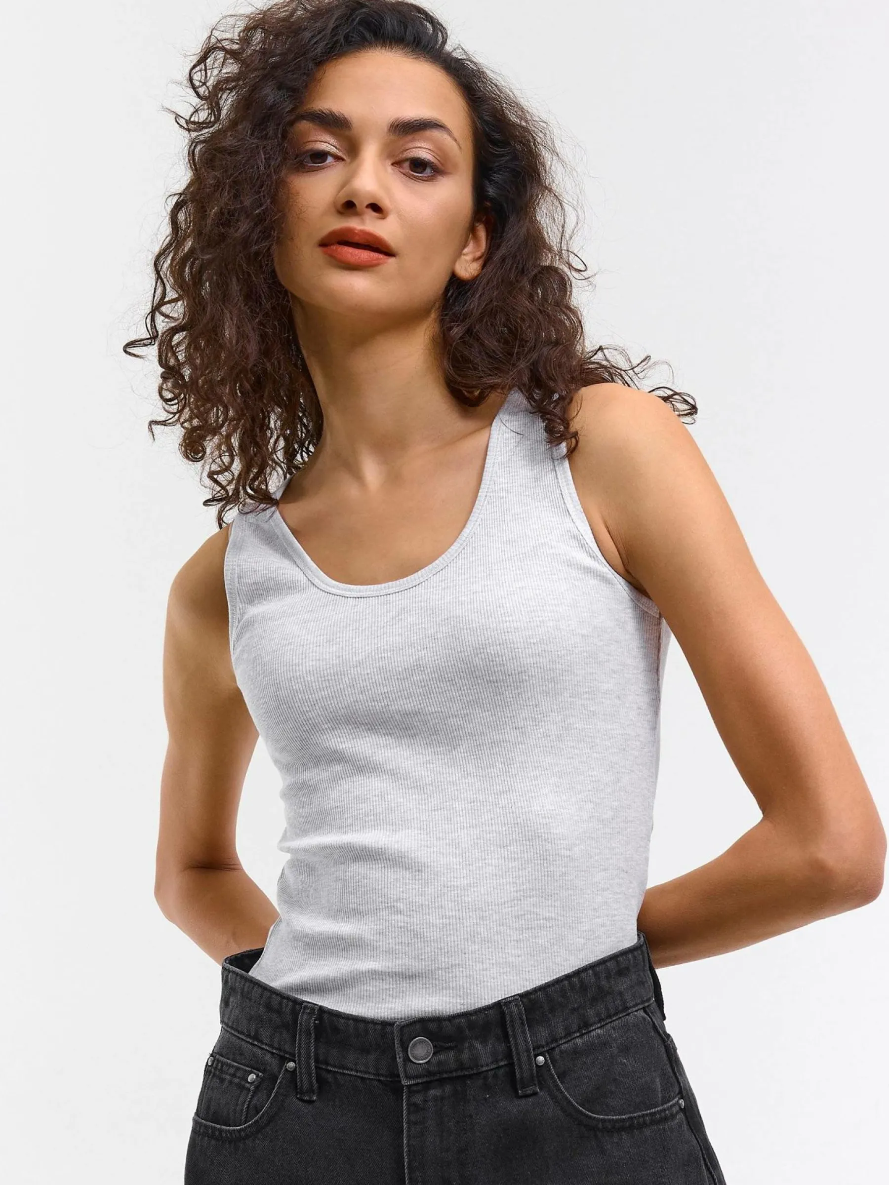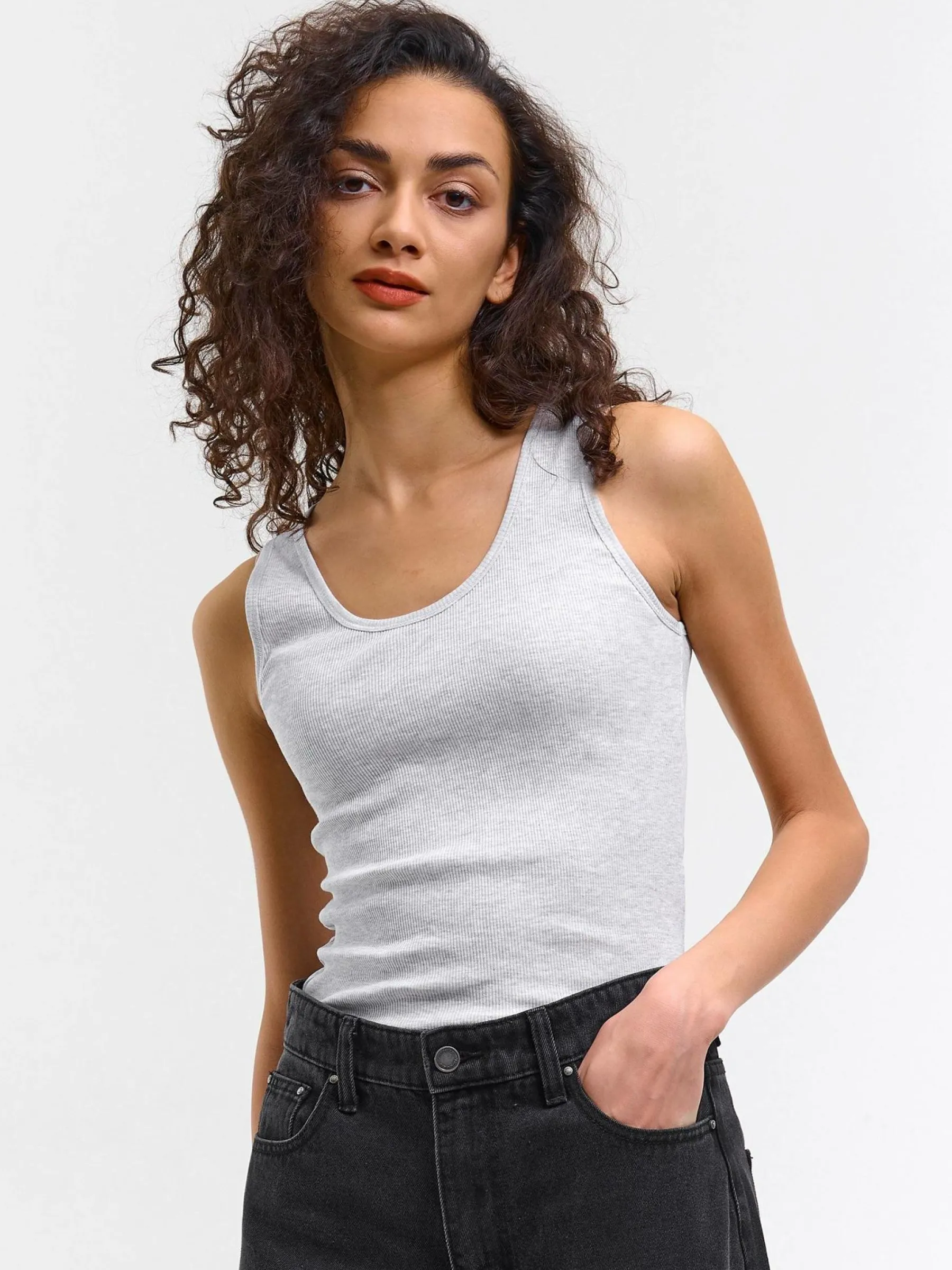 Kolor: szaryKrój: podstawowyTyp: podkoszulekRekaw: bez rękawówDługość: krótkiPattern style: pojedynczy kolor, że…