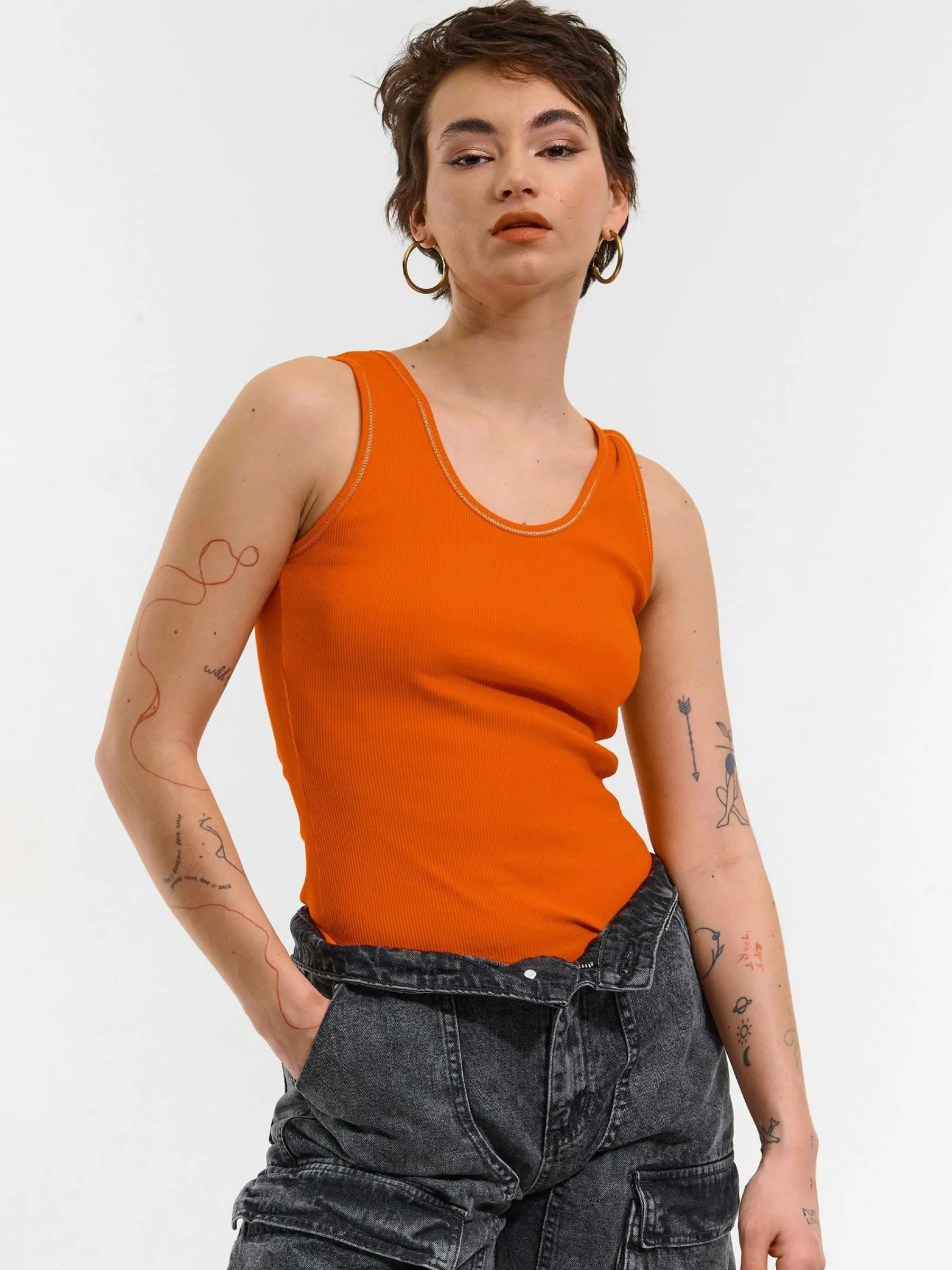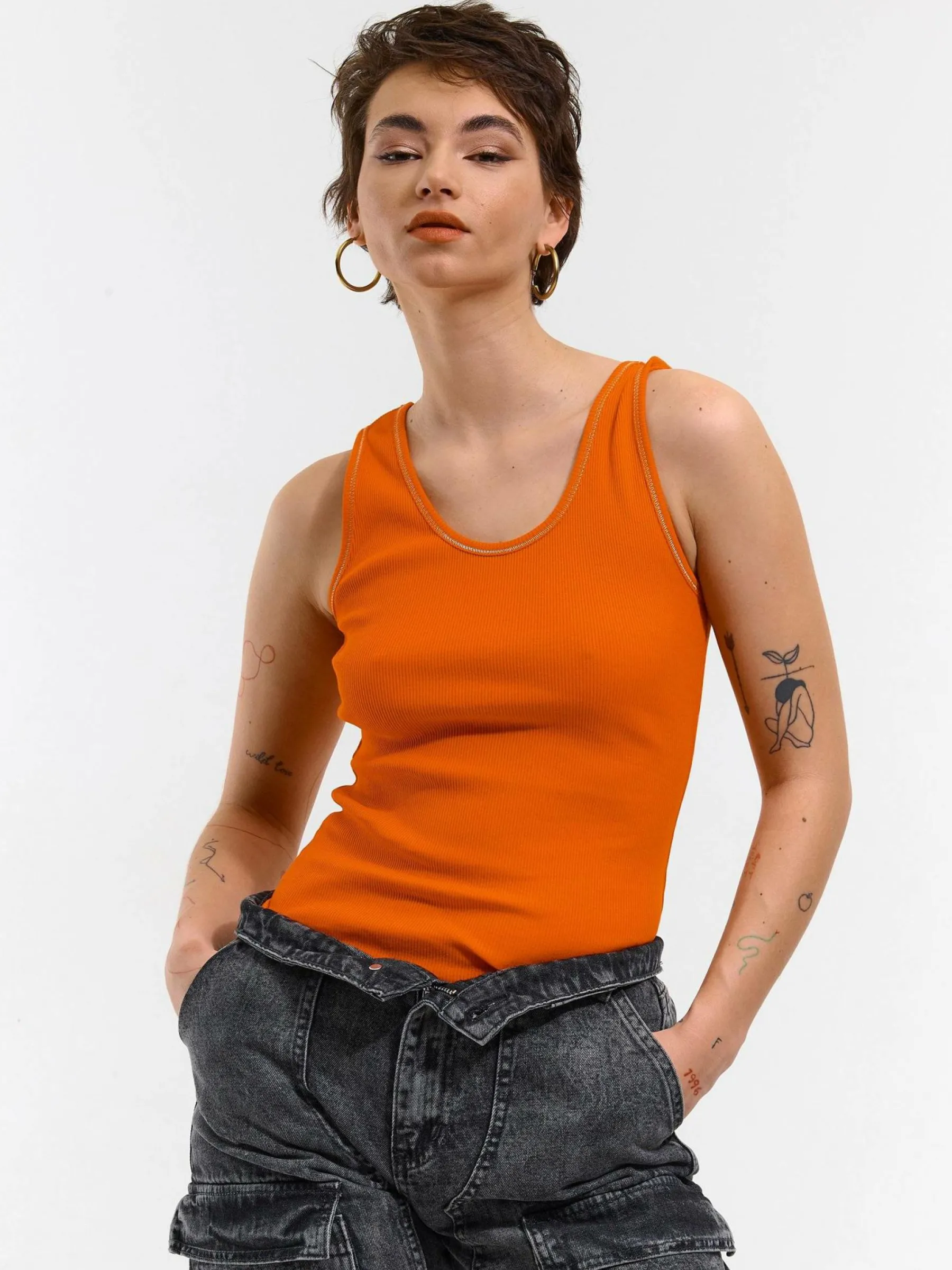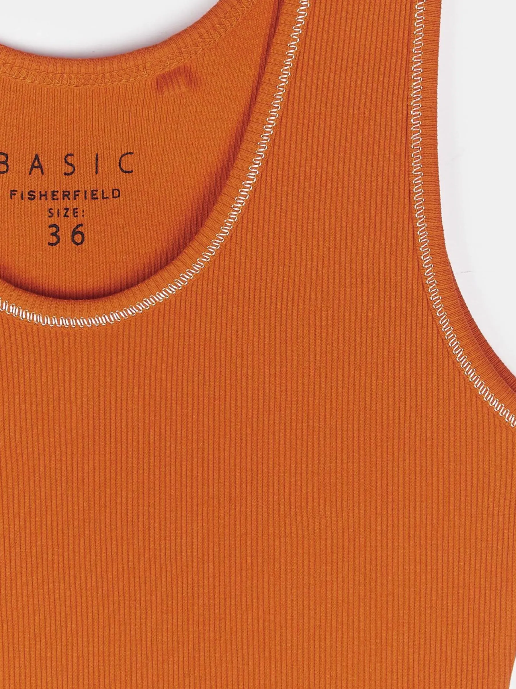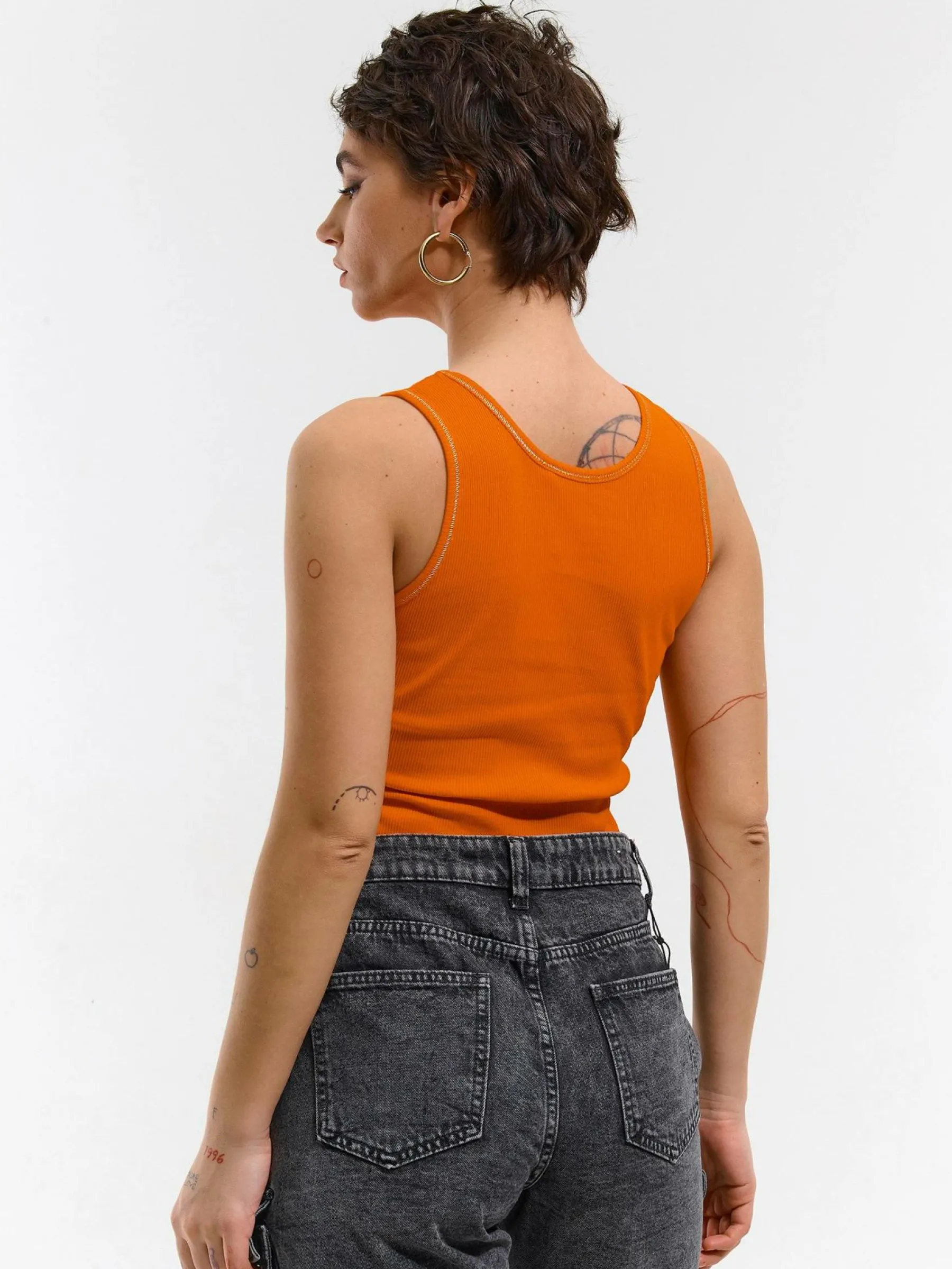 Kolor: pomarańczowyKrój: podstawowyTyp: podkoszulekRekaw: bez rękawówDługość: krótkiPattern style: pojedynczy ko…