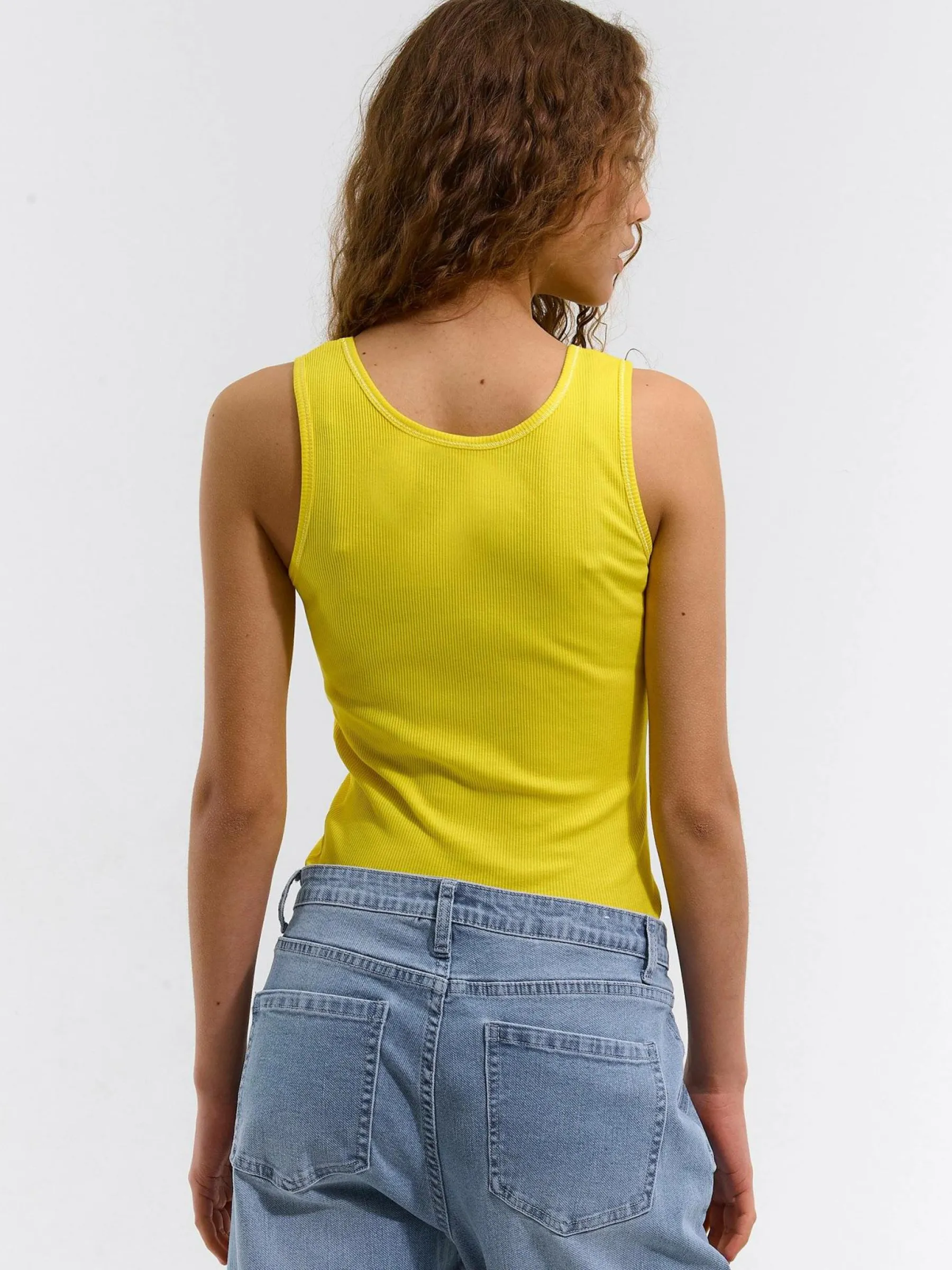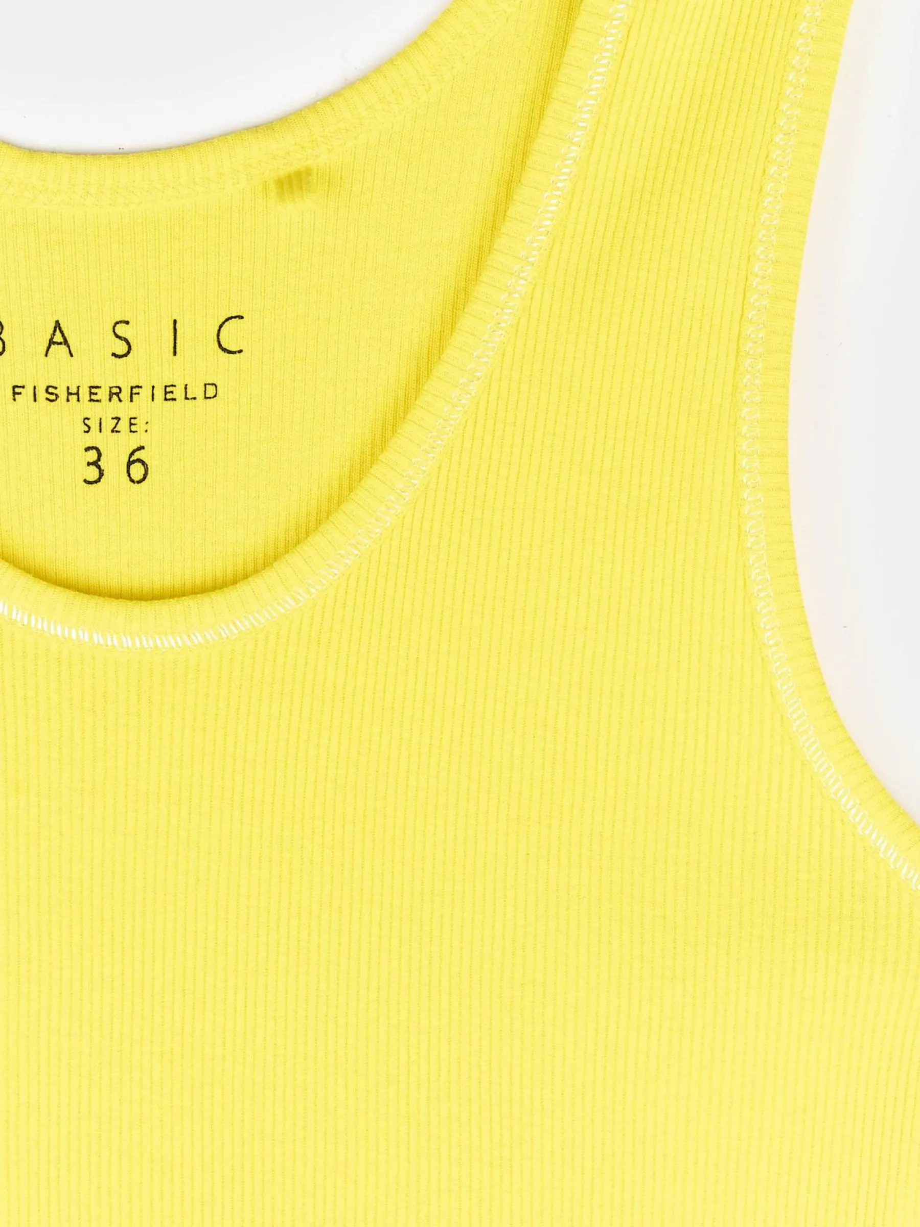 Kolor: żółtyKrój: podstawowyTyp: podkoszulekRekaw: bez rękawówDługość: krótkiPattern style: pojedynczy kolor, …