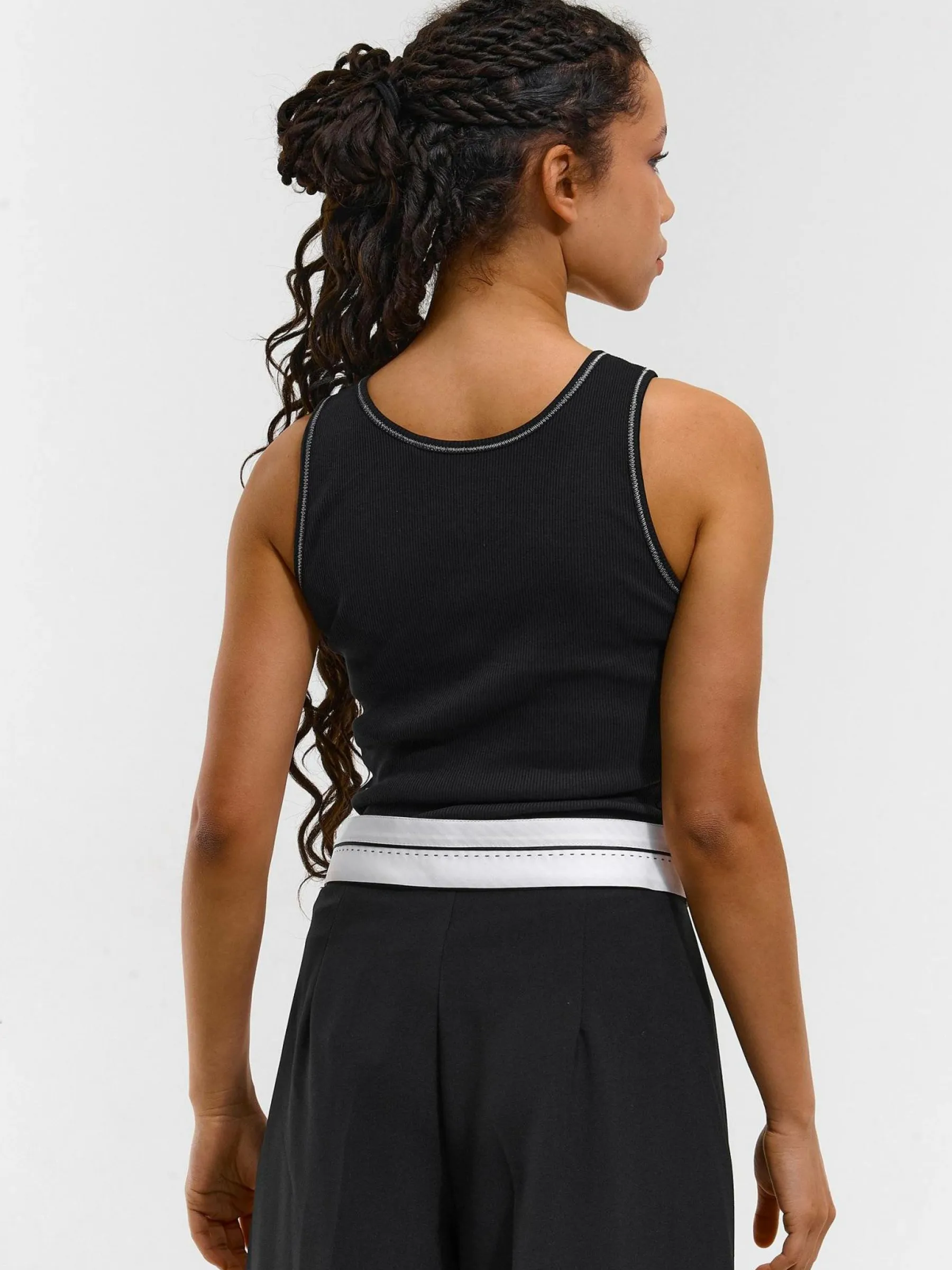 Kolor: czarnyKrój: podstawowyTyp: podkoszulekRekaw: bez rękawówDługość: krótkiPattern style: pojedynczy kolor, ż…
