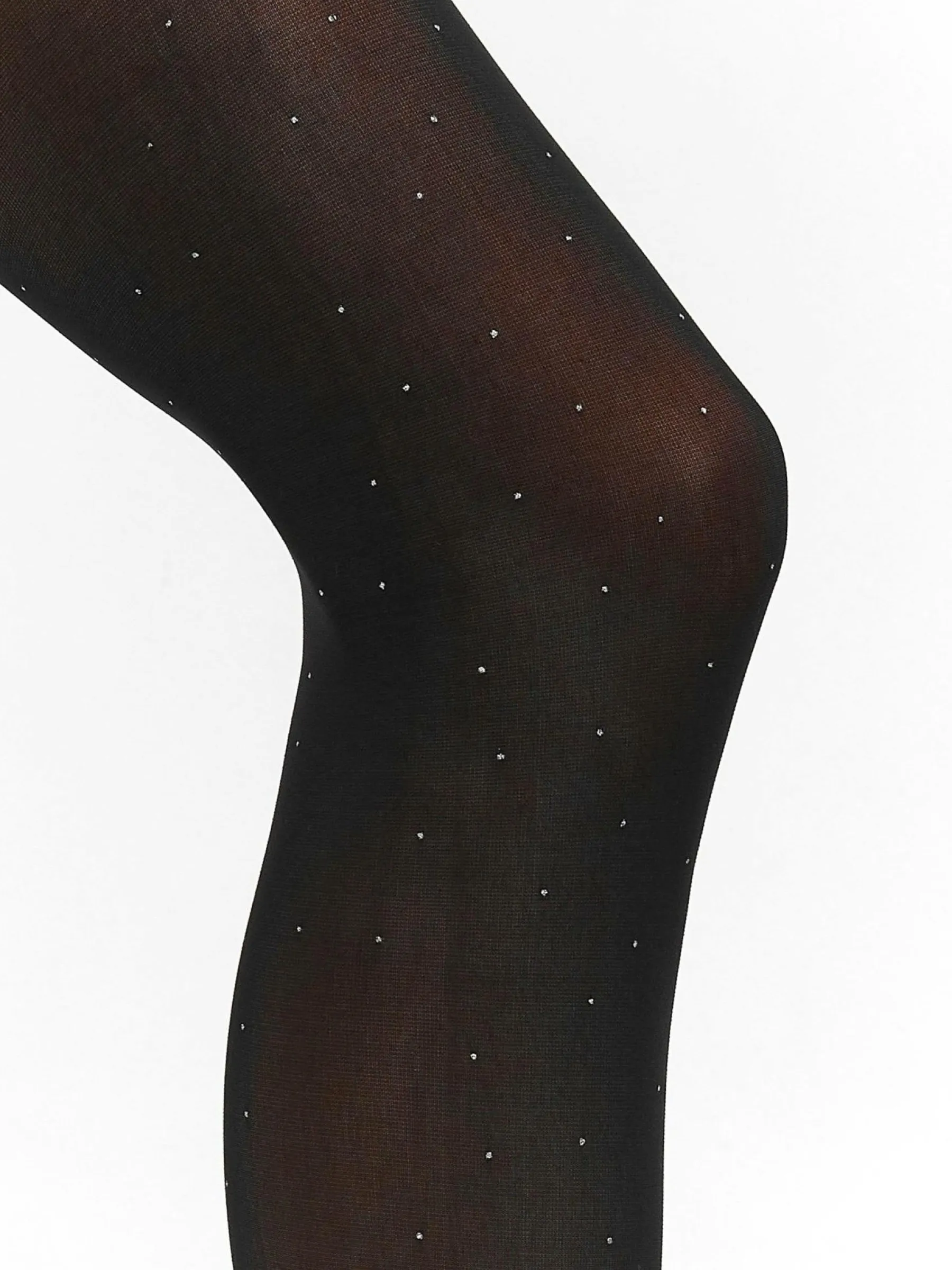 Kolor: czarnyKrój: podstawowyTyp: rajstopyPattern style: pojedynczy kolorDetal: z kamieniamiMateriał: nylonPłeć: kob…