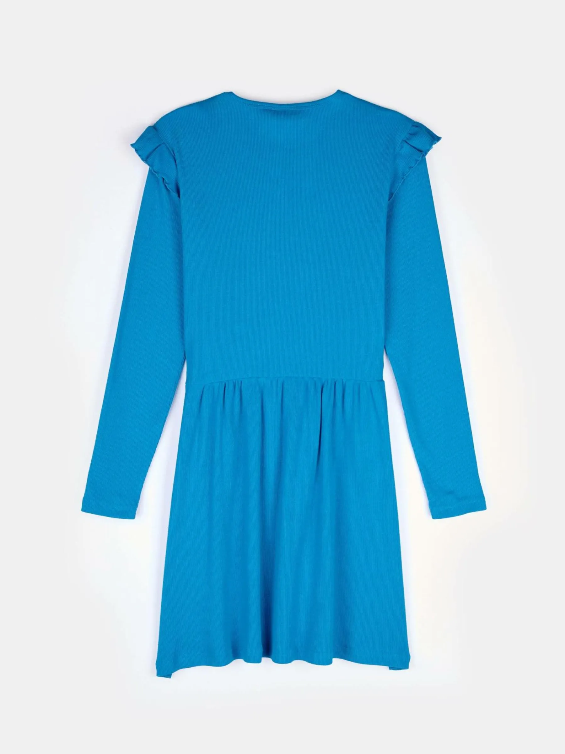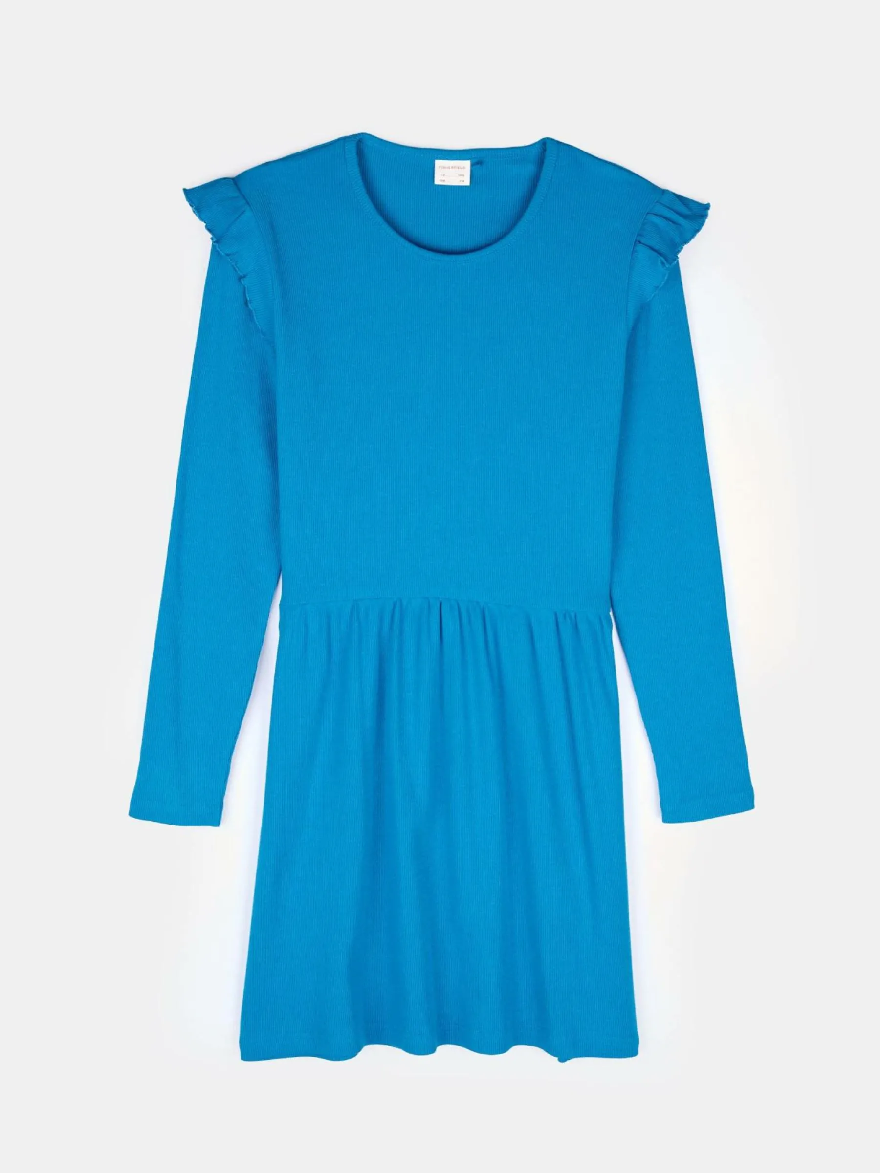 Zdjęcia z modelką mogą nie odpowiadać rzeczywistemu kolorowi produktu.Kolor: niebieskiKrój: z falbaną, asyTyp: suk…