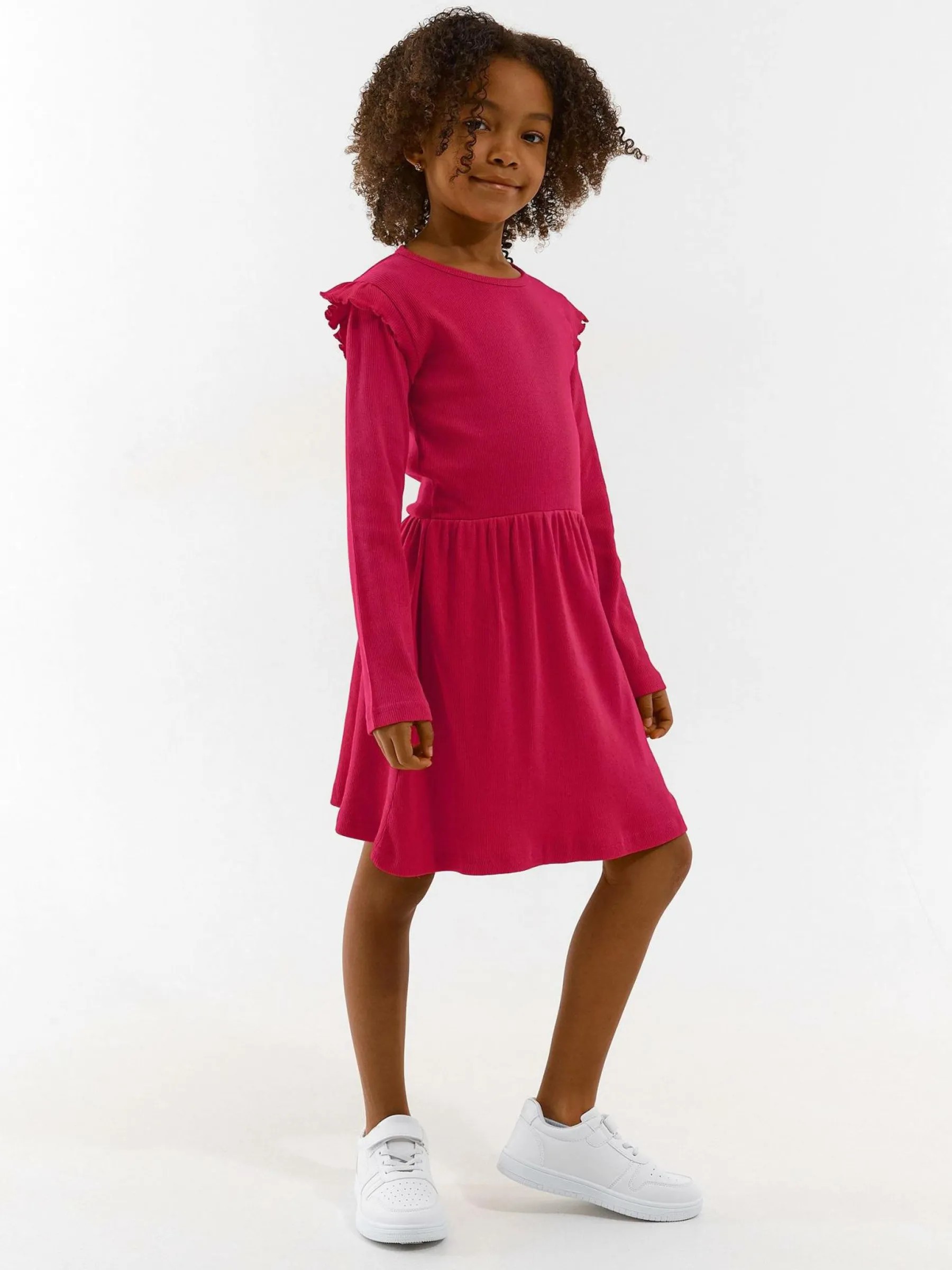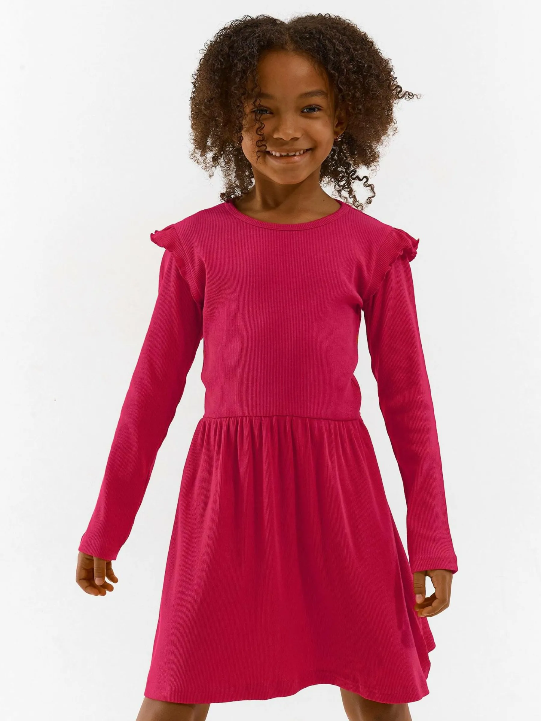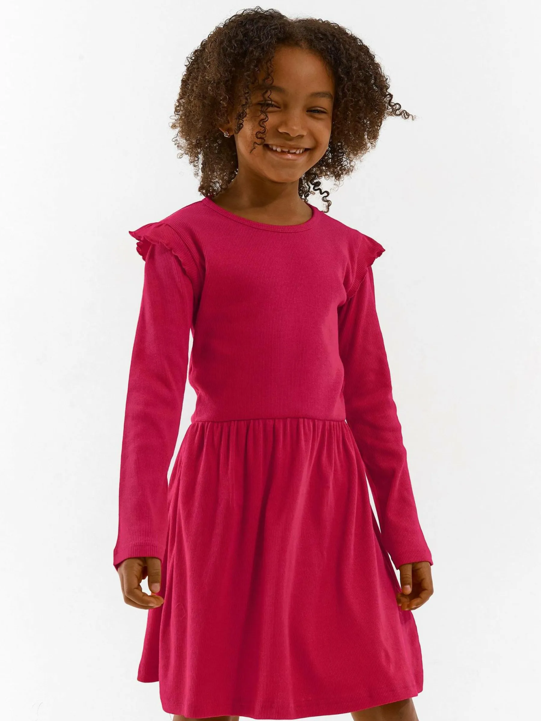 GATE Prążkowana bawełniana sukienka z falbankami|Dzieci Dziewczynki·Sukienki