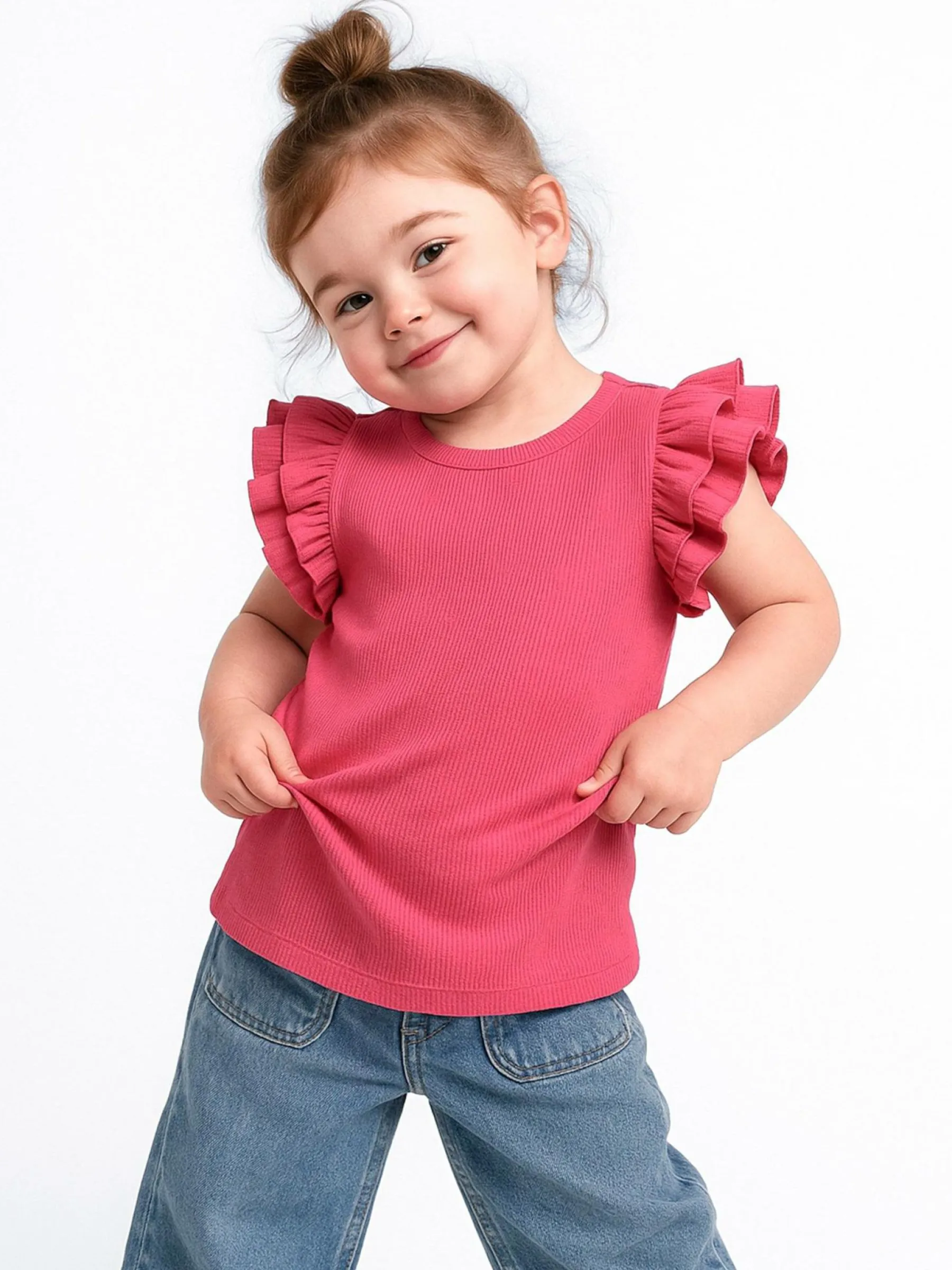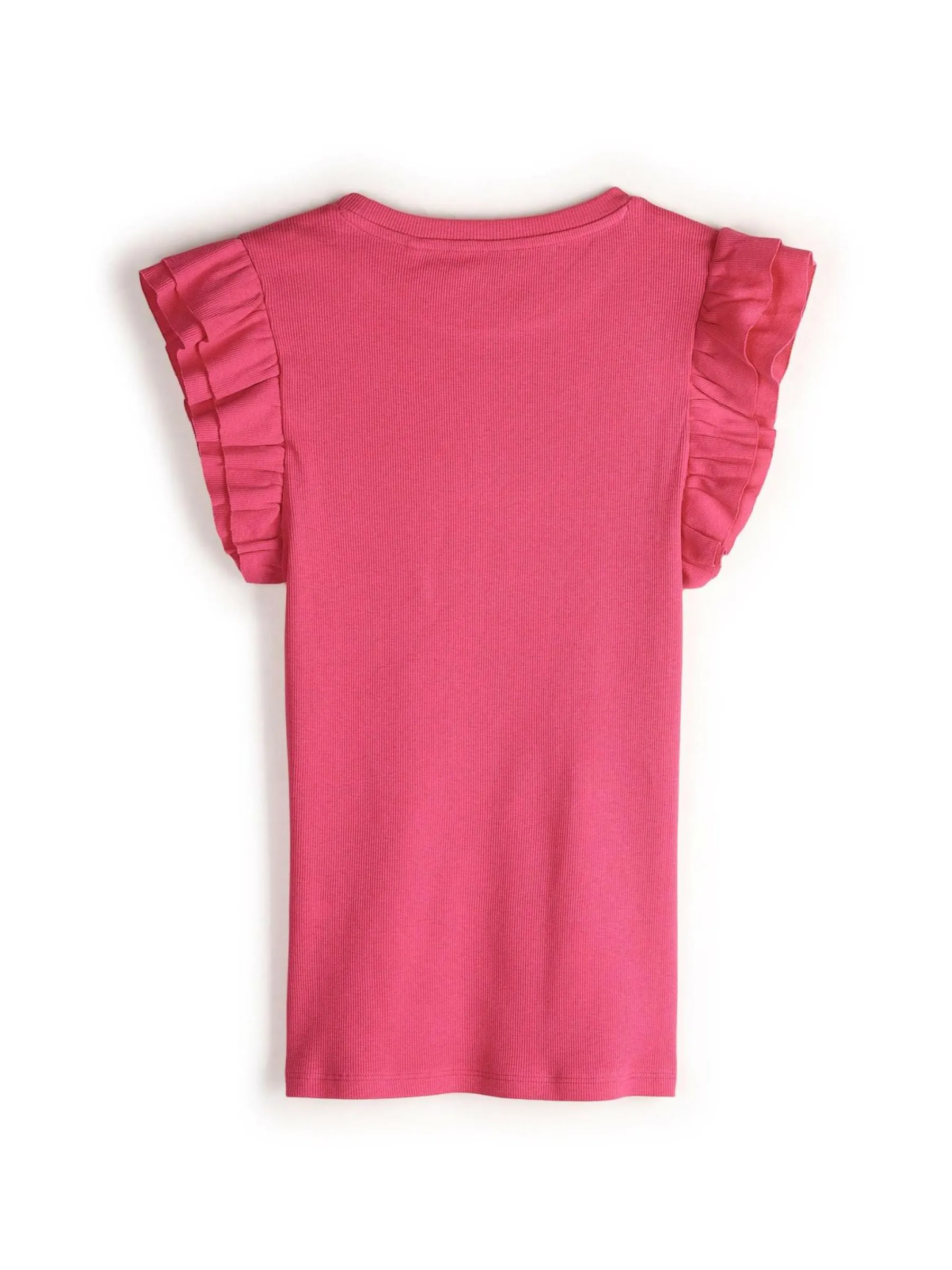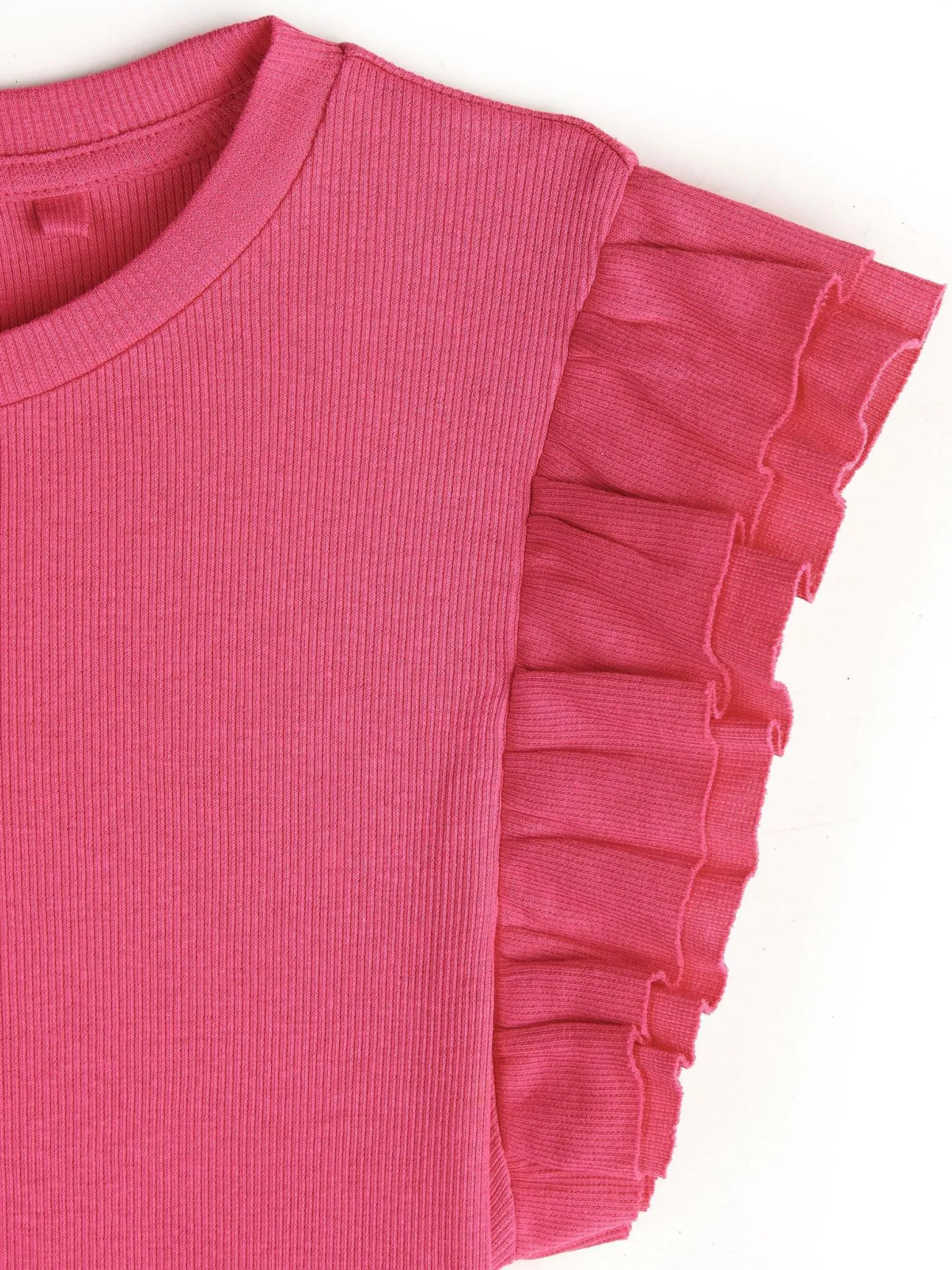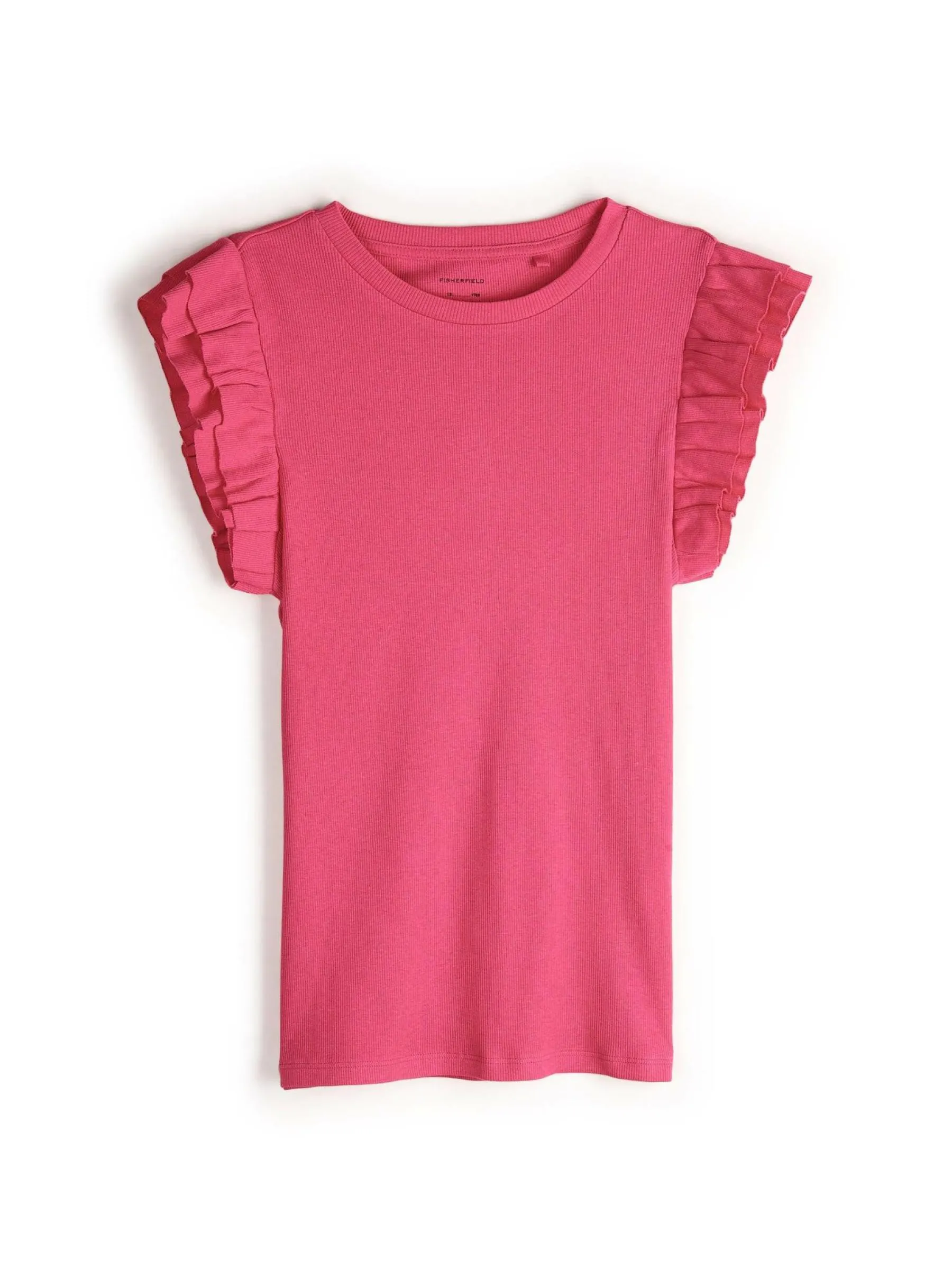 Kolor: różowyKrój: regularTyp: koszulkaRekaw: krótki rękawDługość: krótkiPattern style: pojedynczy kolor, żebr…