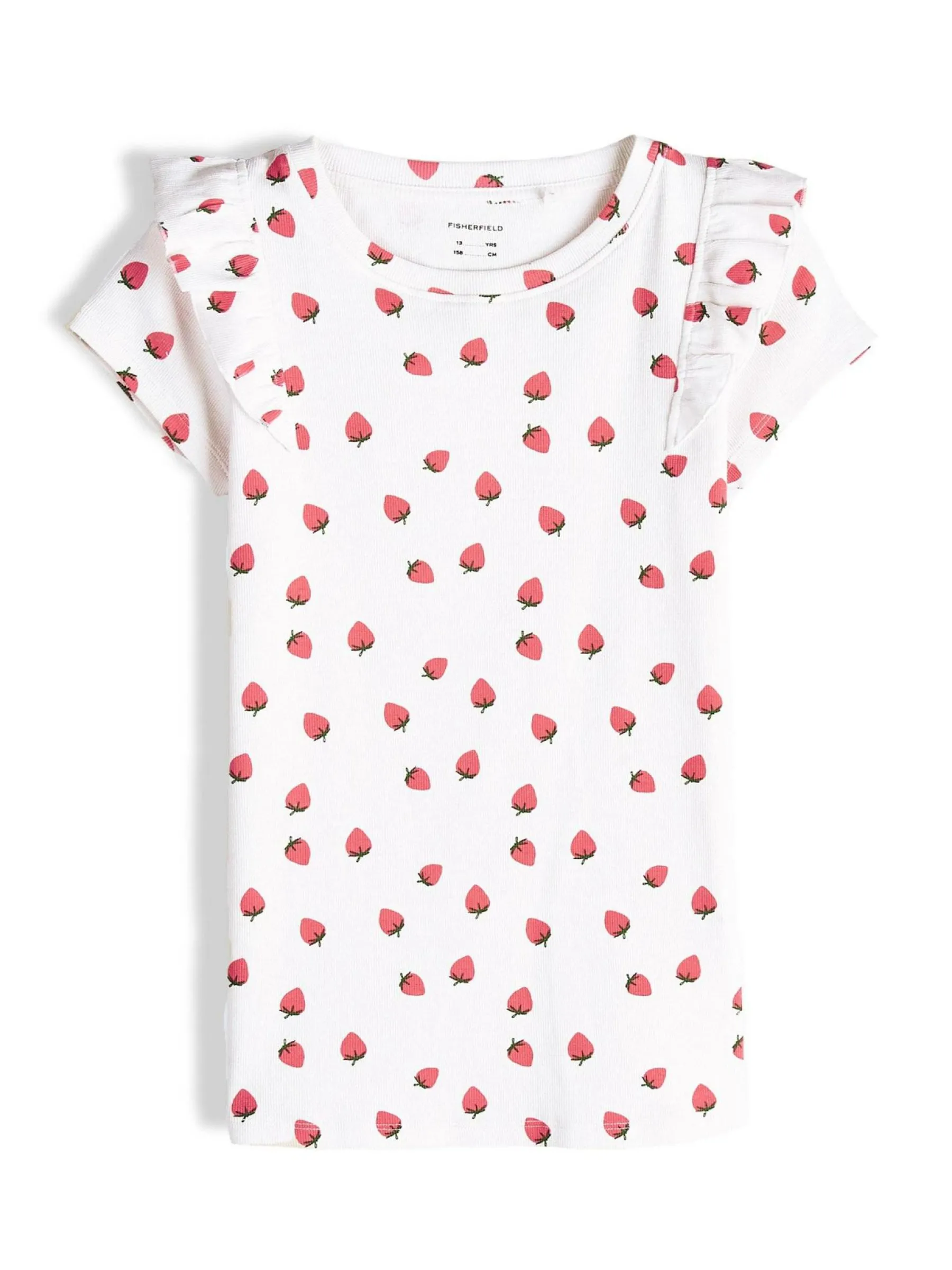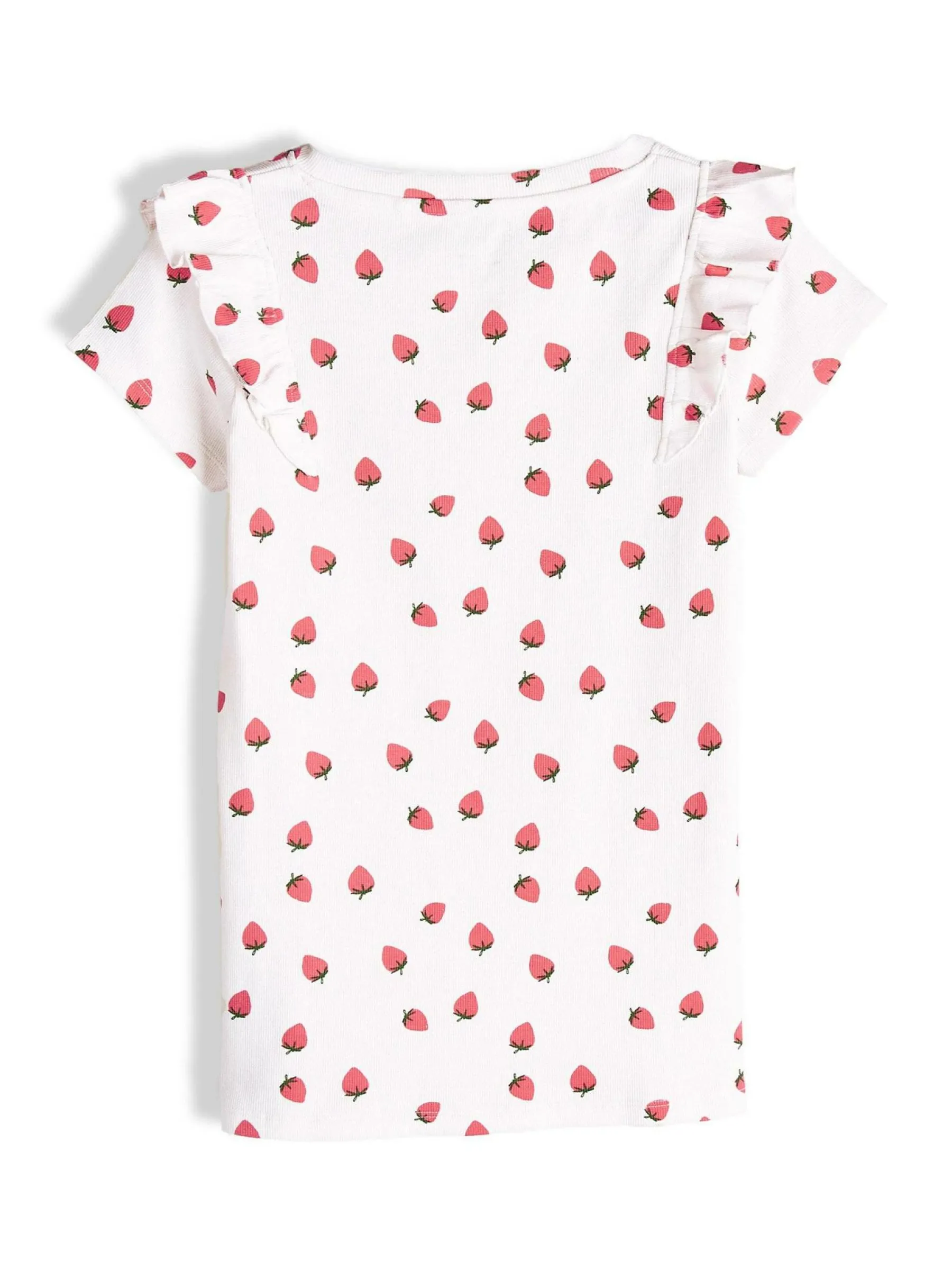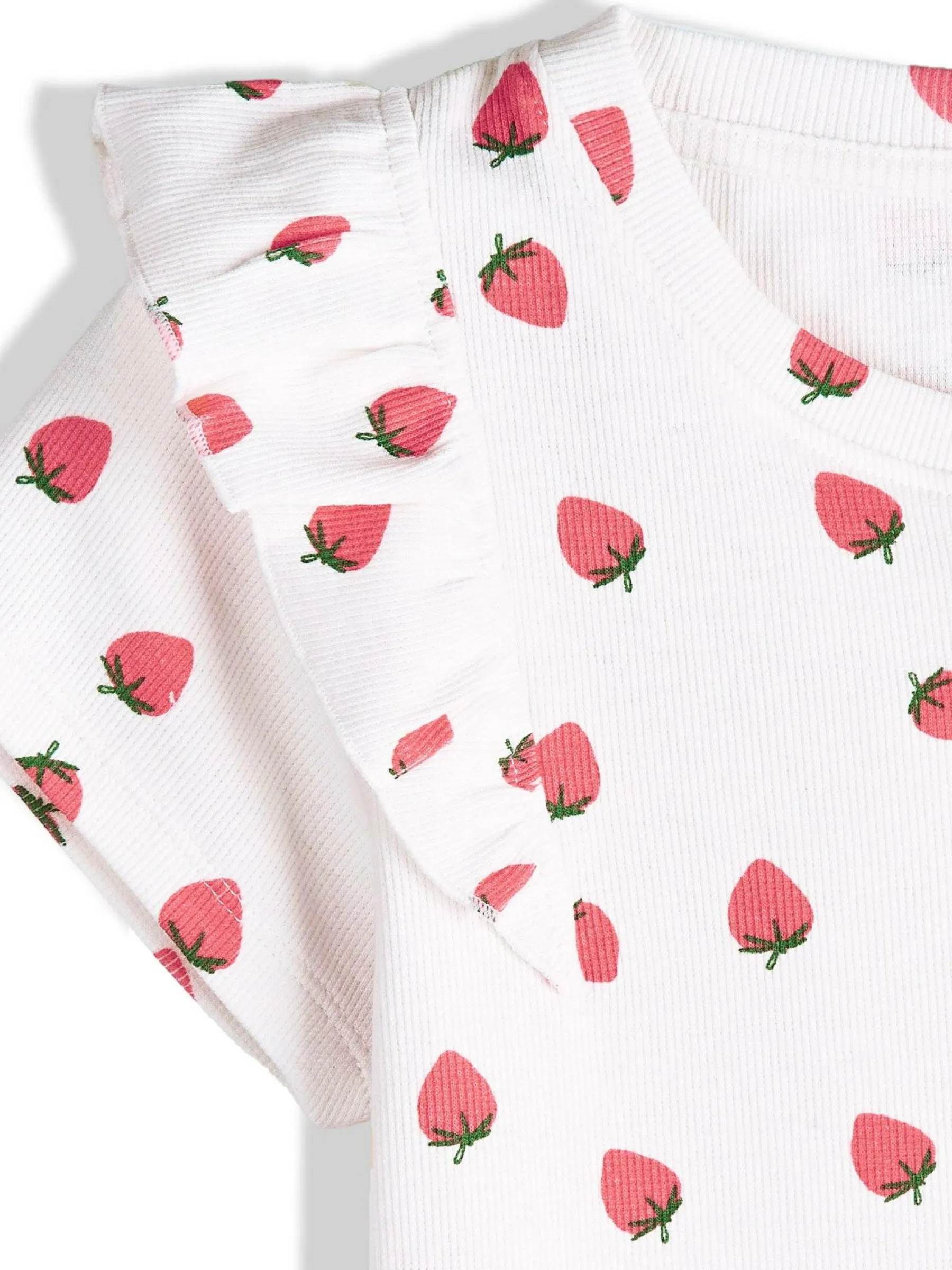 Kolor: białyKrój: z falbanąTyp: koszulkaRekaw: krótki rękawDługość: krótkiPattern style: żebrowany, wzorzysteD…