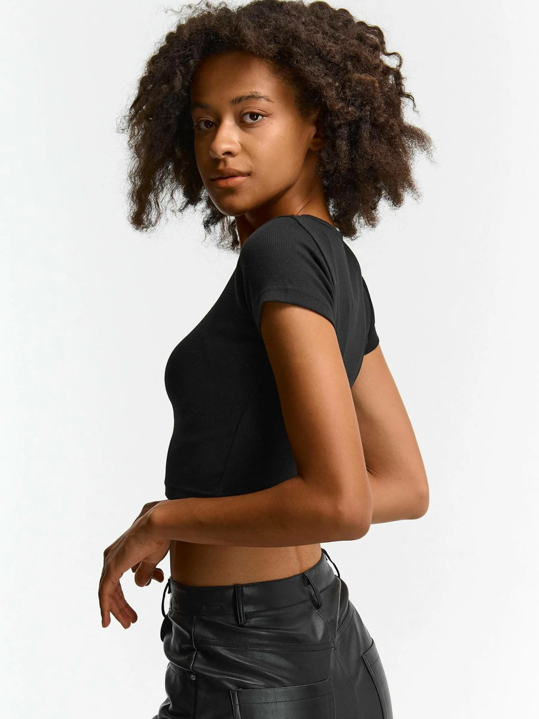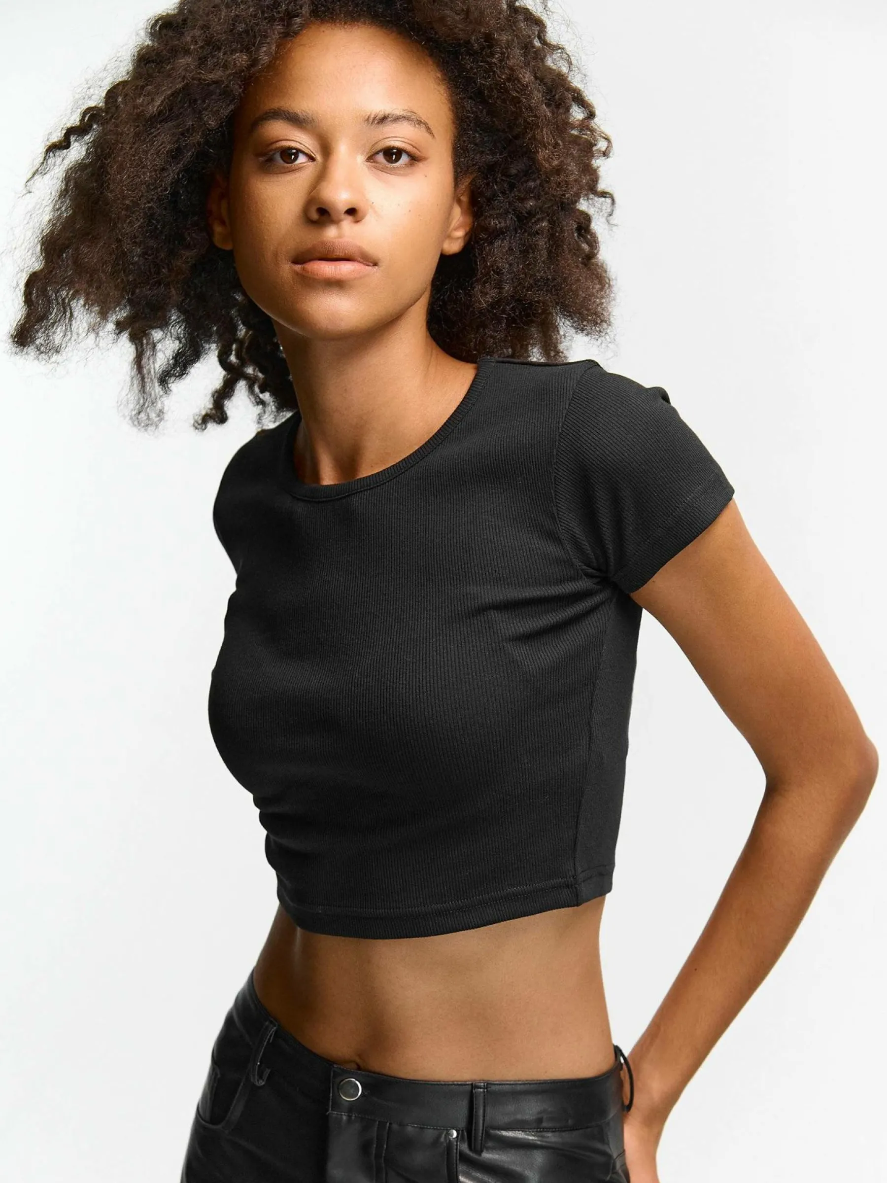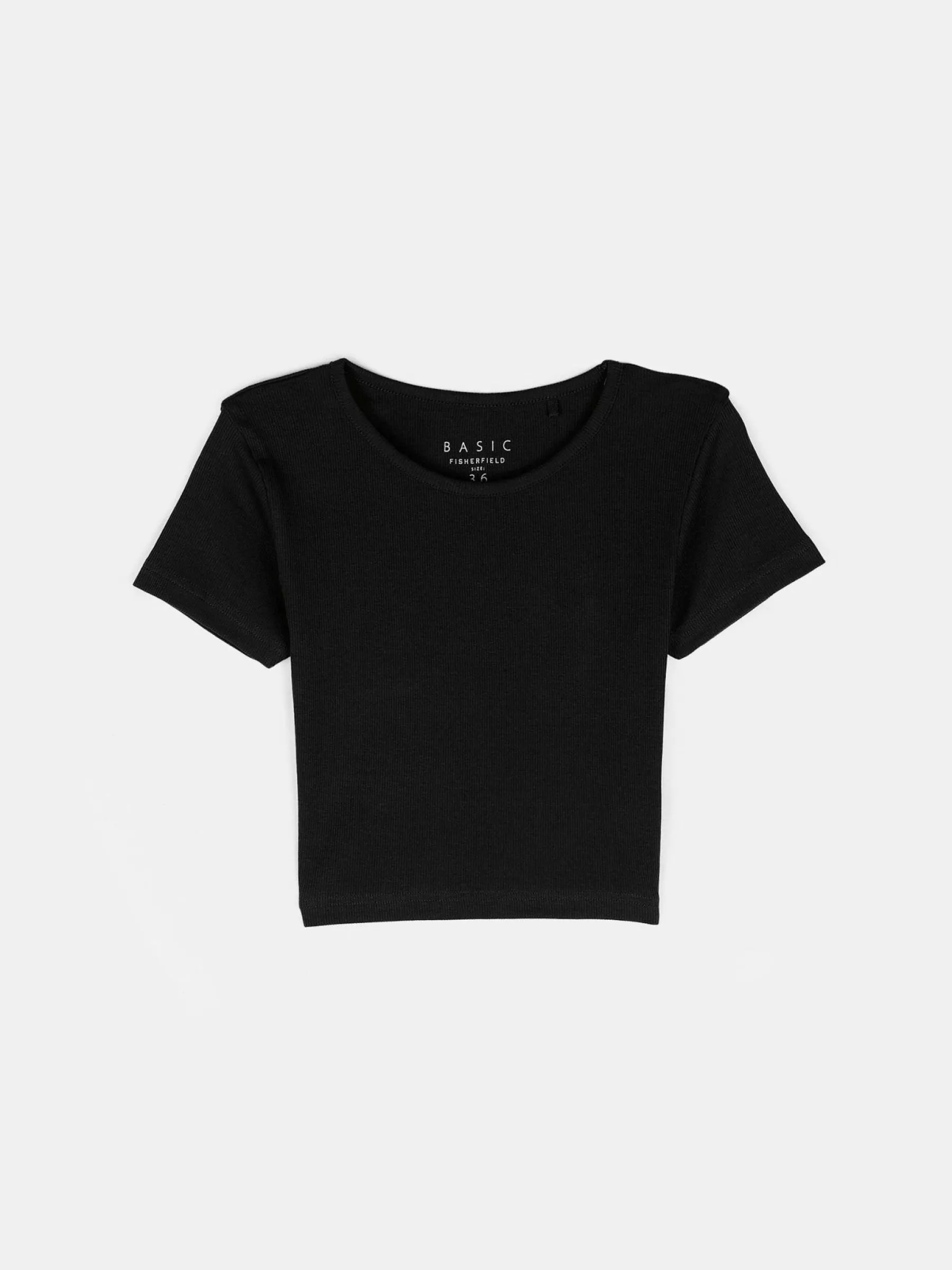 Kolor: czarnyKrój: regularTyp: koszulkaRekaw: krótki rękawDługość: krótki topPattern style: pojedynczy kolor, że…