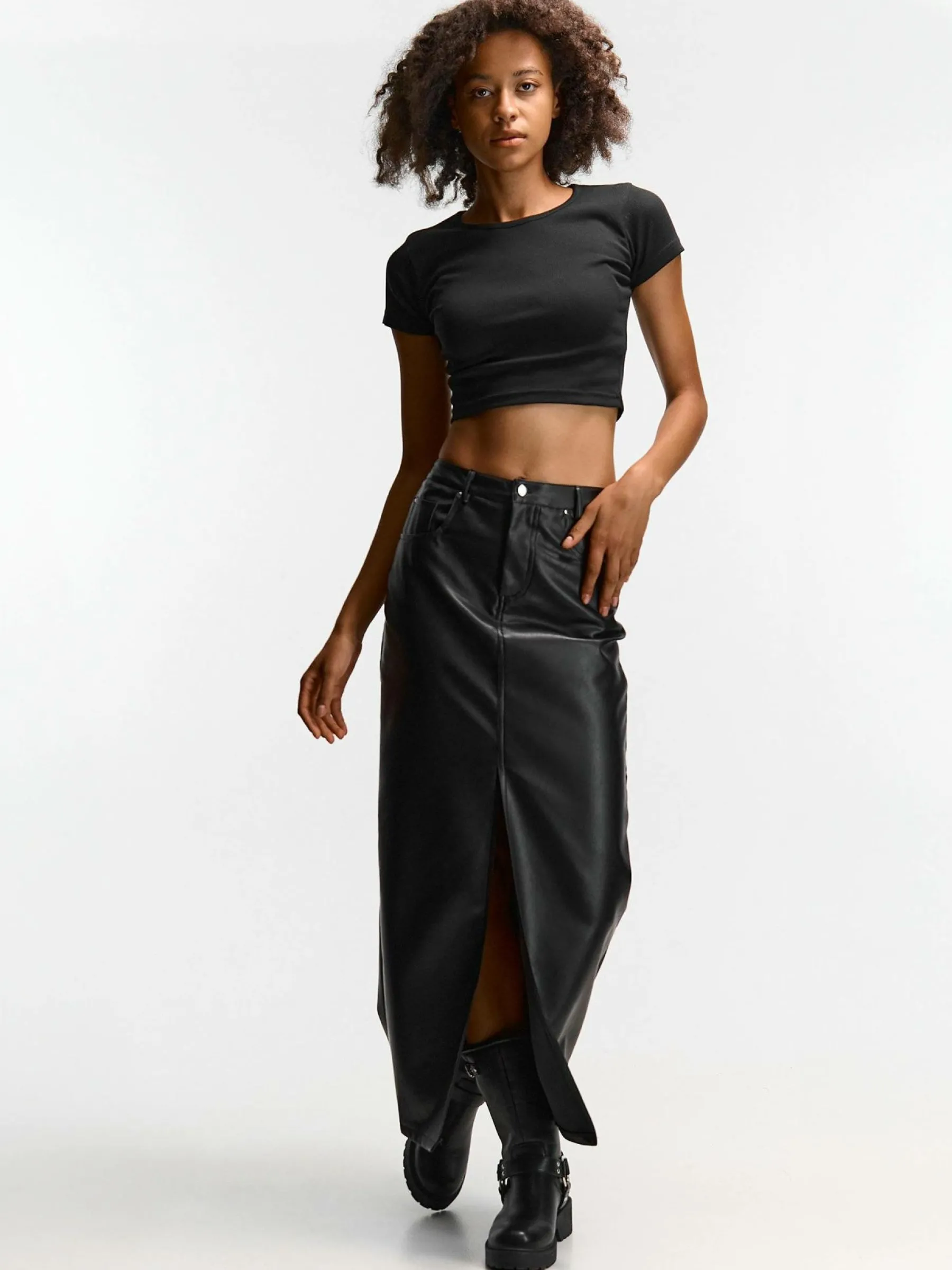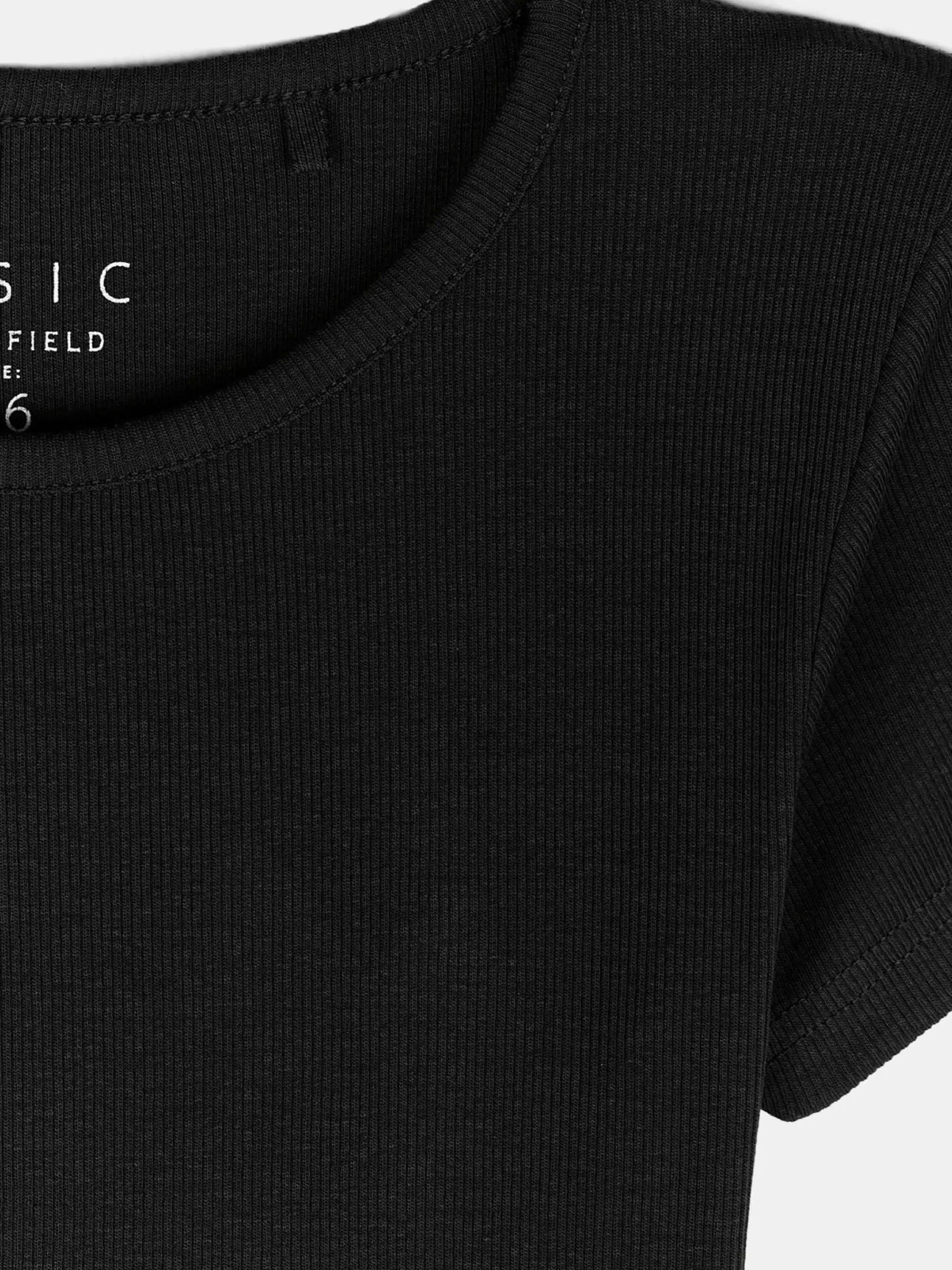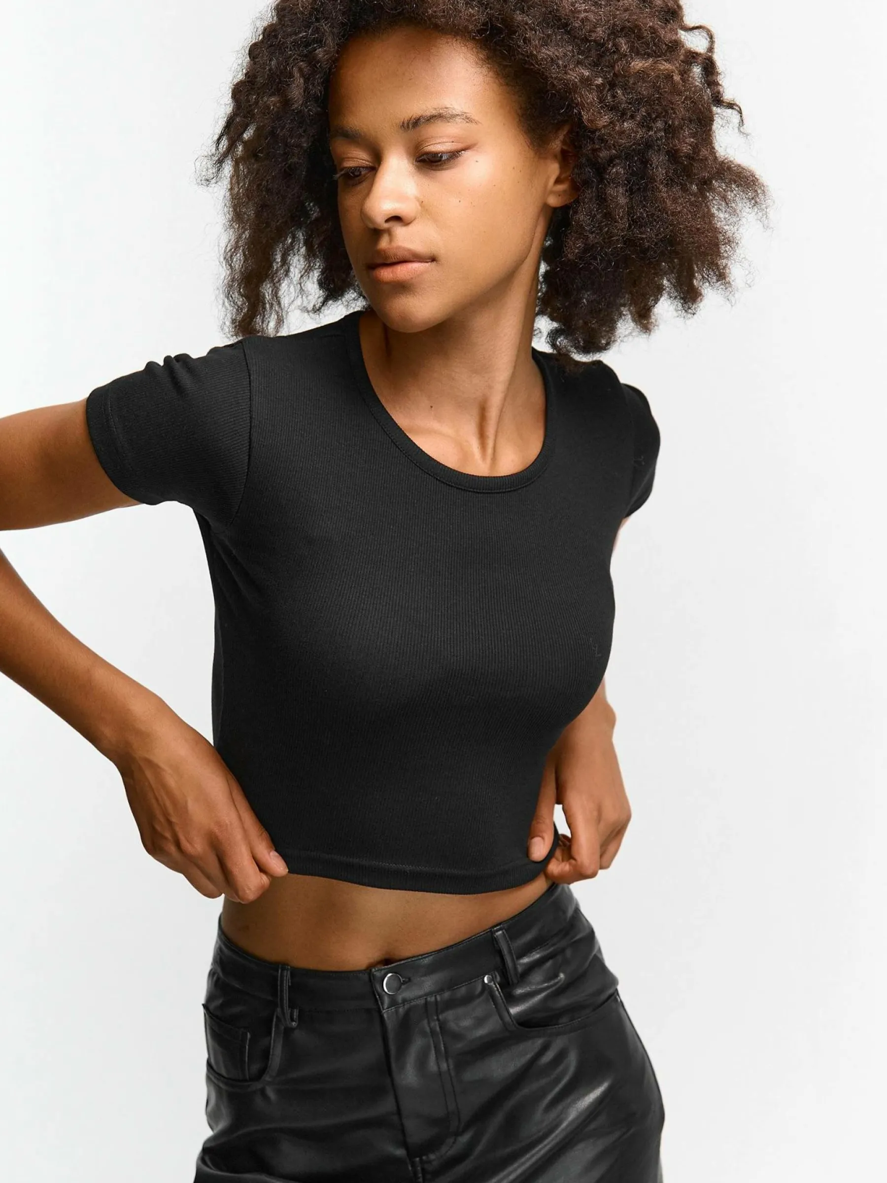 Kolor: czarnyKrój: regularTyp: koszulkaRekaw: krótki rękawDługość: krótki topPattern style: pojedynczy kolor, że…