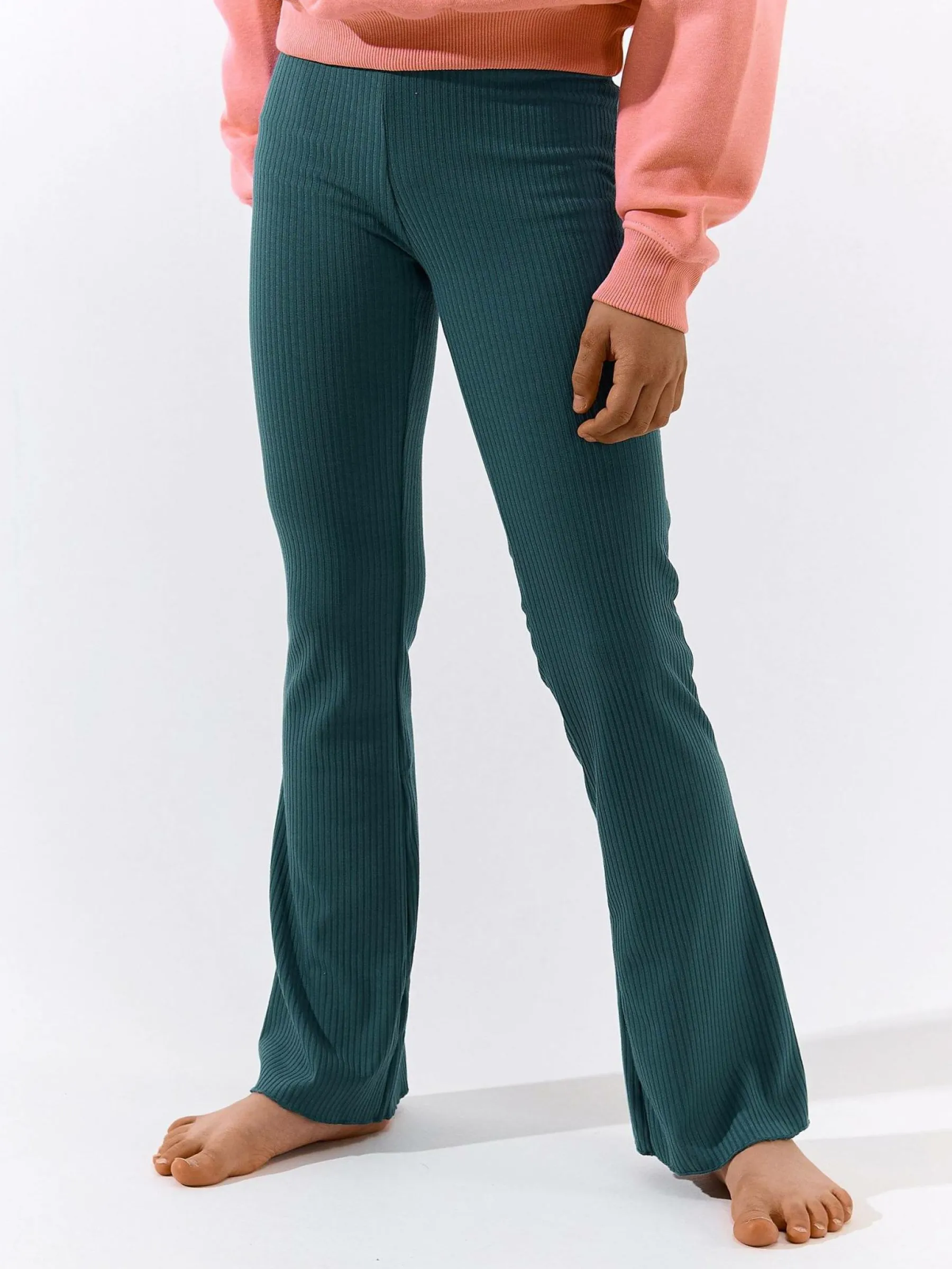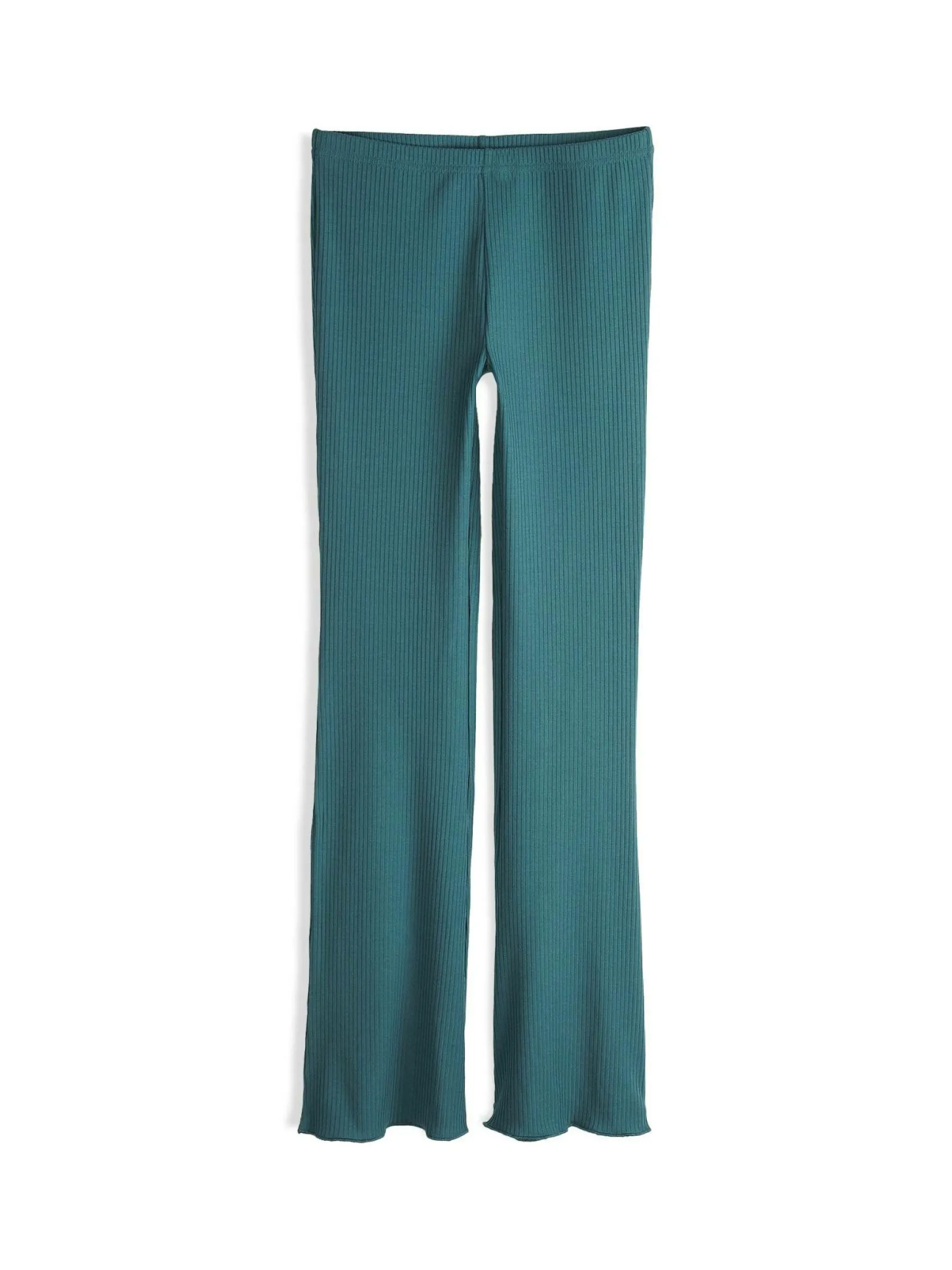 Kolor: zielonyKrój: dzwonTyp: spodnieDługość: dlugiePattern style: pojedynczy kolor, żebrowanyDetal: z elastyczną …