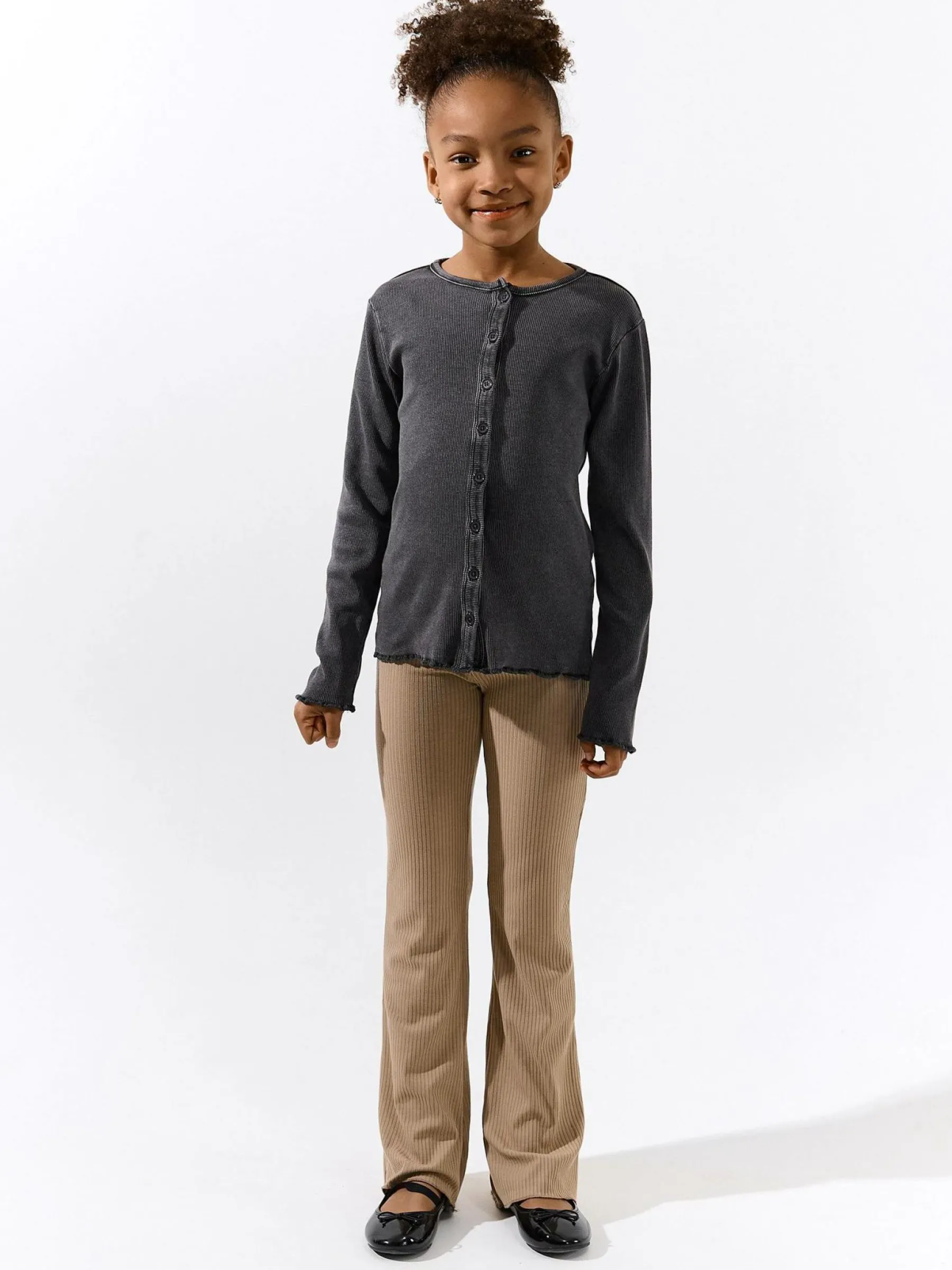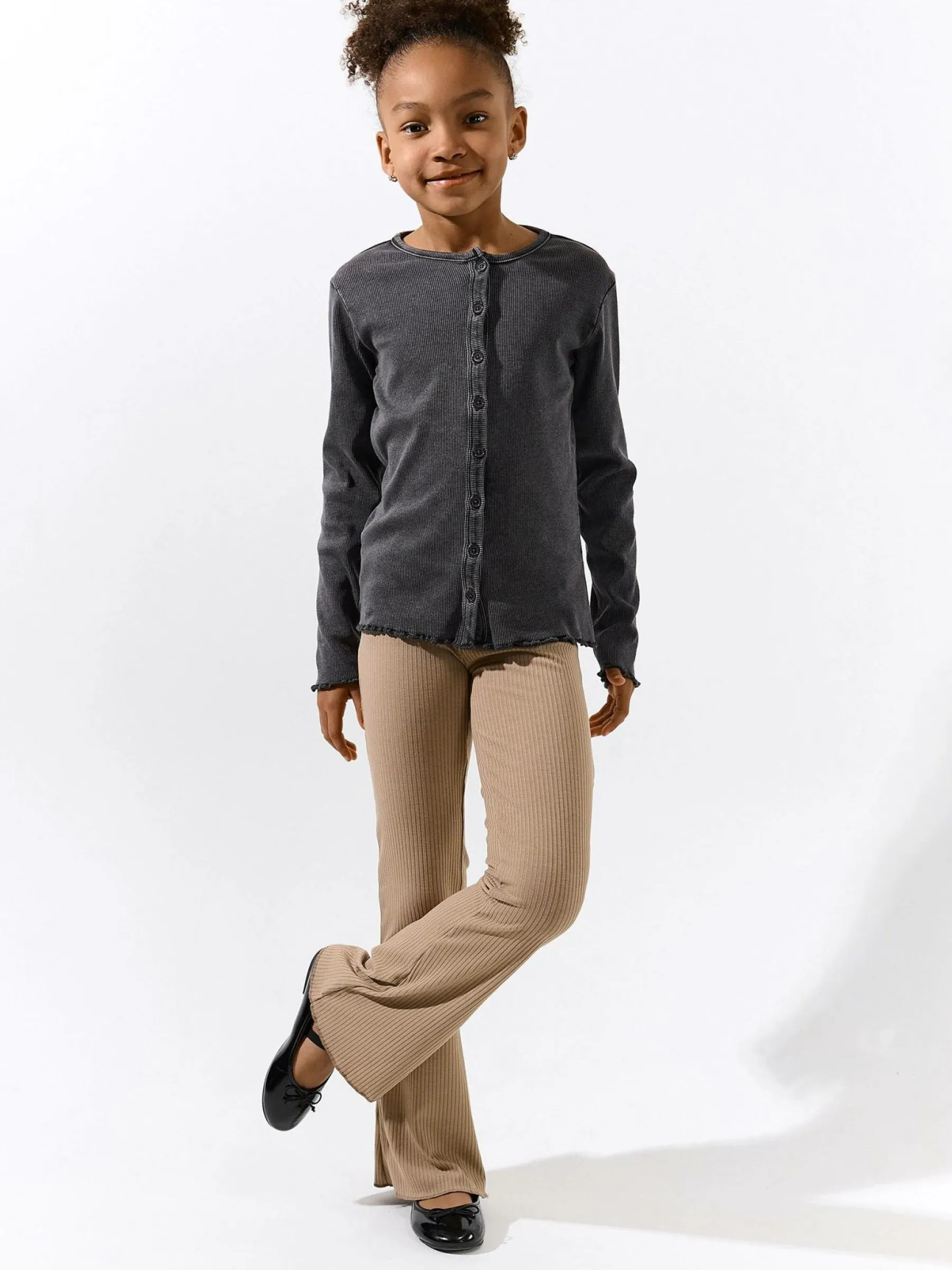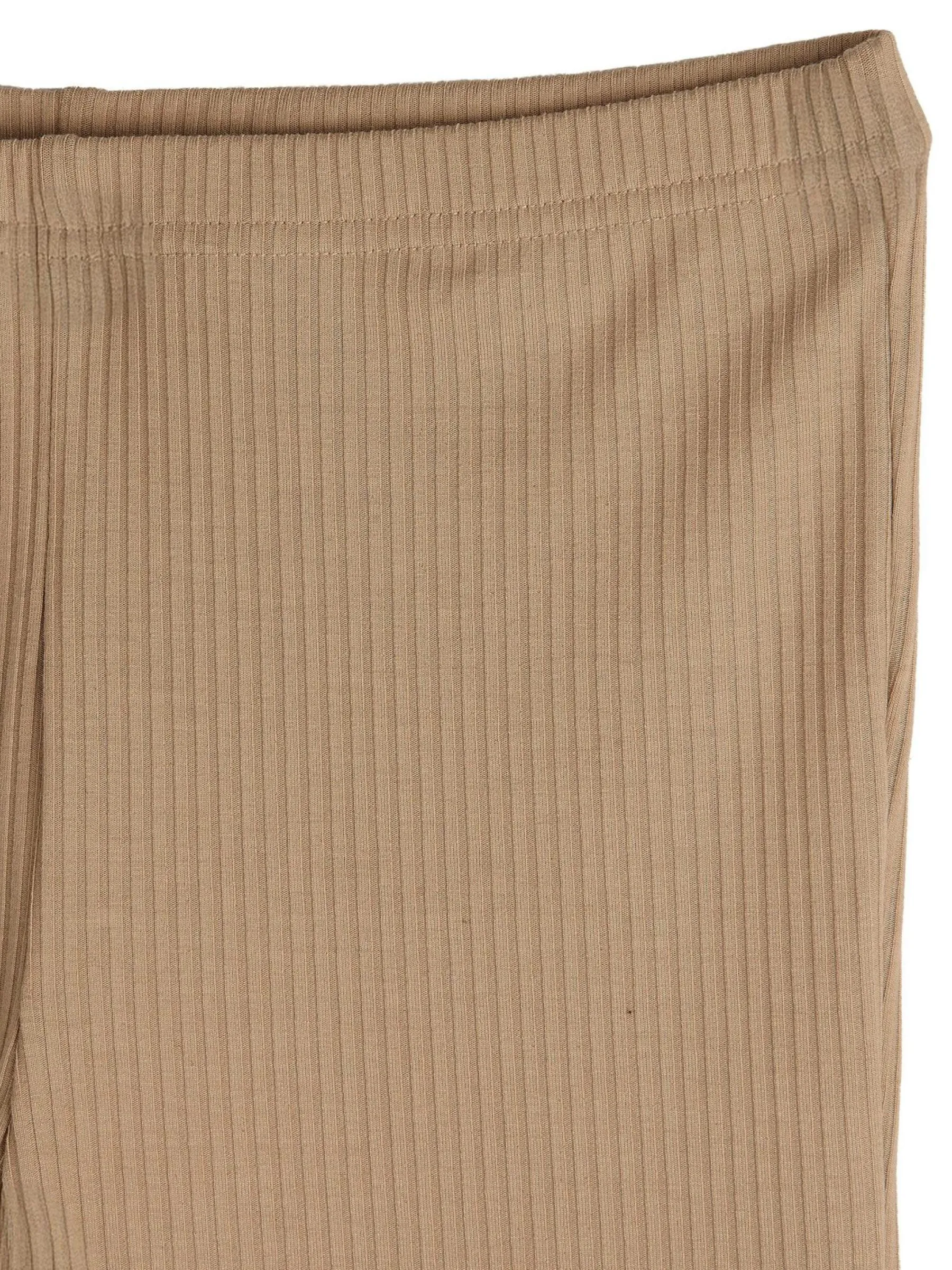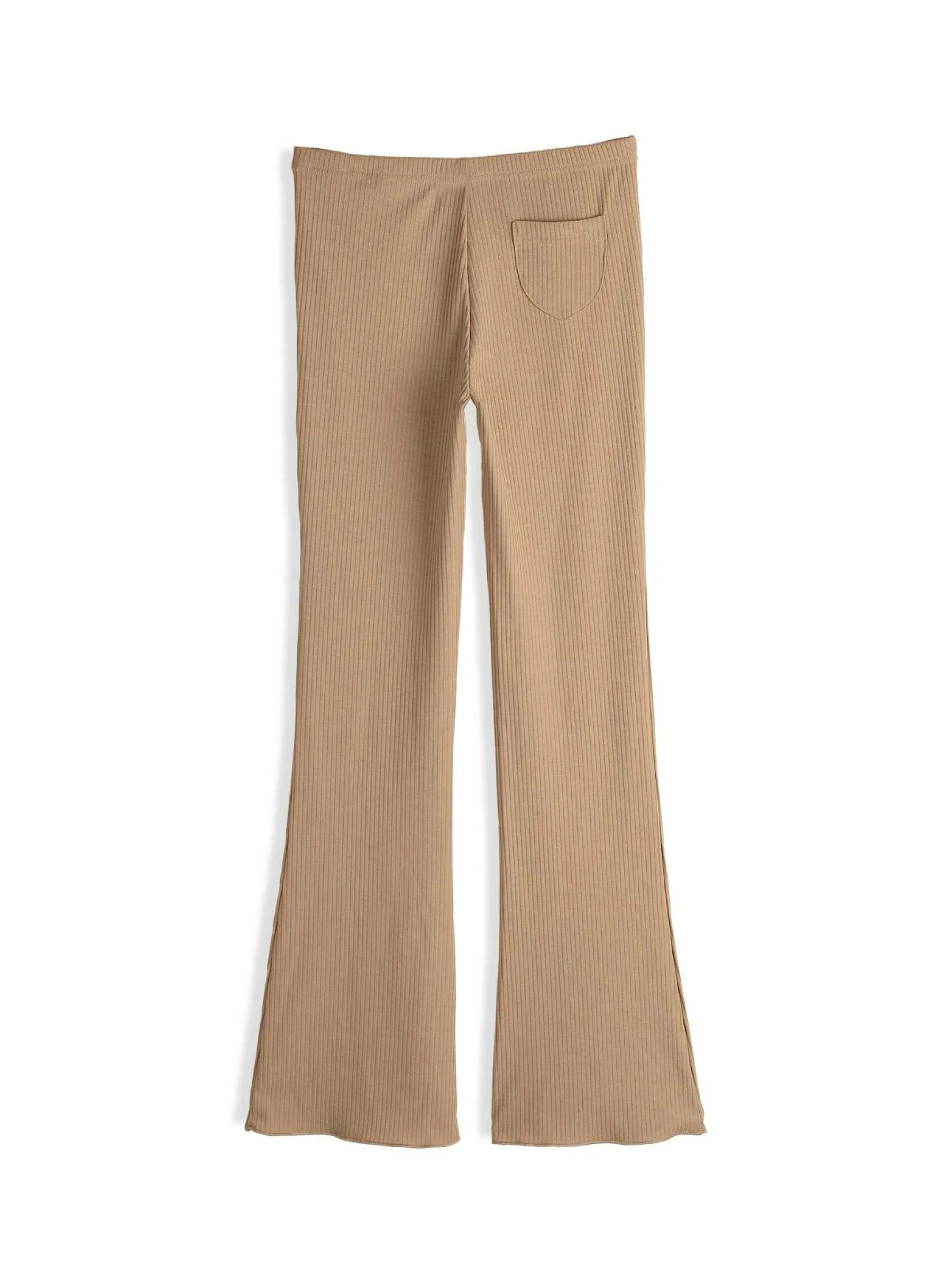 Kolor: beżowyKrój: dzwonTyp: spodnieDługość: dlugiePattern style: pojedynczy kolor, żebrowanyDetal: z elastyczną …