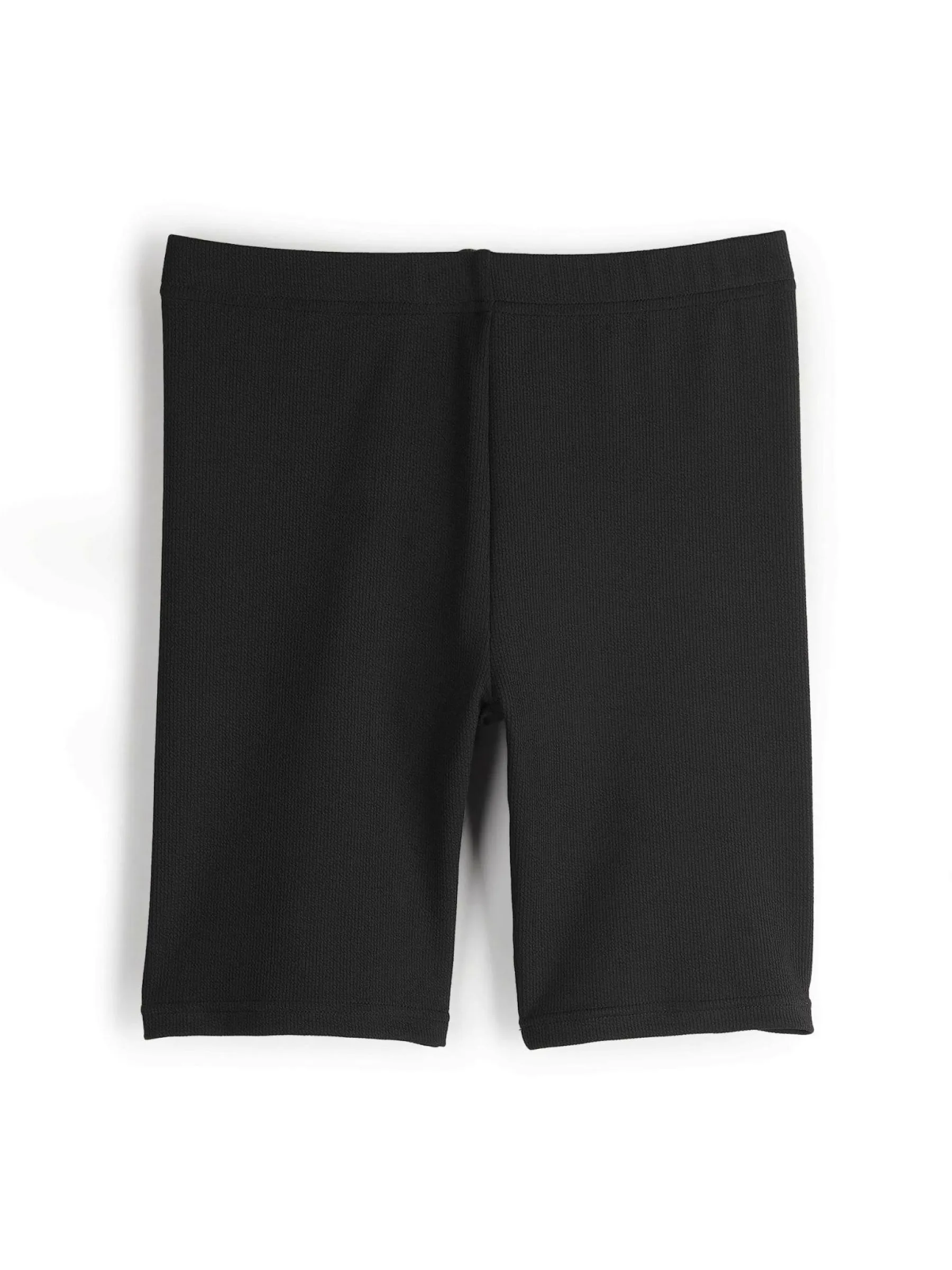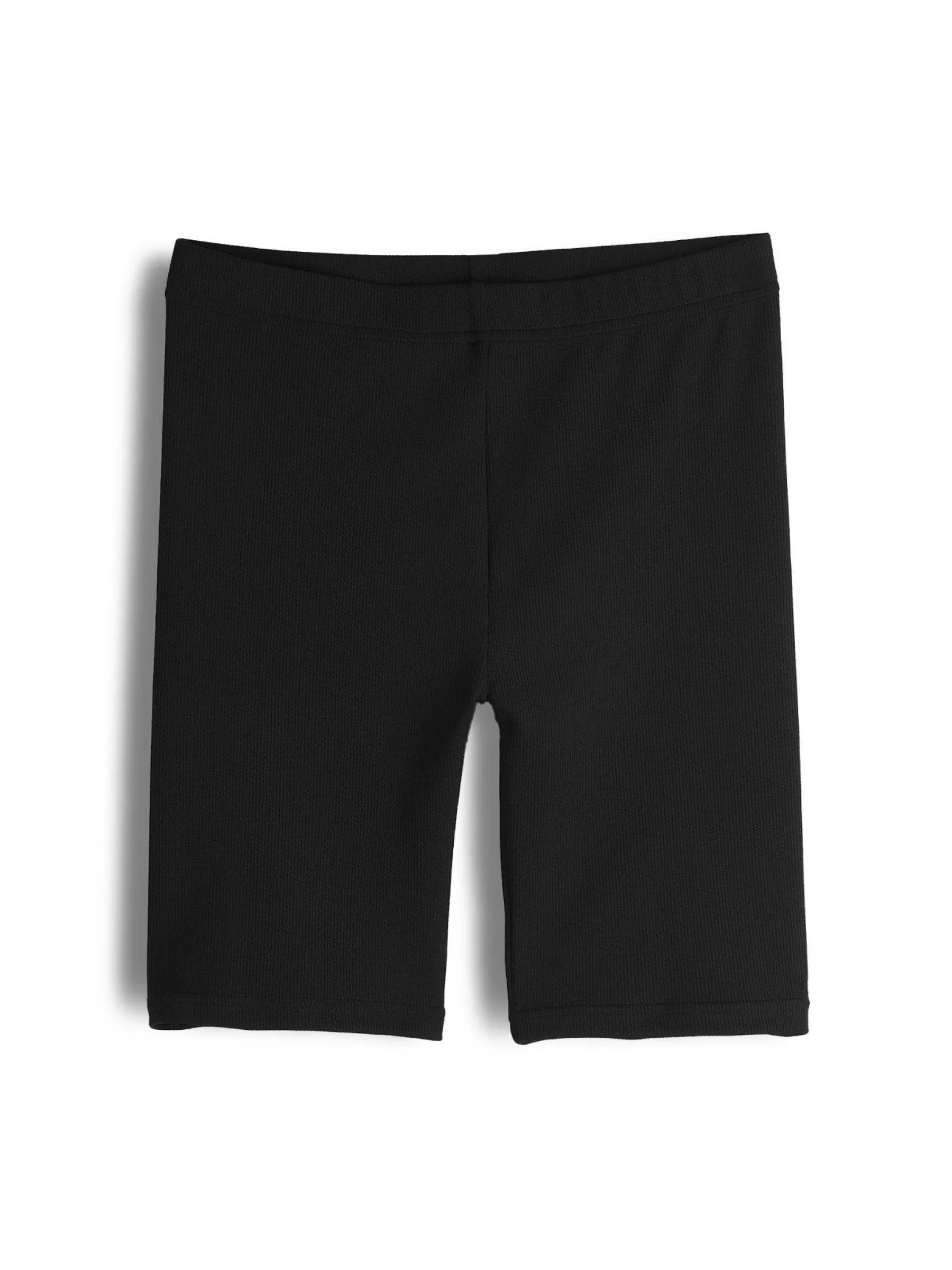 Kolor: czarnyKrój: bikerTyp: spodenkiDługość: krótkiPattern style: pojedynczy kolor, żebrowanyDetal: z elastyczną…
