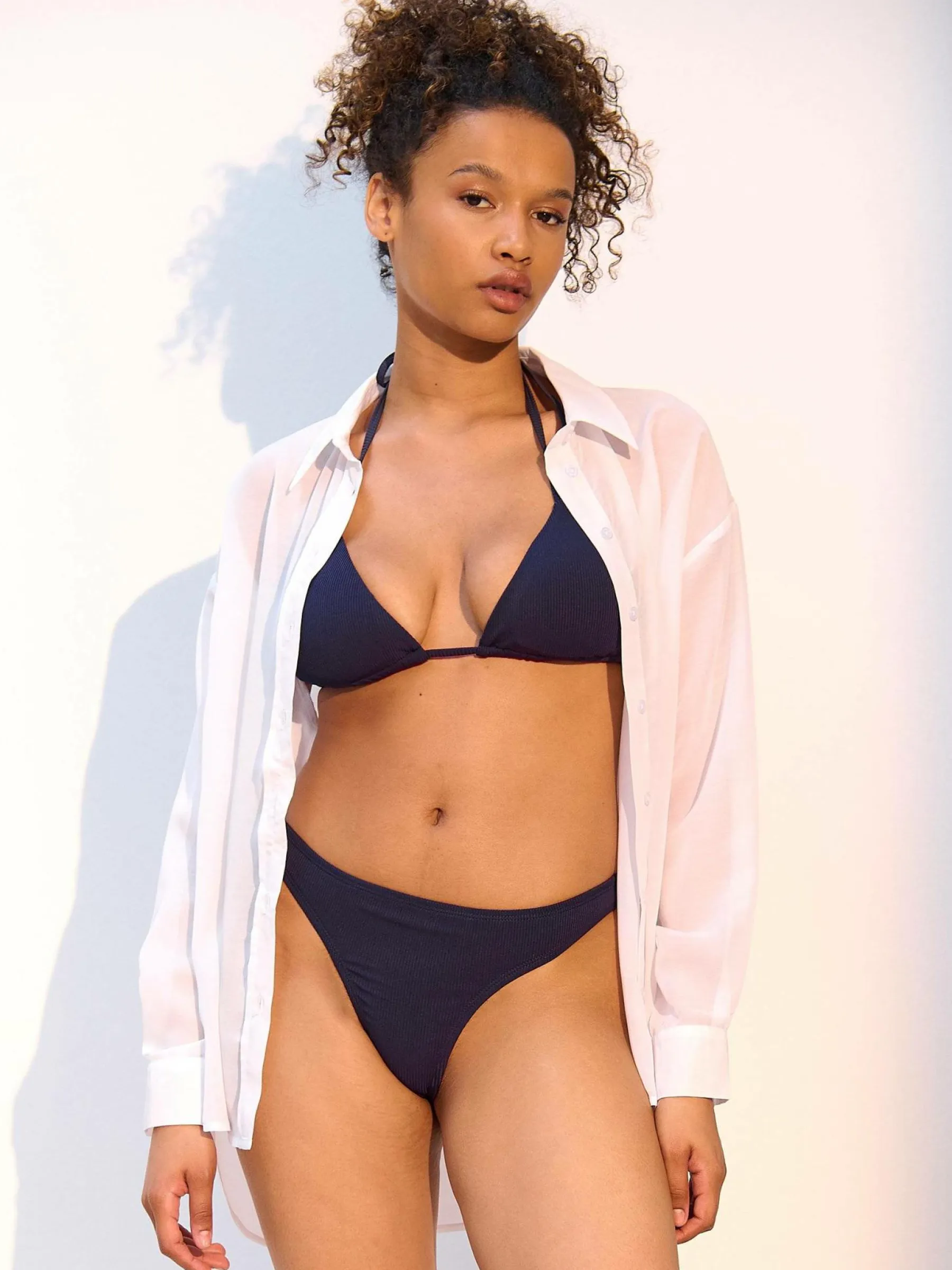 Kolor: granatowyKrój: stringi, bikiniTyp: dół bikiniPattern style: pojedynczy kolor, żebrowanyMateriał: syntetyczne…