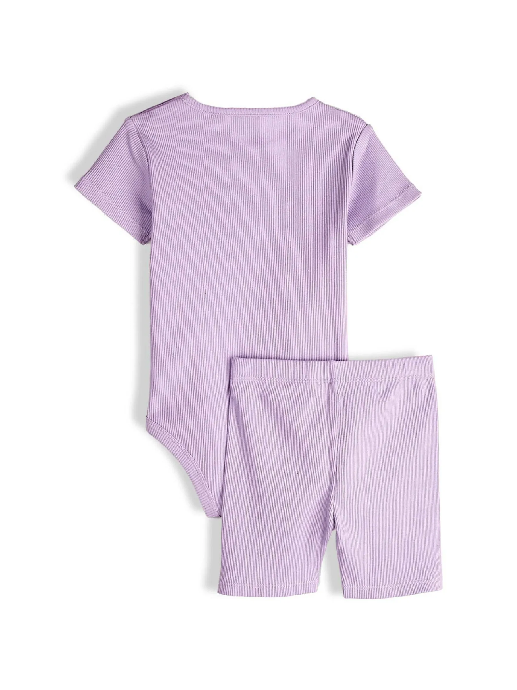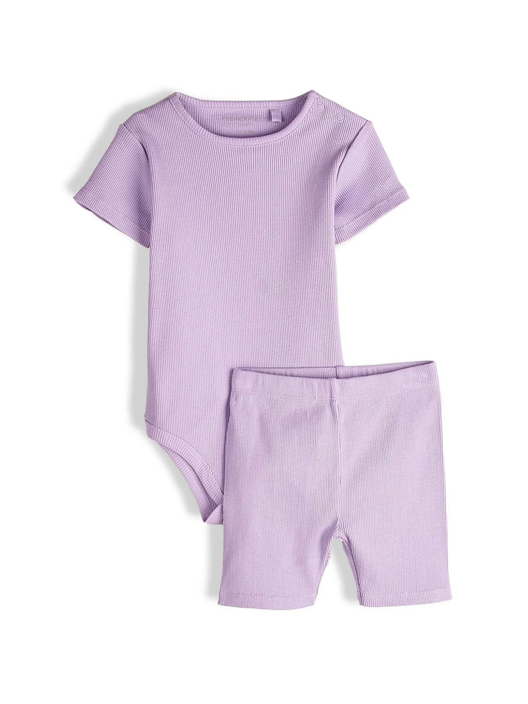 Kolor: purpurowyKrój: podstawowyTyp: body, spodenkiRekaw: krótki rękawDługość: krótkiPattern style: pojedynczy ko…