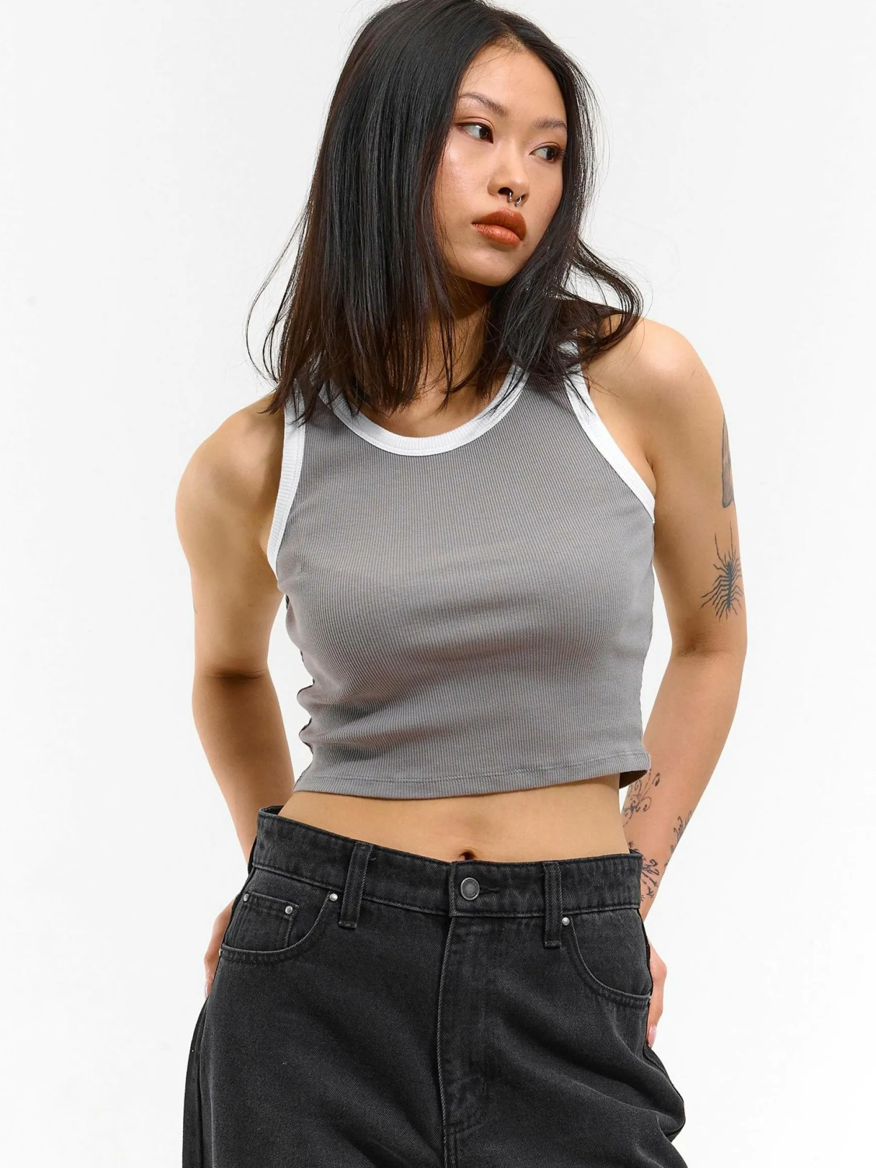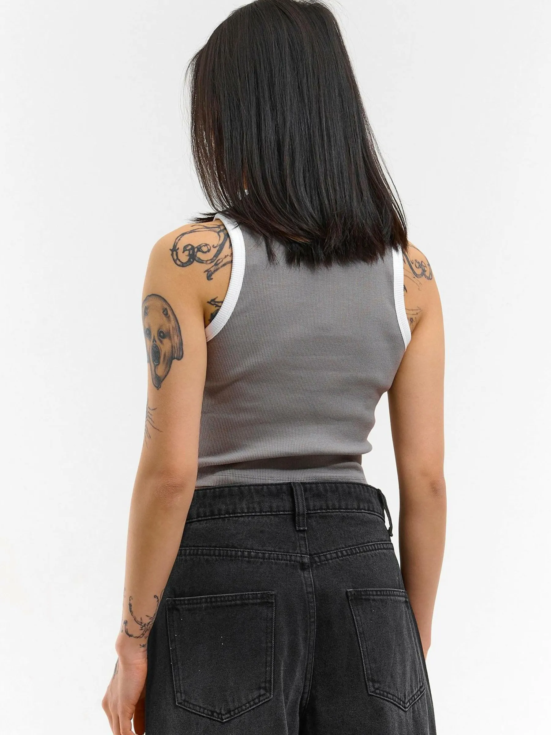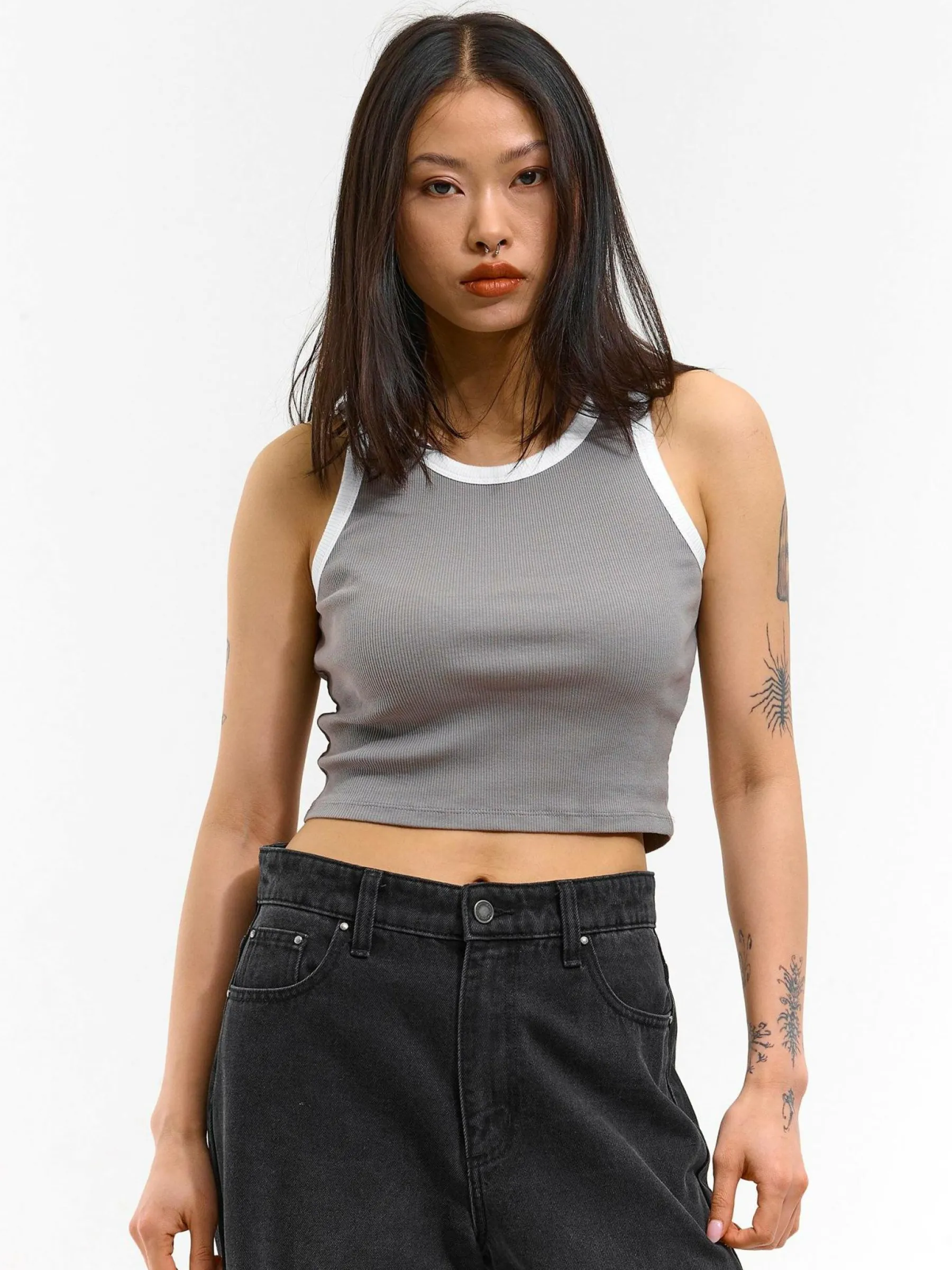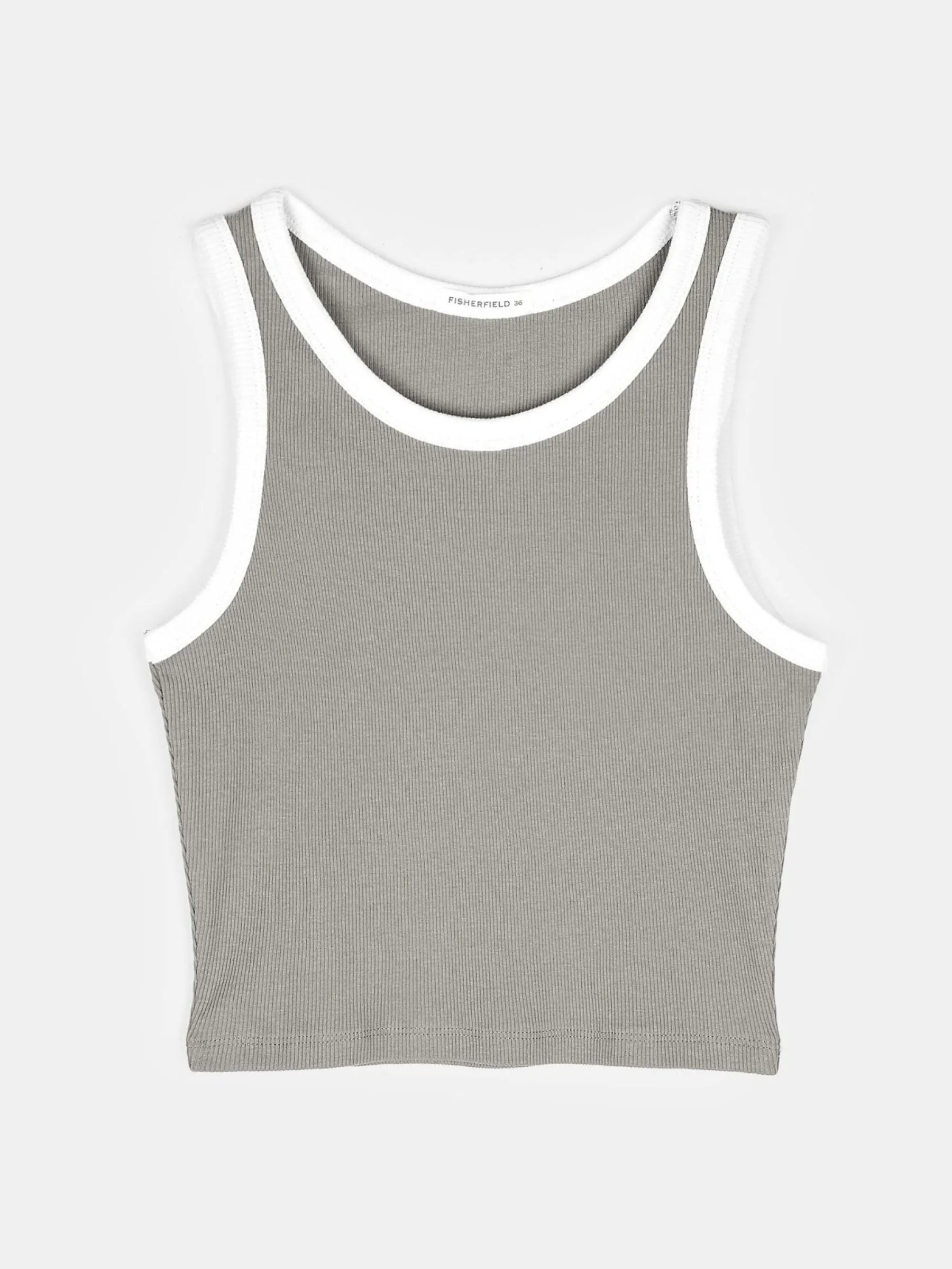 Kolor: szaryKrój: regularTyp: podkoszulekRekaw: bez rękawówDługość: krótkiPattern style: pojedynczy kolor, żebro…