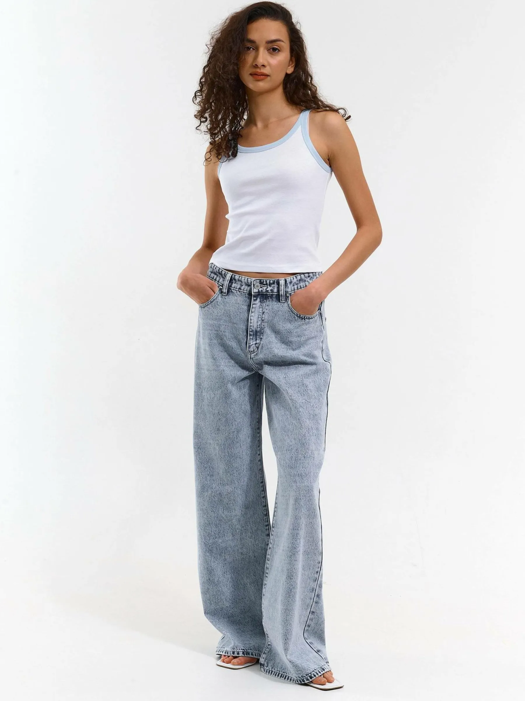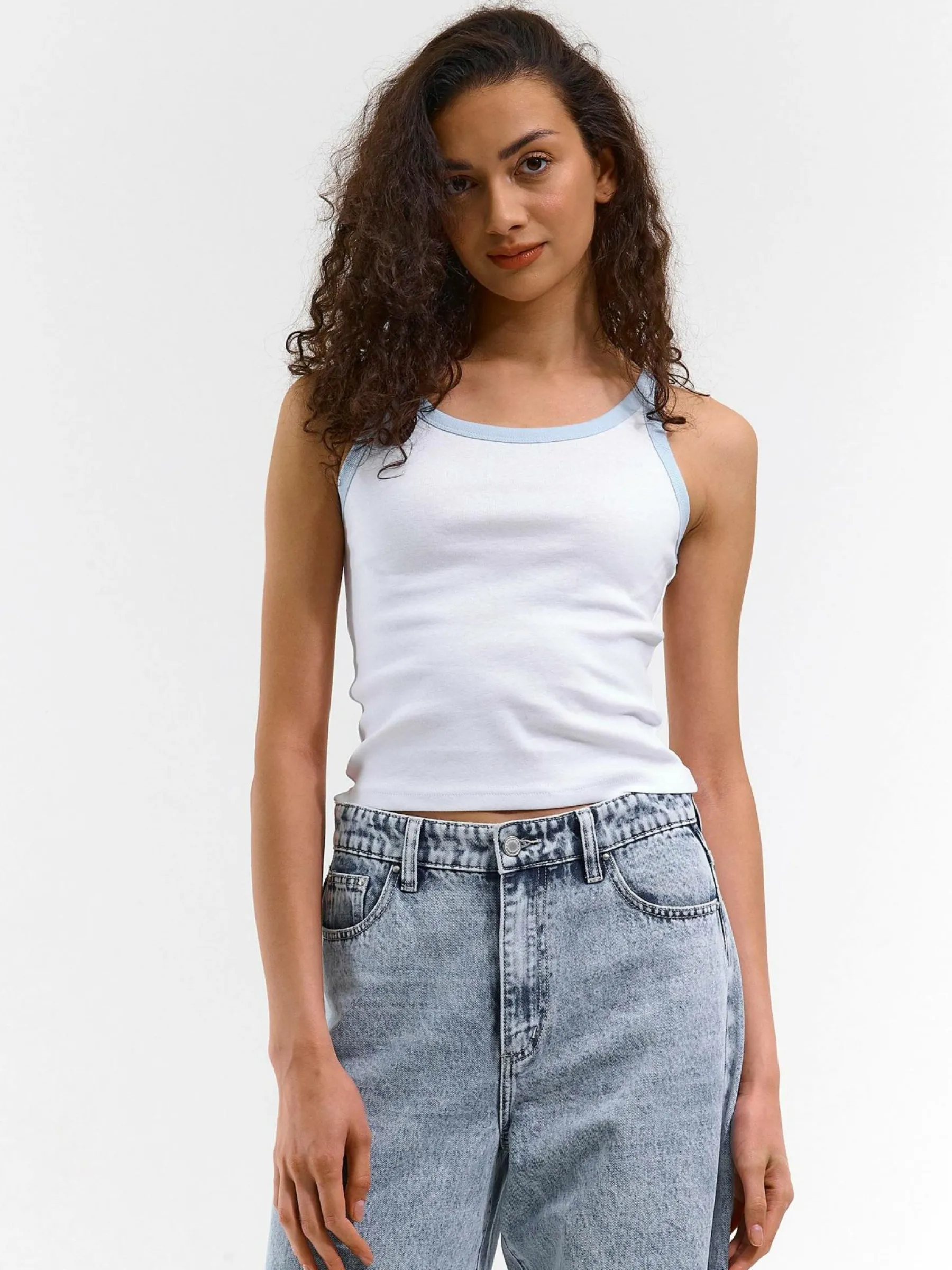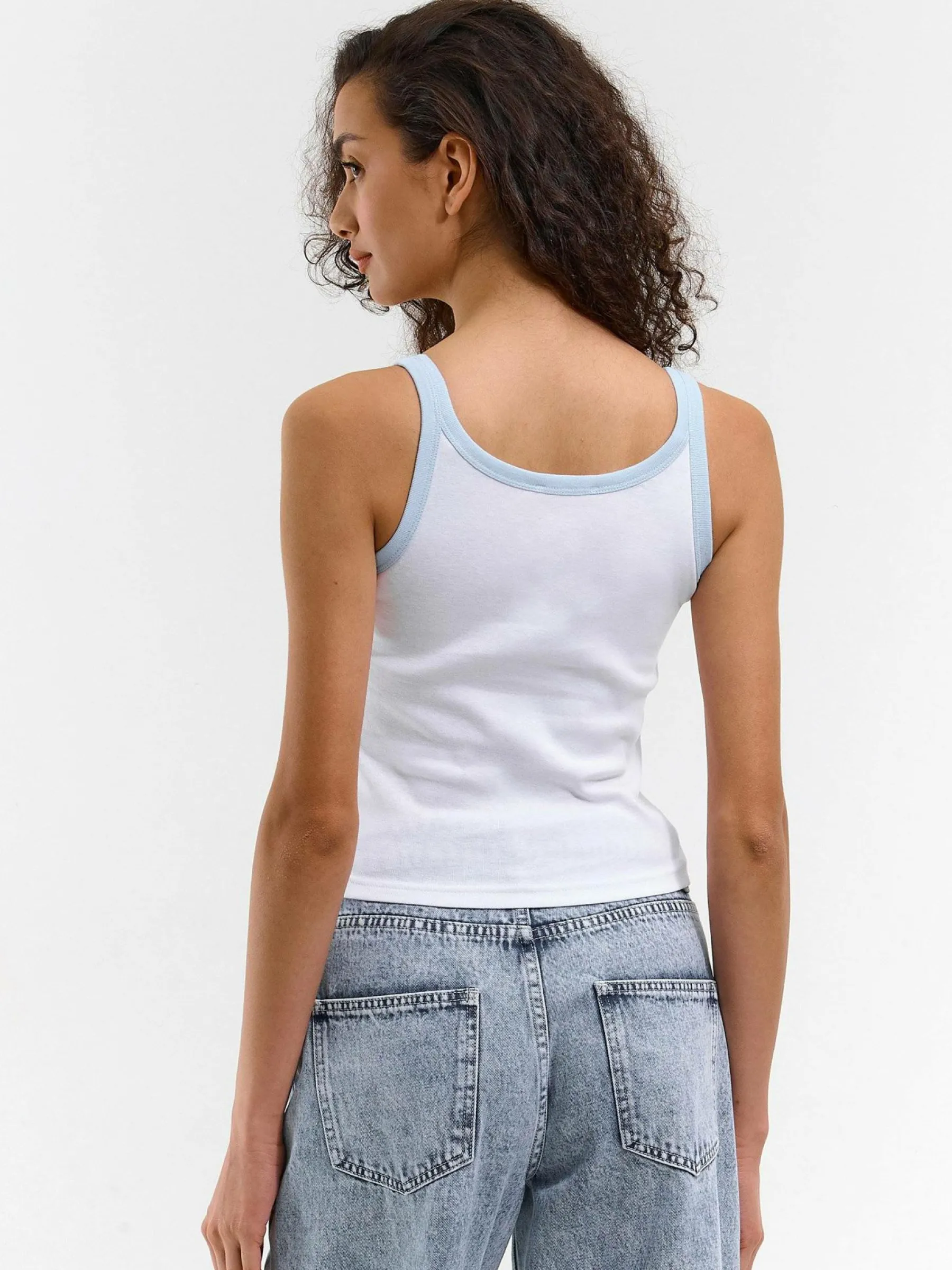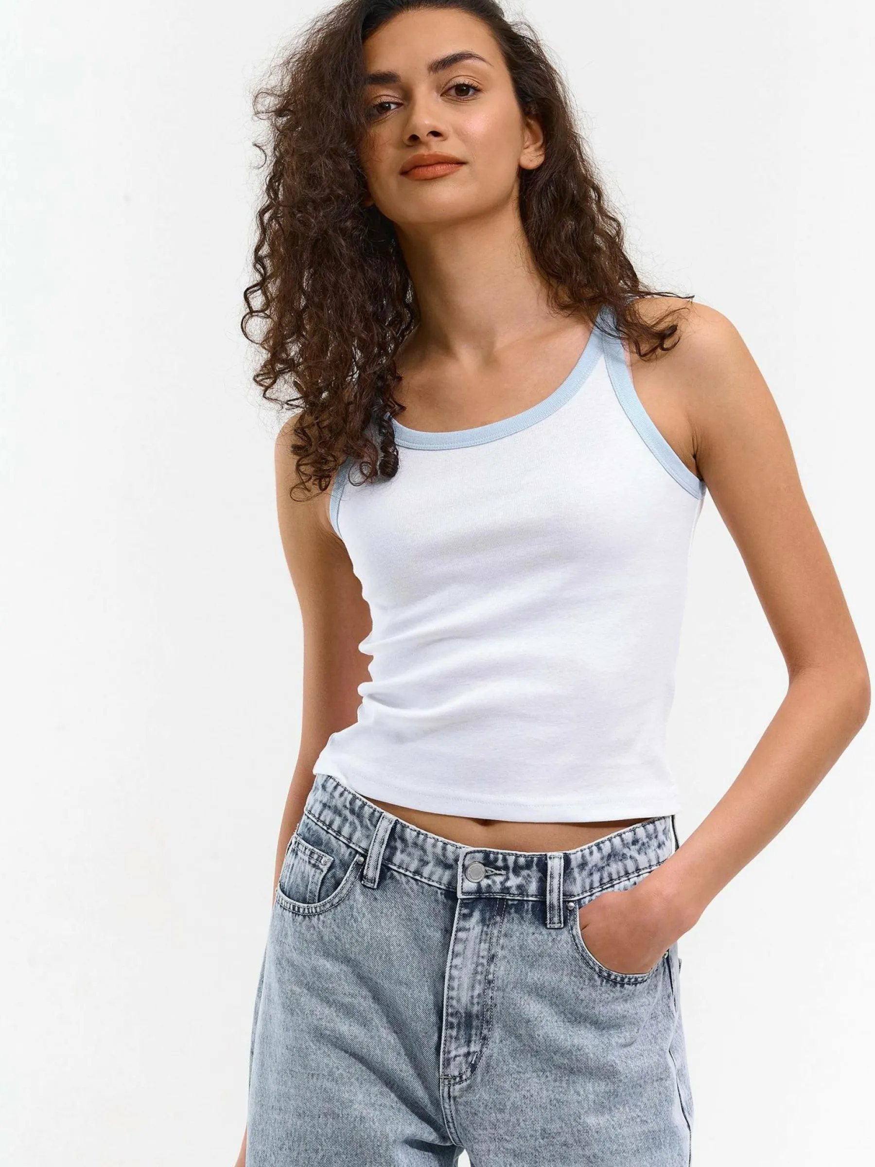 Kolor: białyKrój: regularTyp: podkoszulekRekaw: bez rękawówDługość: krótkiPattern style: pojedynczy kolor, żebr…