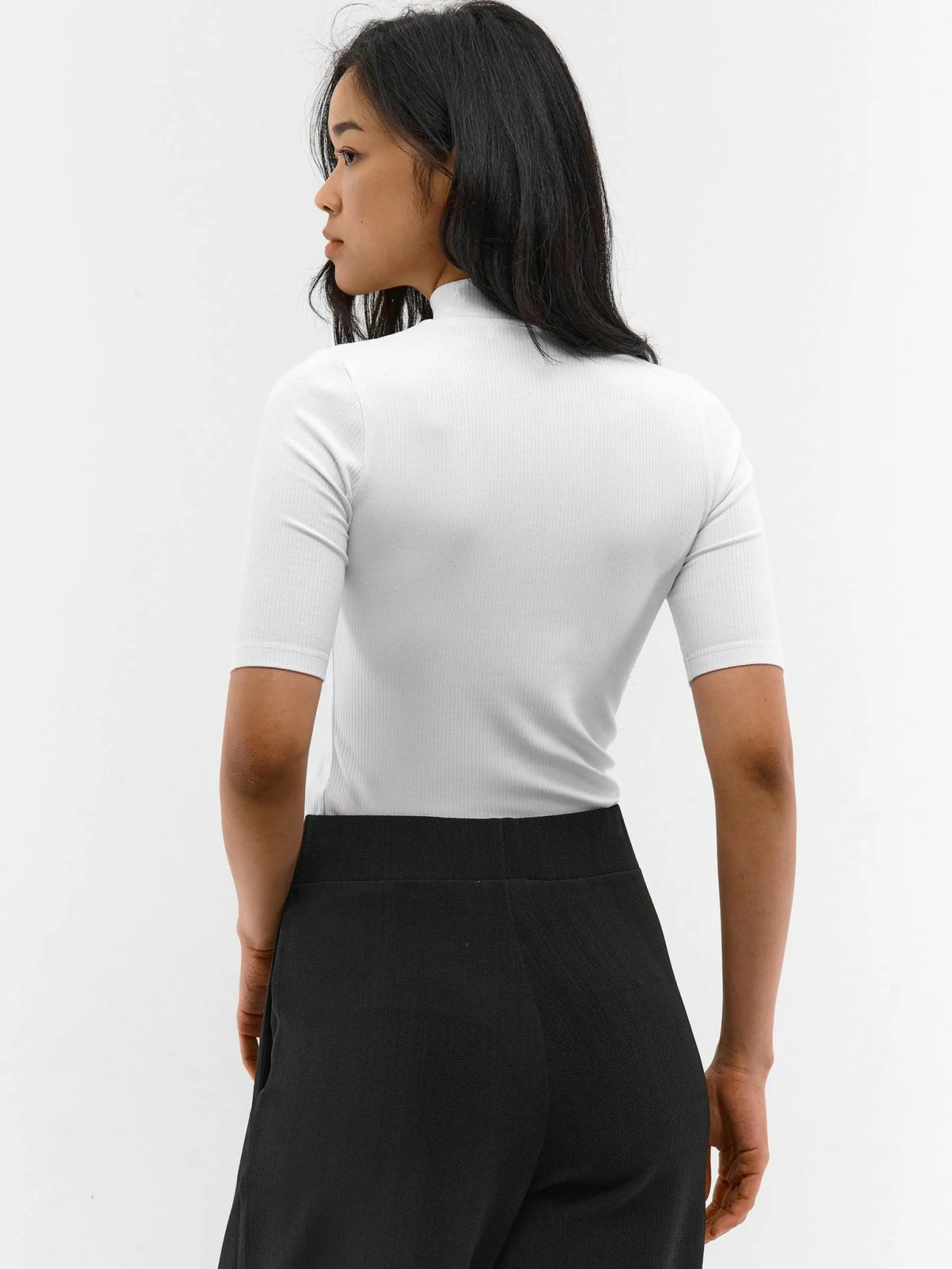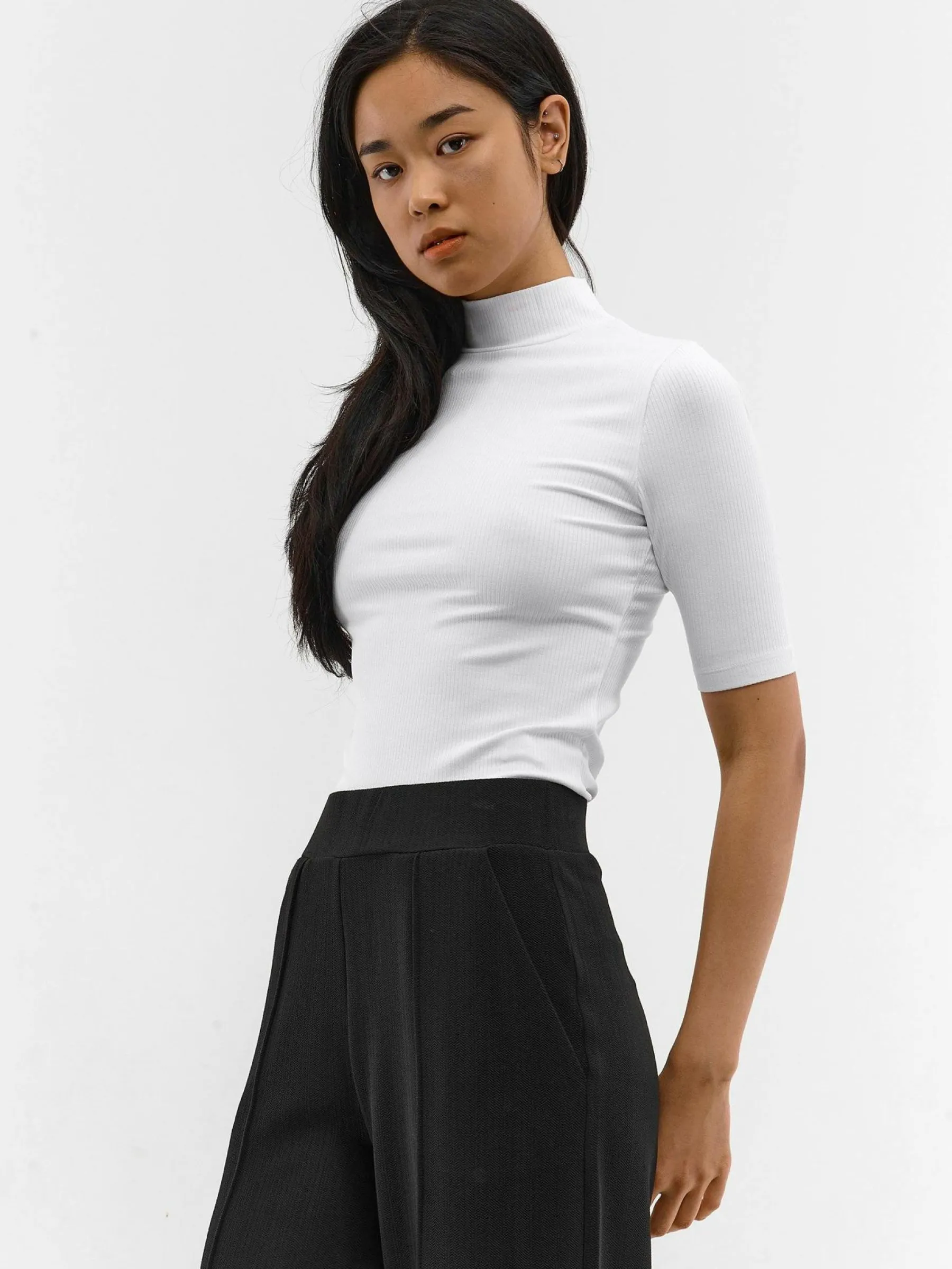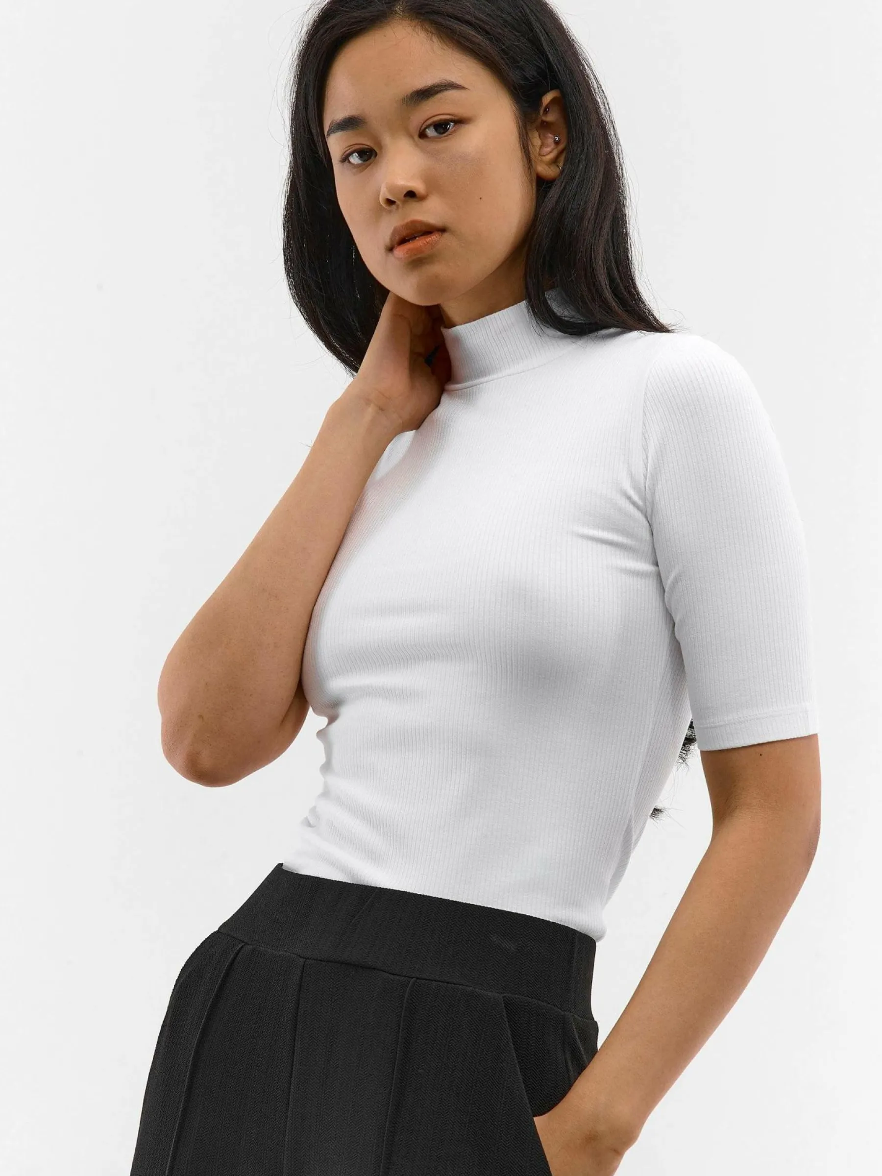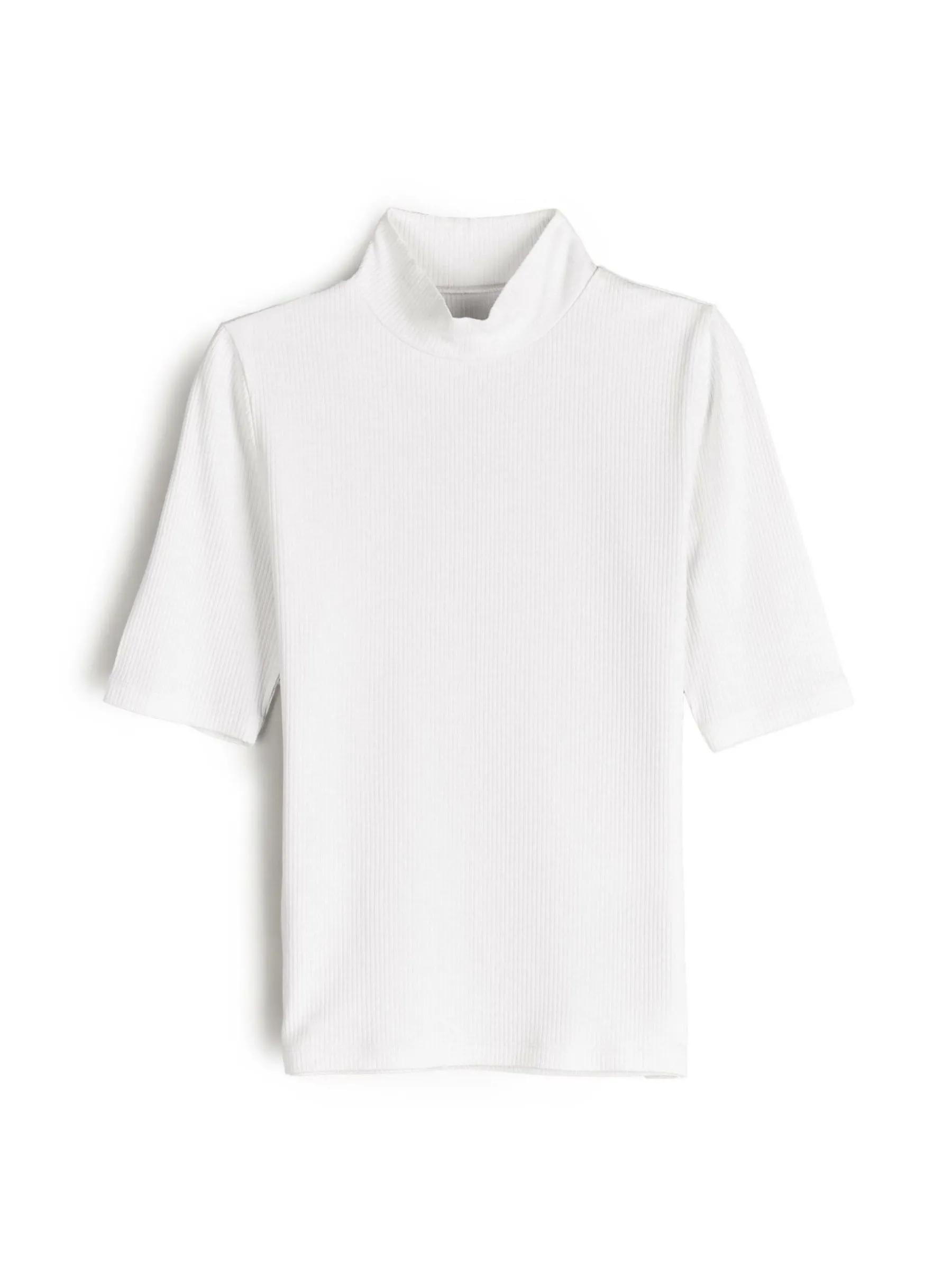 Kolor: białyKrój: regularTyp: golf, topRekaw: rękaw 3/4Długość: krótkiPattern style: żebrowany, pojedynczy kolor…