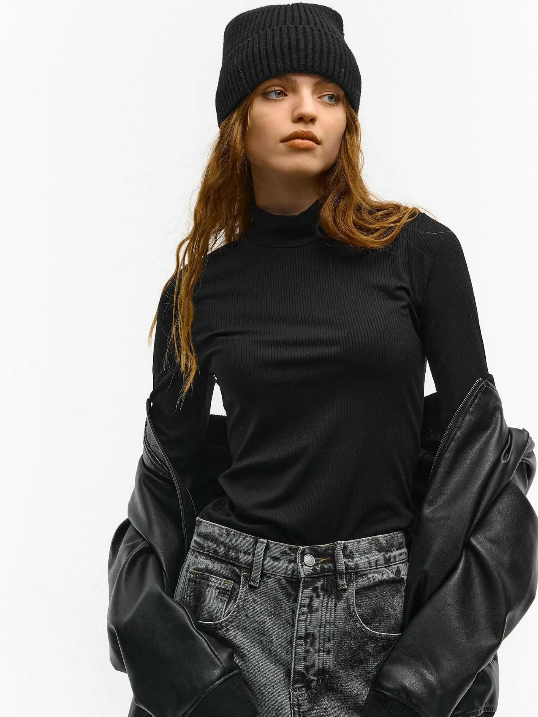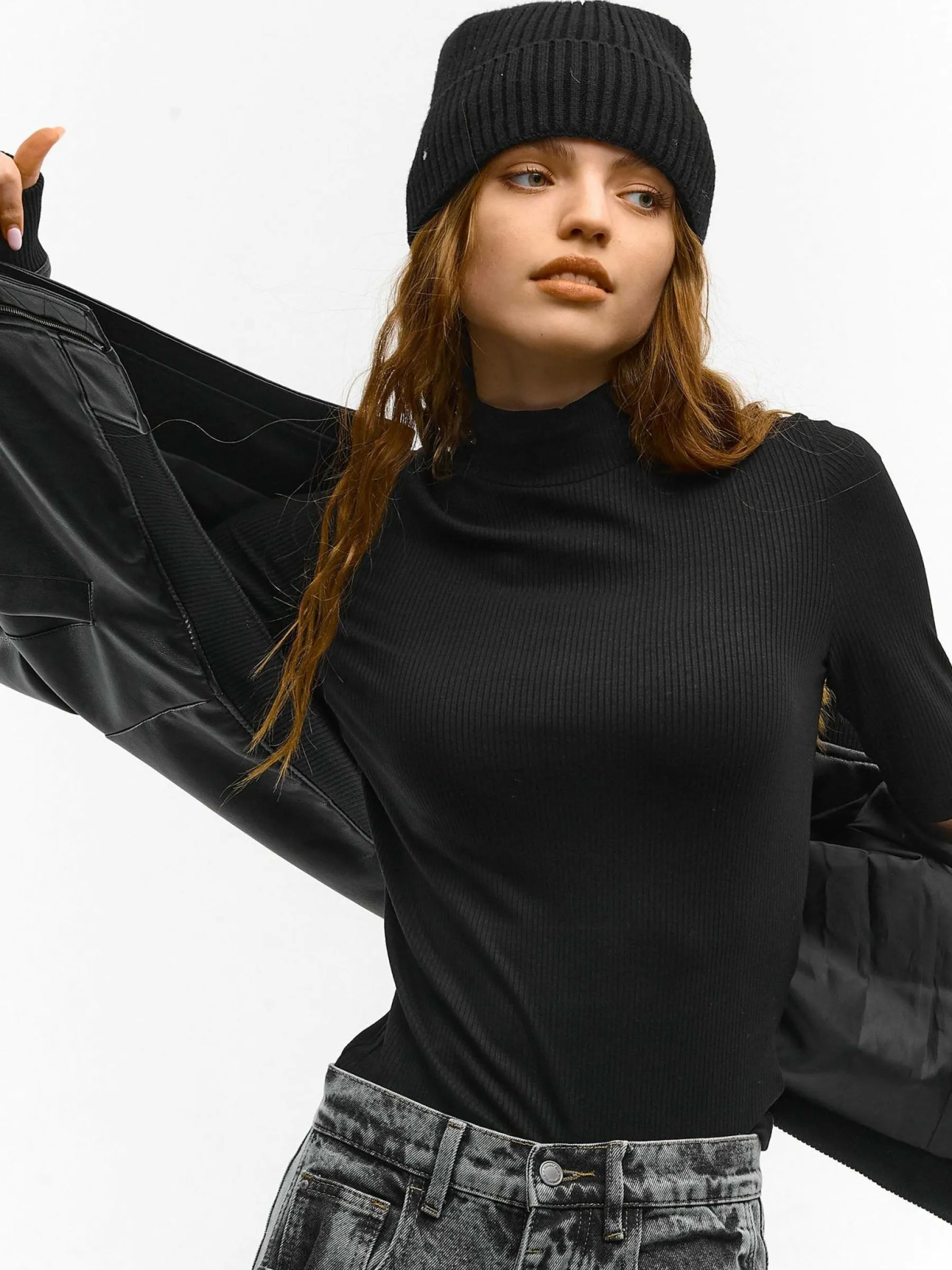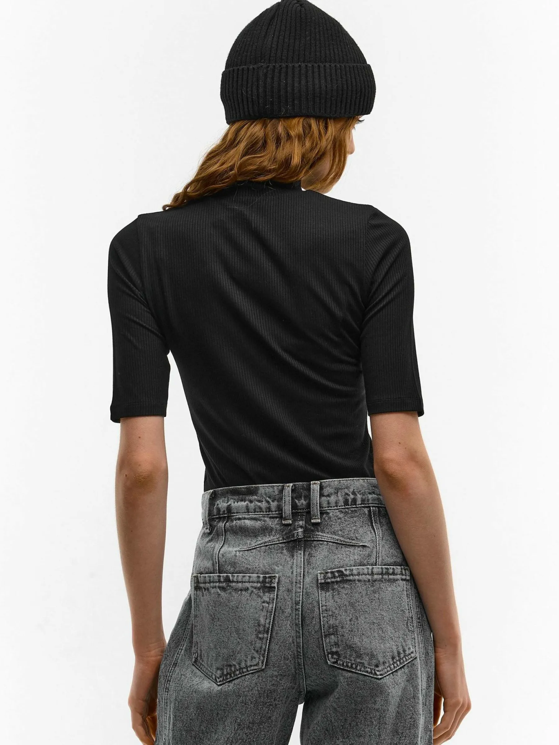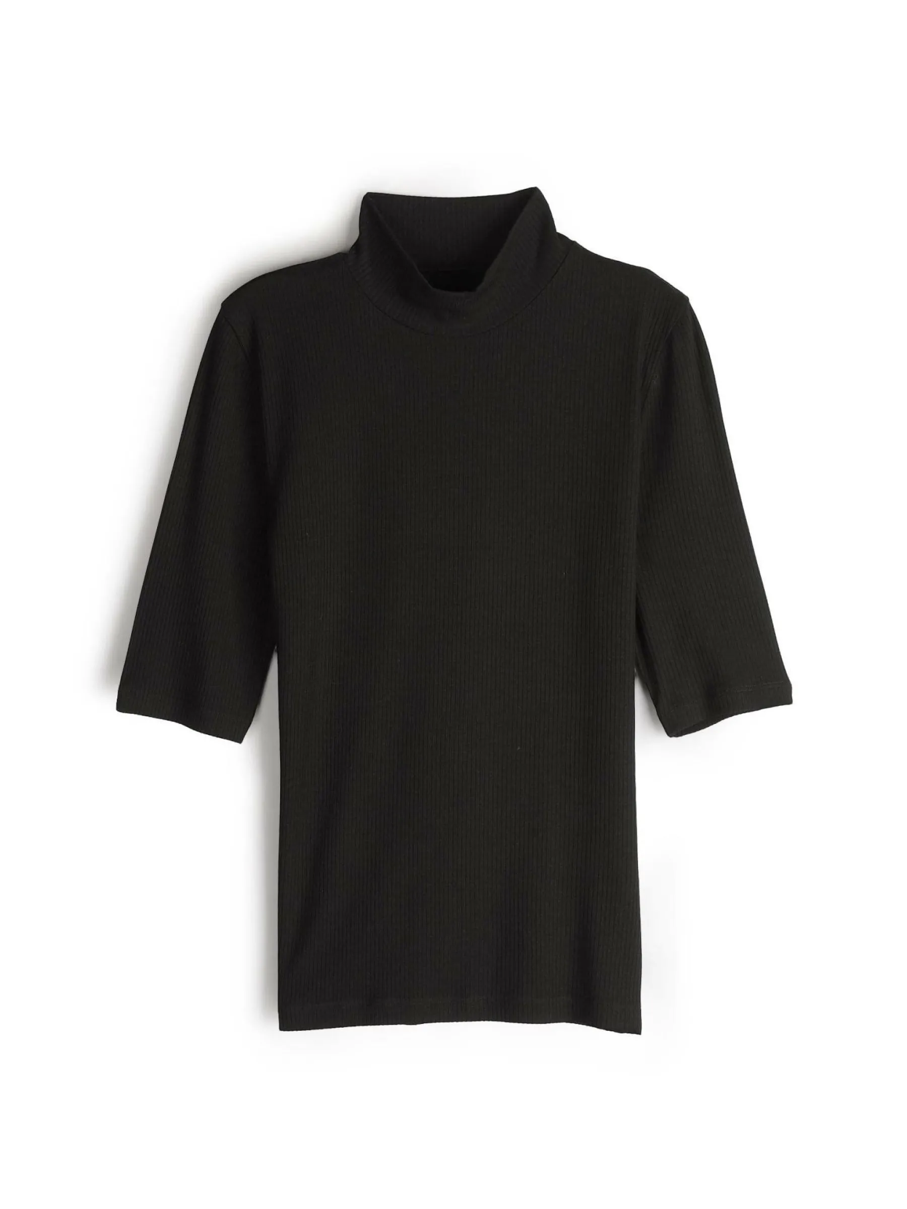 Kolor: czarnyKrój: regularTyp: top, golfRekaw: rękaw 3/4Długość: krótkiPattern style: pojedynczy kolor, żebrowany…