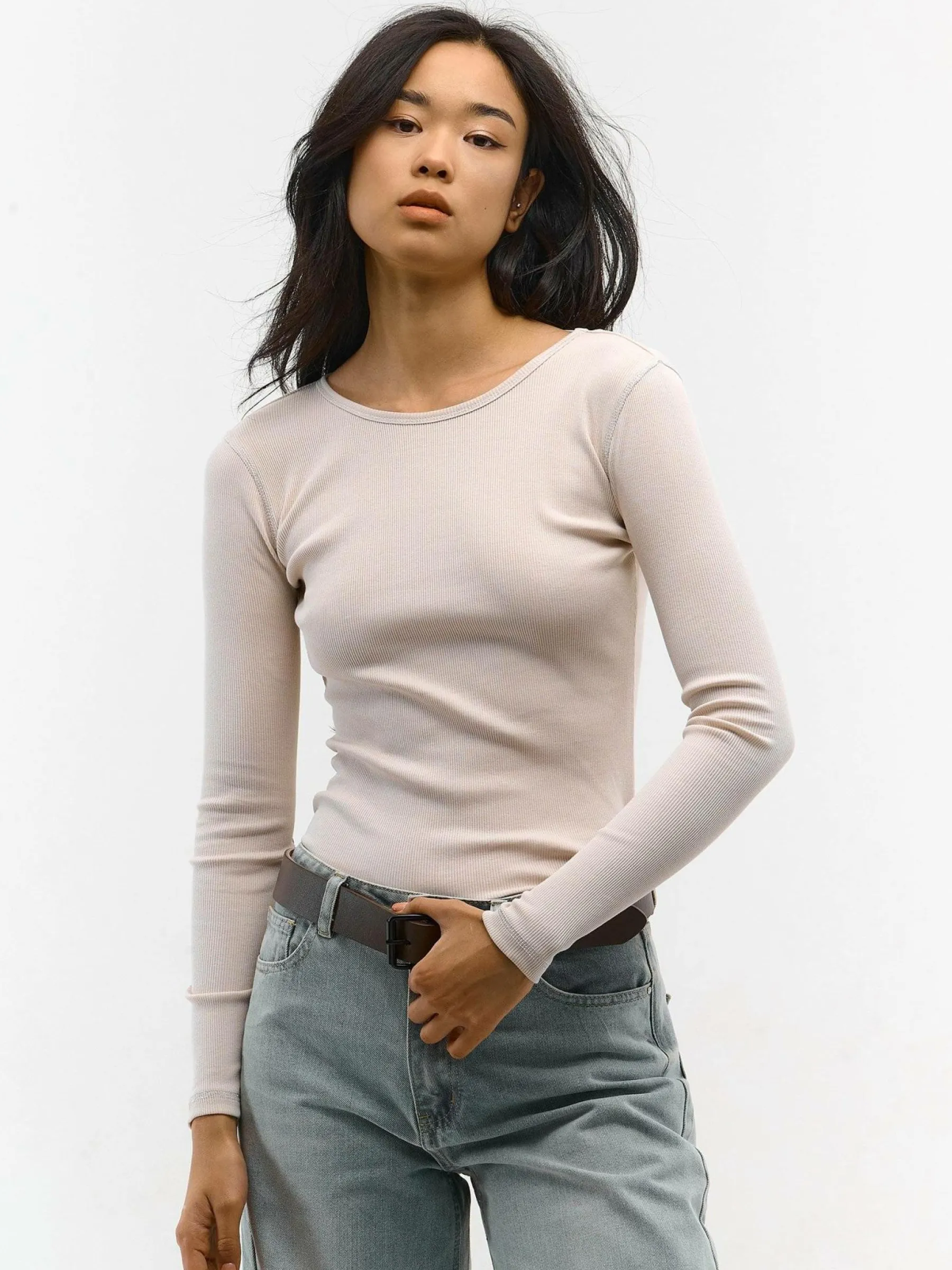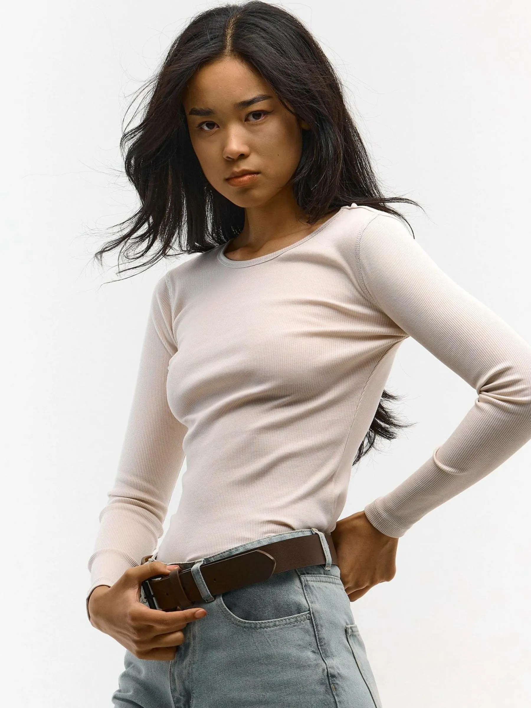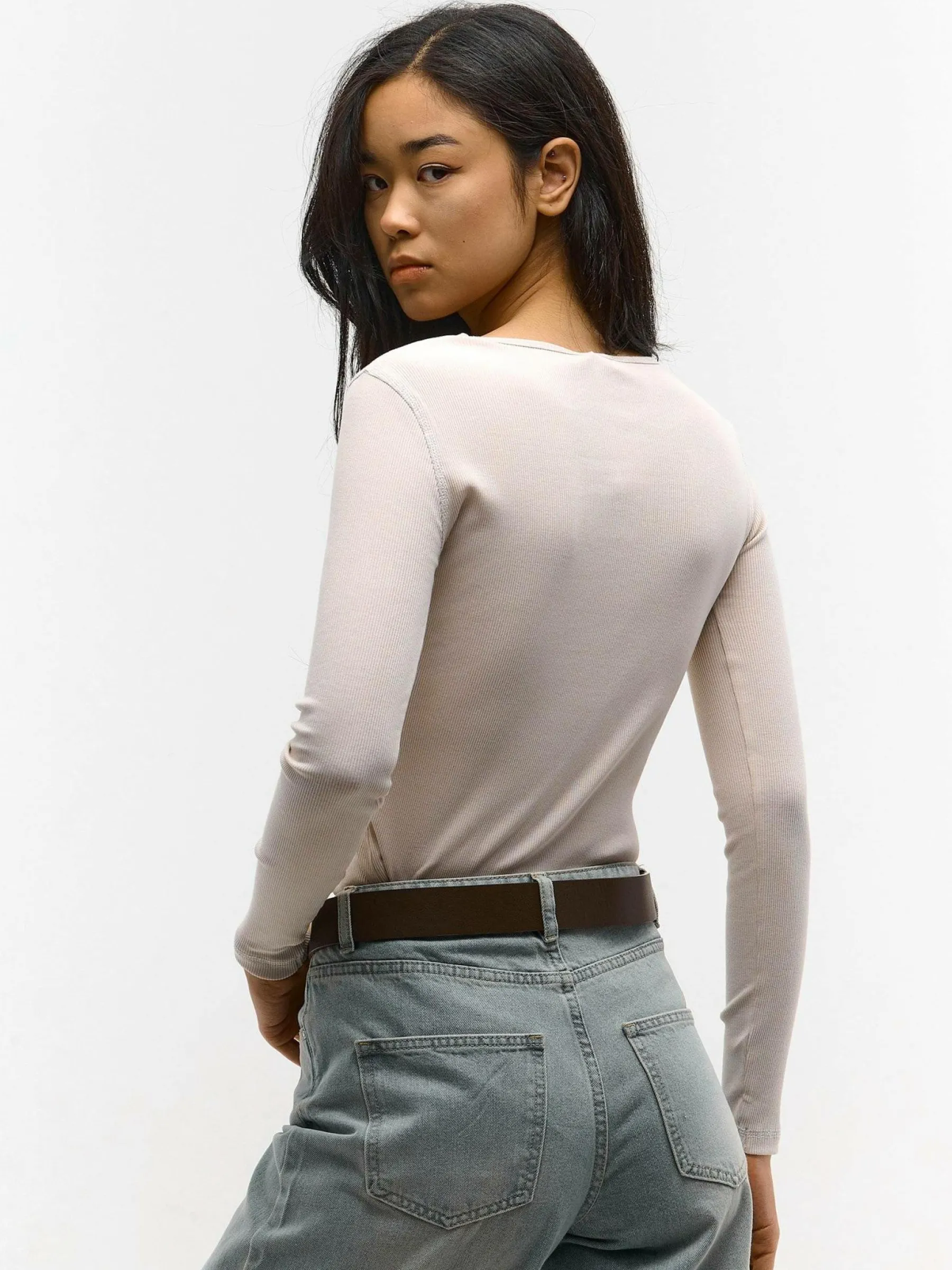 Kolor: białyKrój: regularTyp: topRekaw: długi rękawDługość: krótkiPattern style: pojedynczy kolor, żebrowany, z…