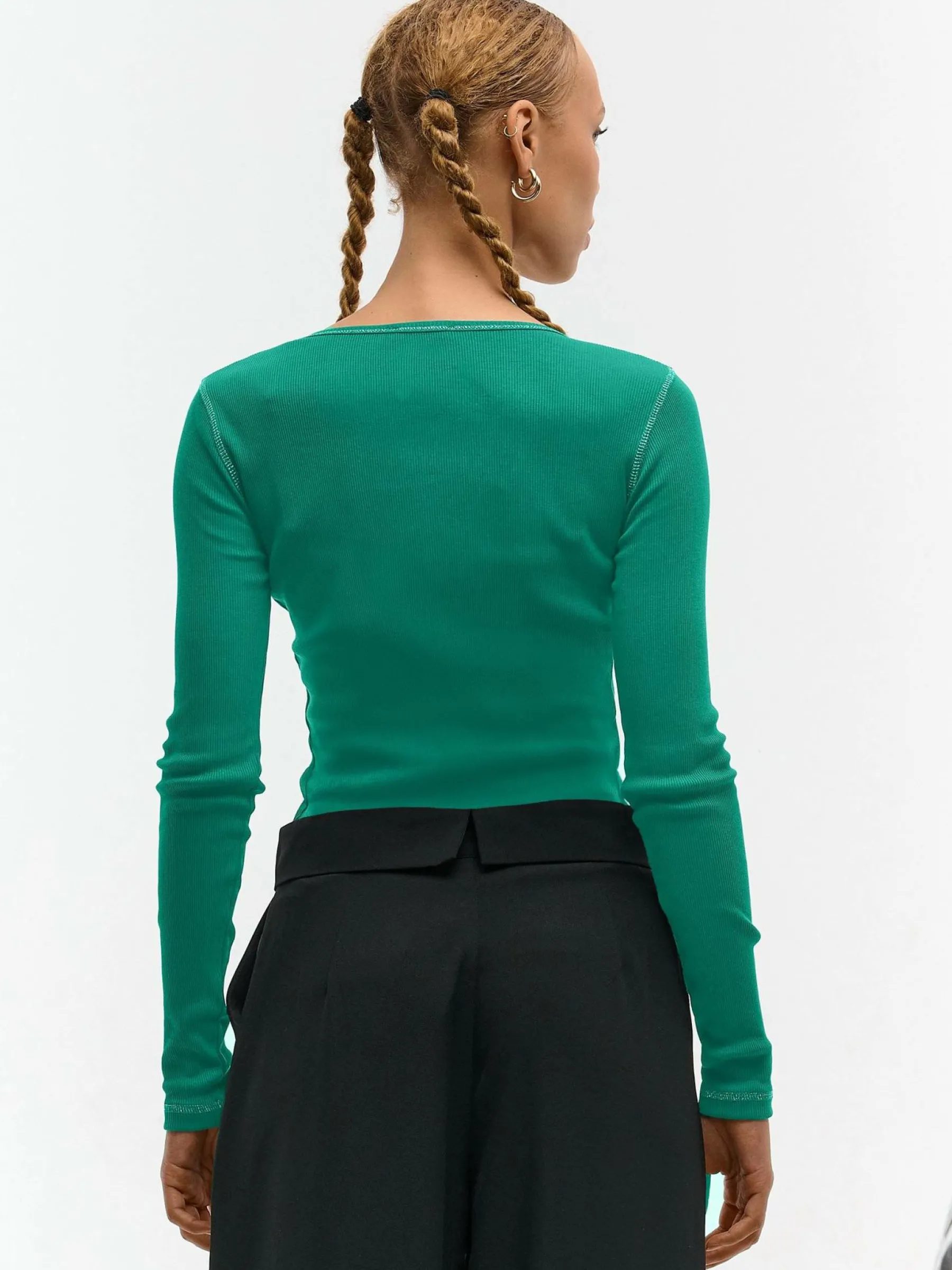 Kolor: zielonyKrój: podstawowyTyp: topRekaw: długi rękawDługość: krótkiPattern style: z włóknem metalicznym, ż…