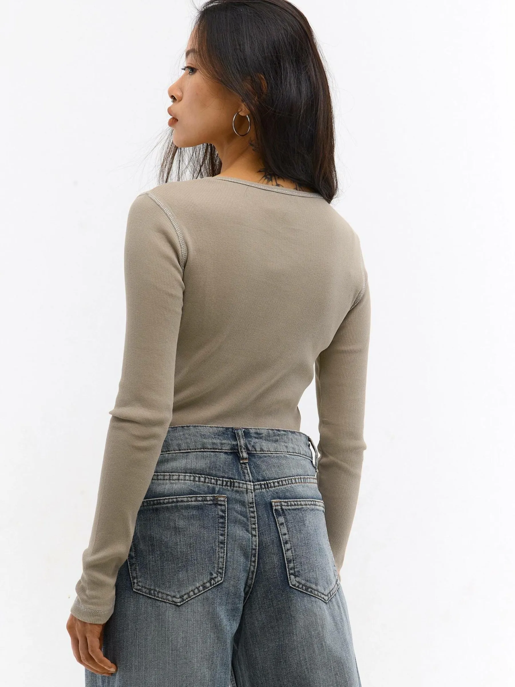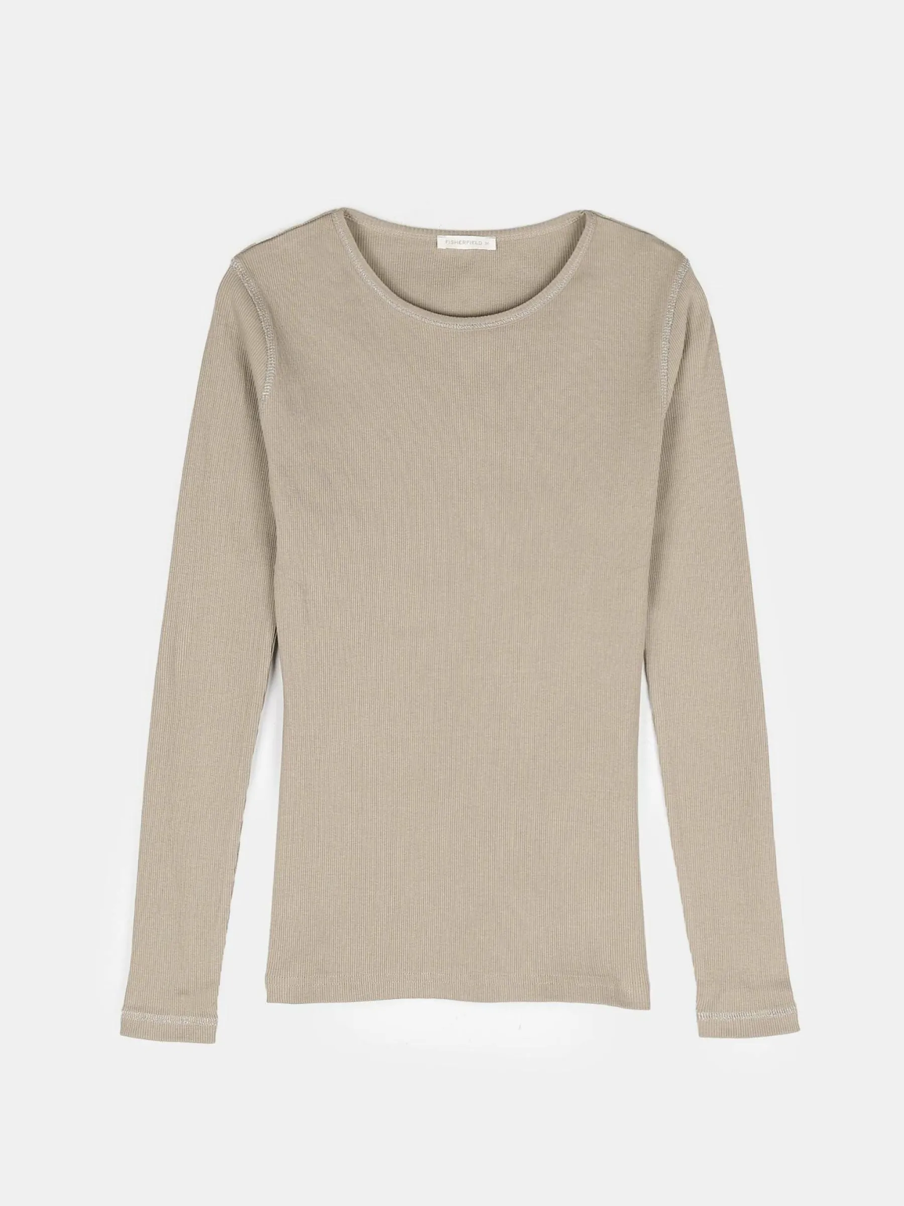 Kolor: beżowyKrój: podstawowyTyp: topRekaw: długi rękawDługość: krótkiPattern style: pojedynczy kolor, żebrowan…