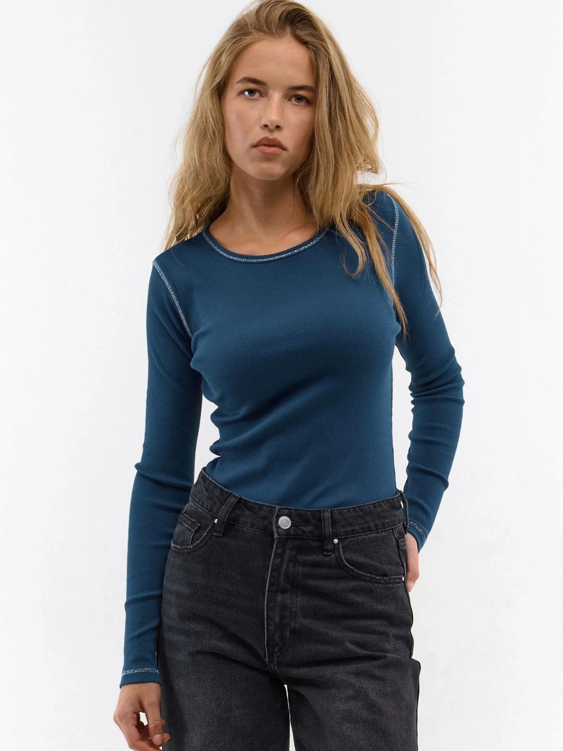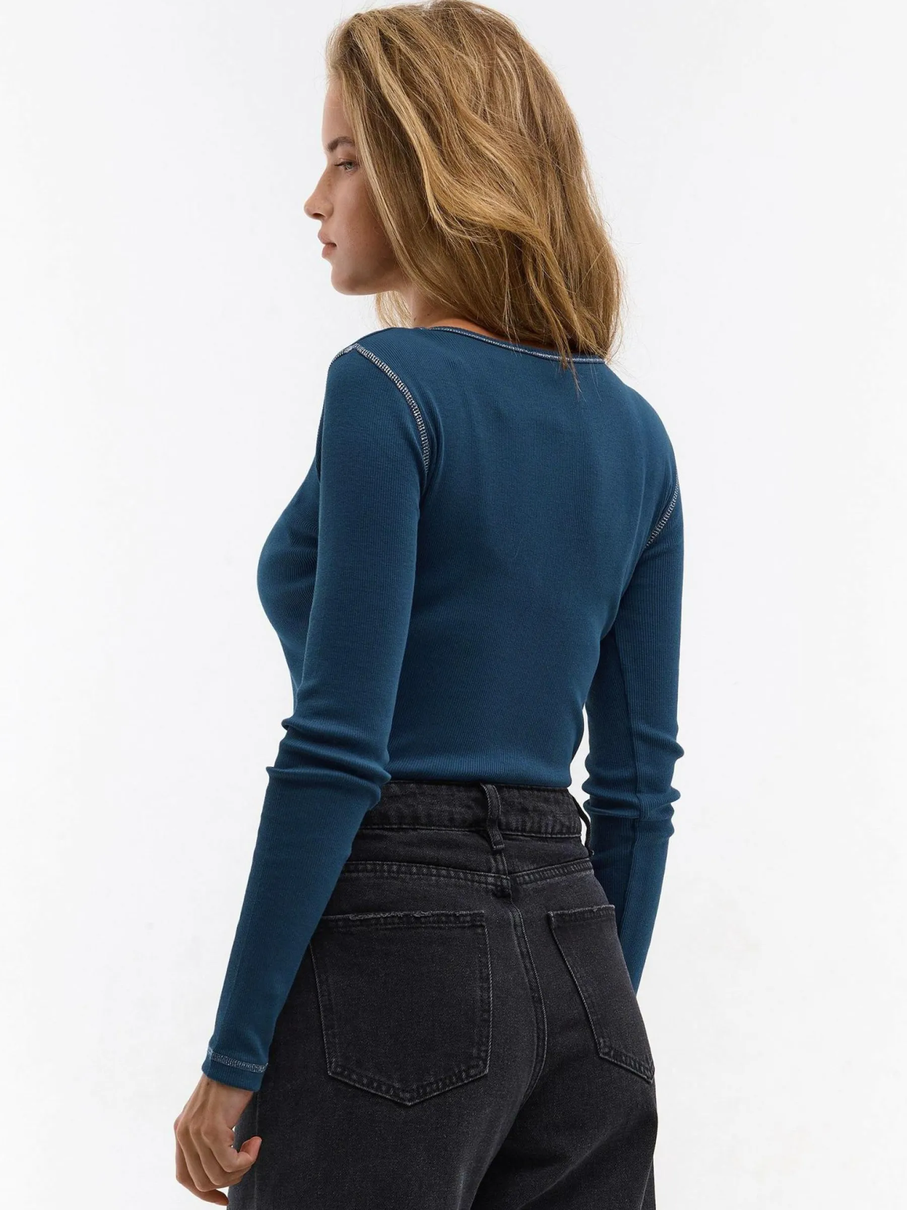 Kolor: granatowy, niebieskiKrój: podstawowyTyp: topRekaw: długi rękawDługość: krótkiPattern style: pojedynczy kol…
