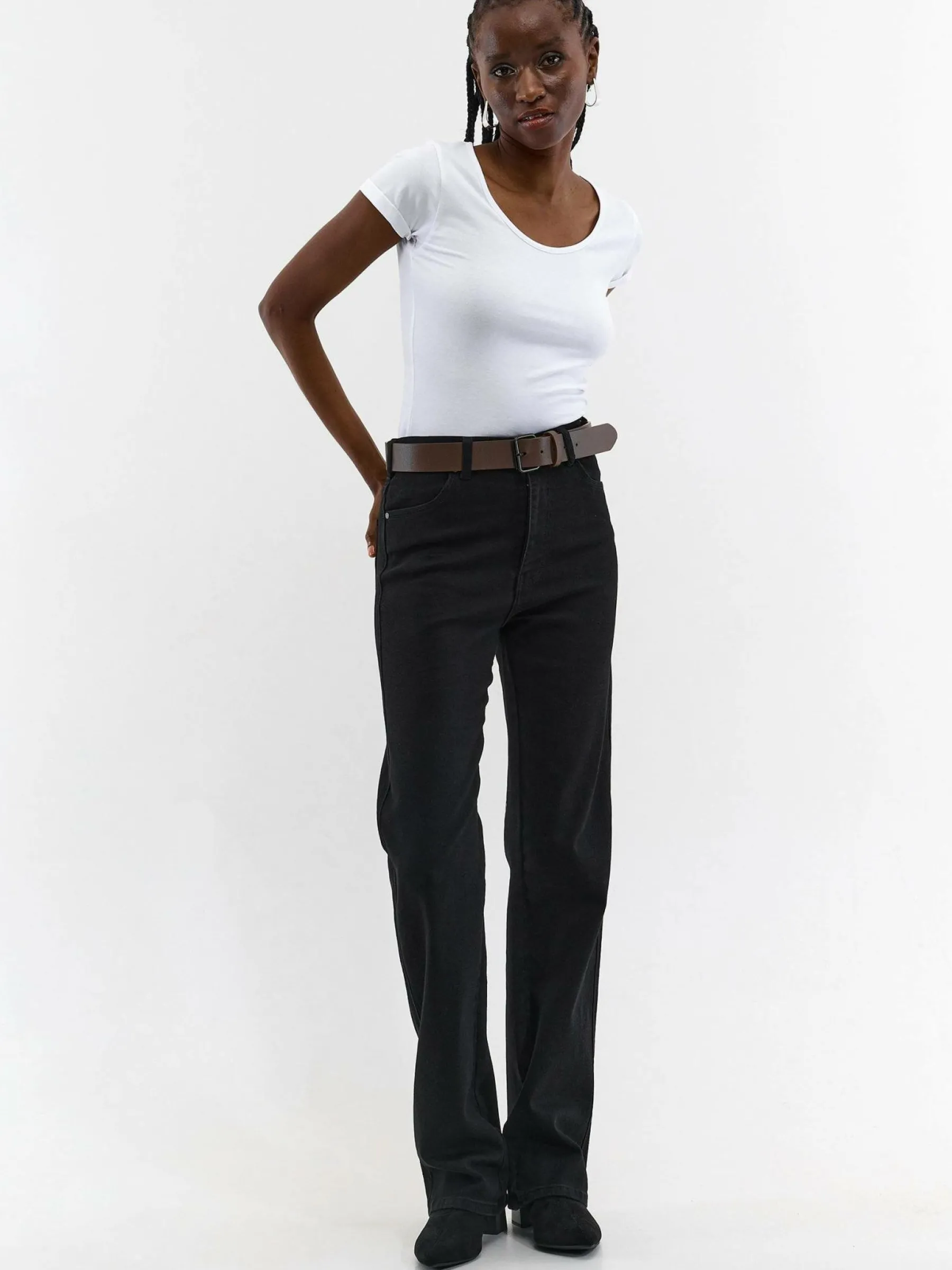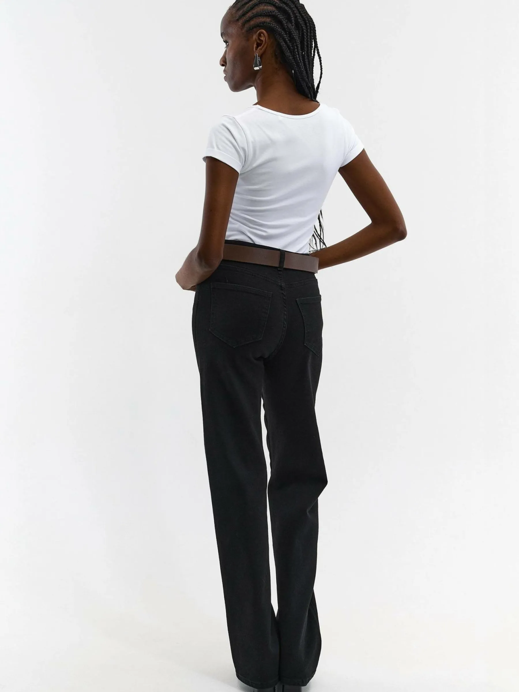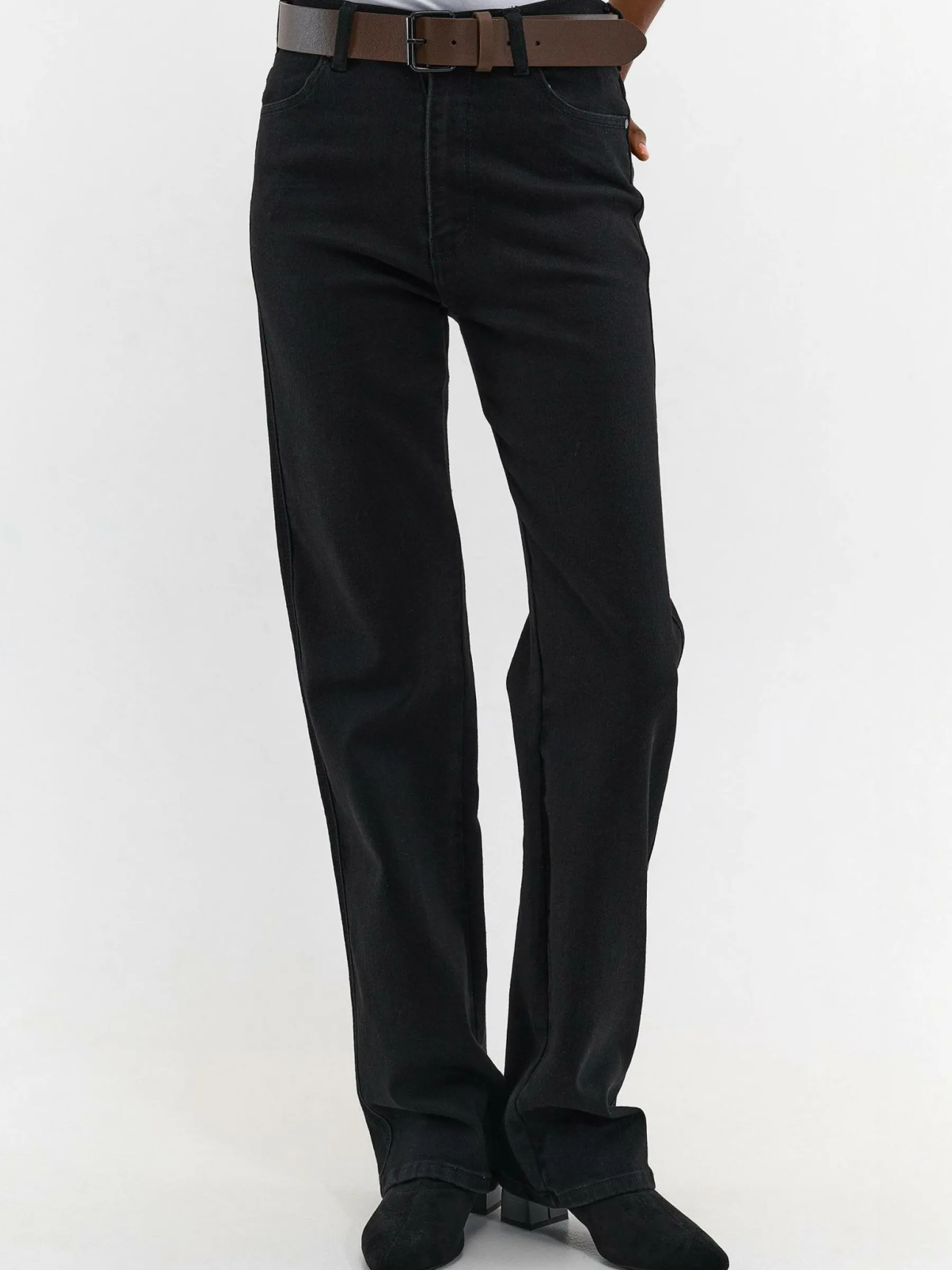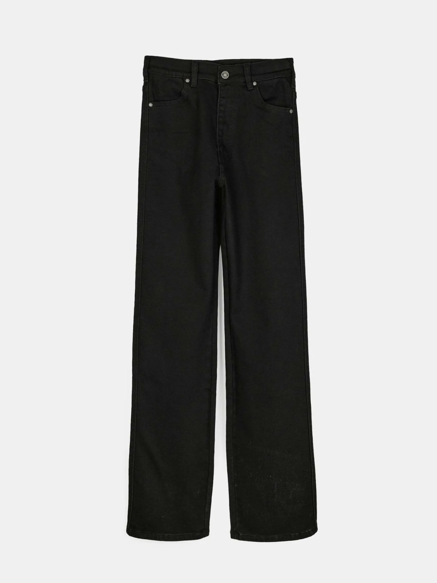 Kolor: czarnyKrój: straightTyp: jeansDługość: dlugiePattern style: pojedynczy kolorDetal: na zamekMateriał: dżinso…