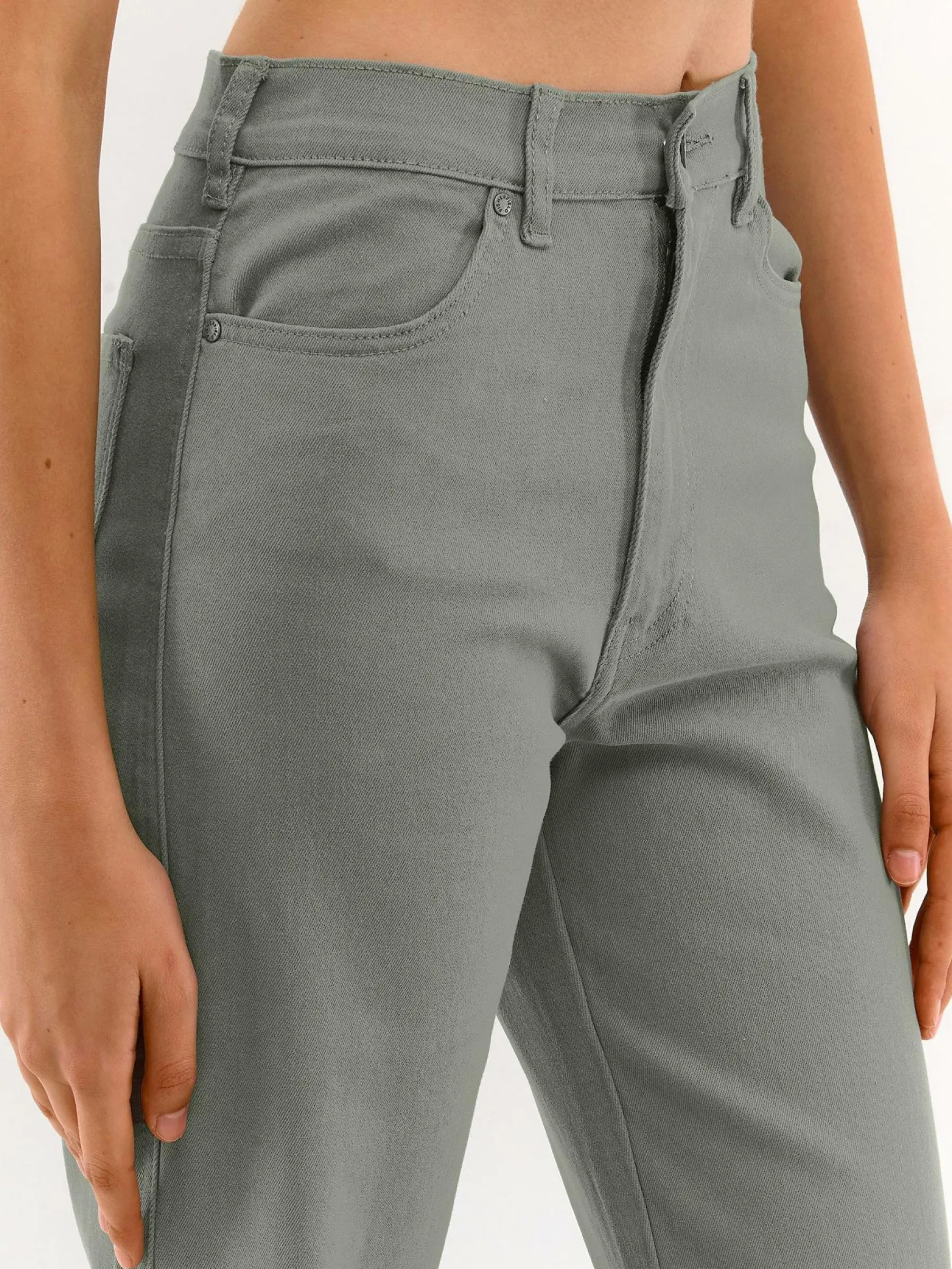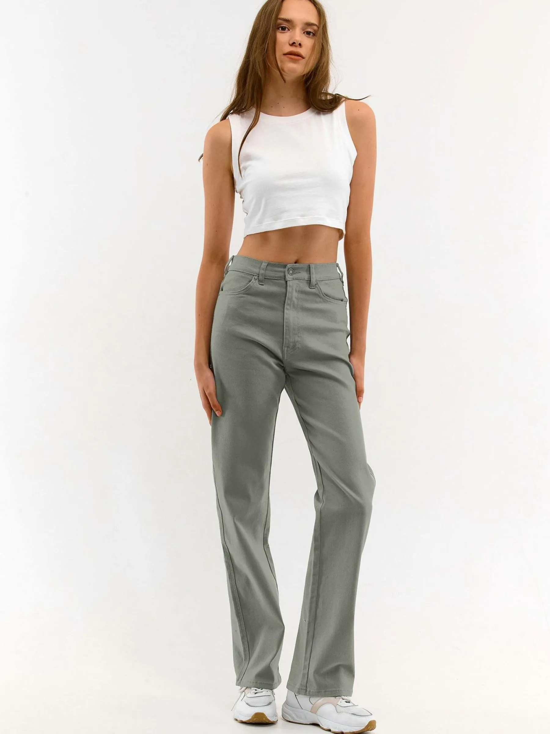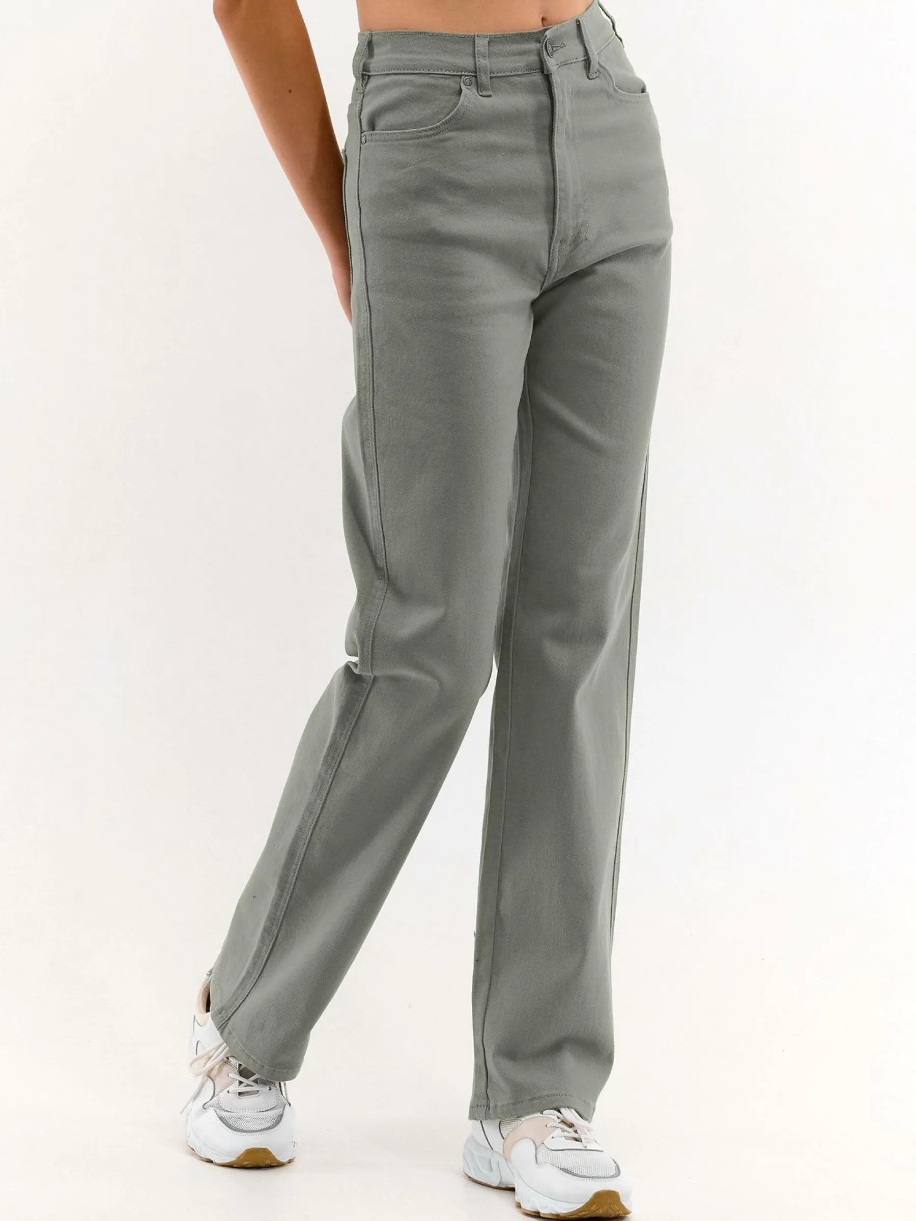 Kolor: szaryKrój: straightTyp: jeansDługość: dlugiePattern style: pojedynczy kolorDetal: na zamek, z kieszeniamiMate…