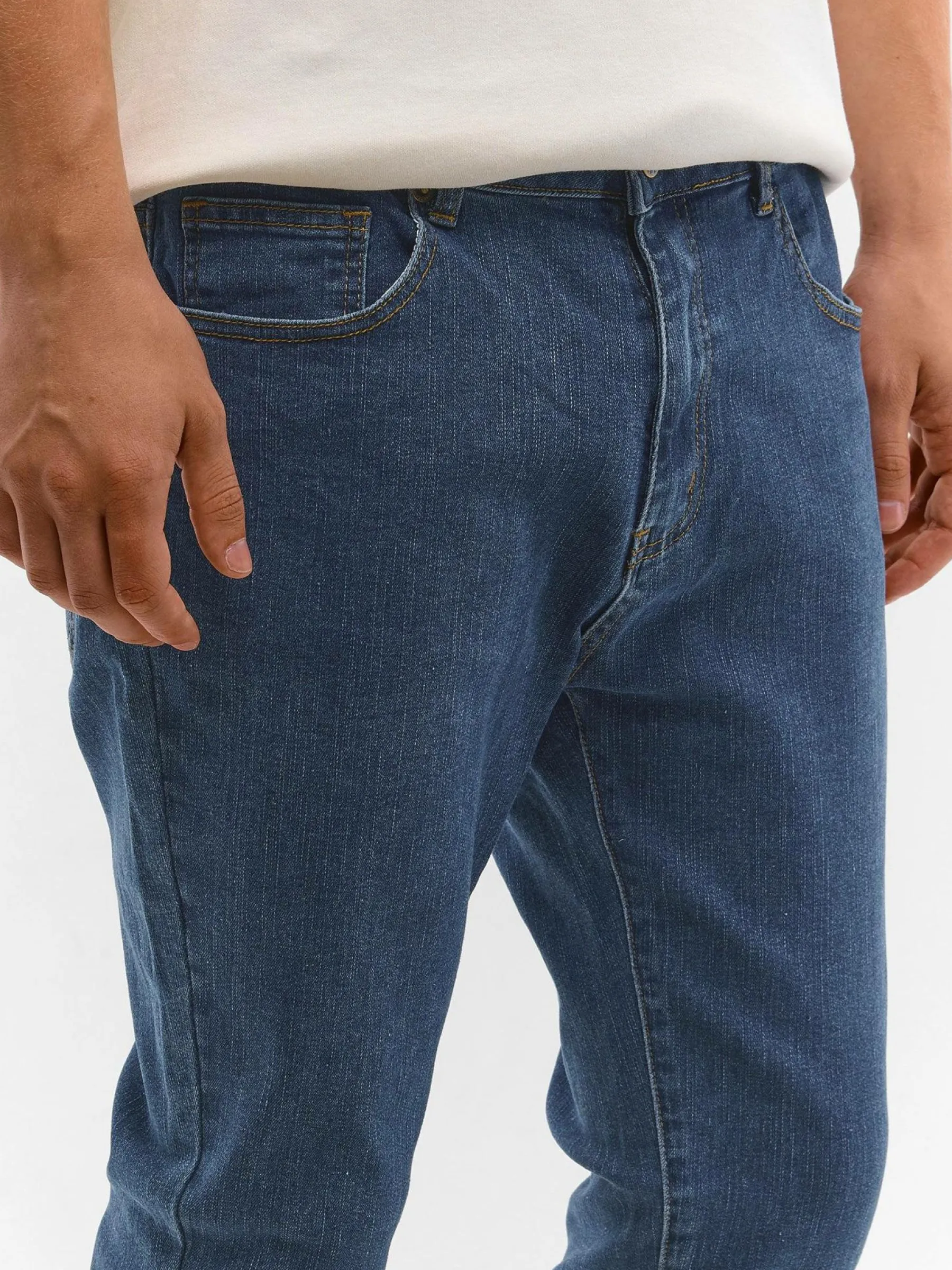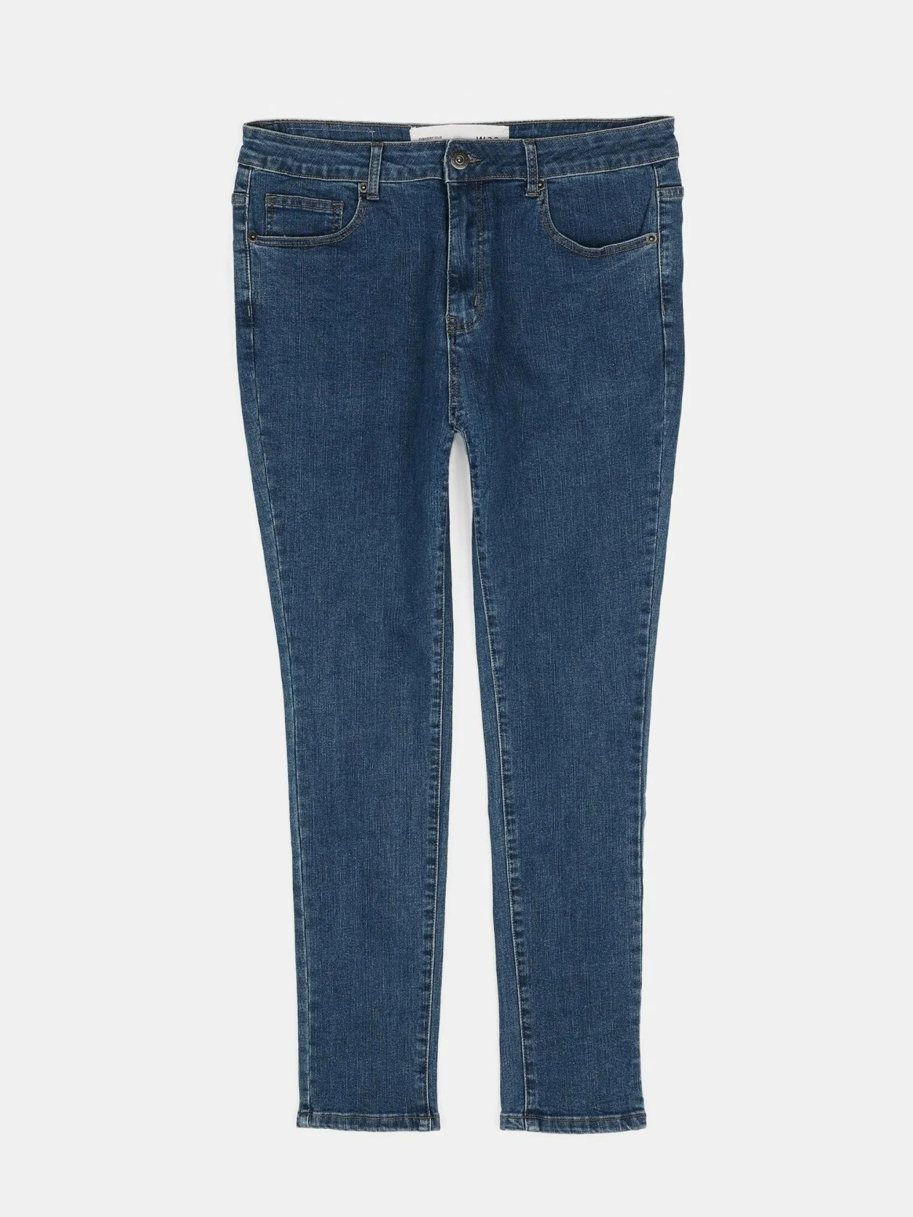 Kolor: niebieskiKrój: prosty slimTyp: jeansDługość: dlugiePattern style: pojedynczy kolorDetal: na zamekMateriał: d…