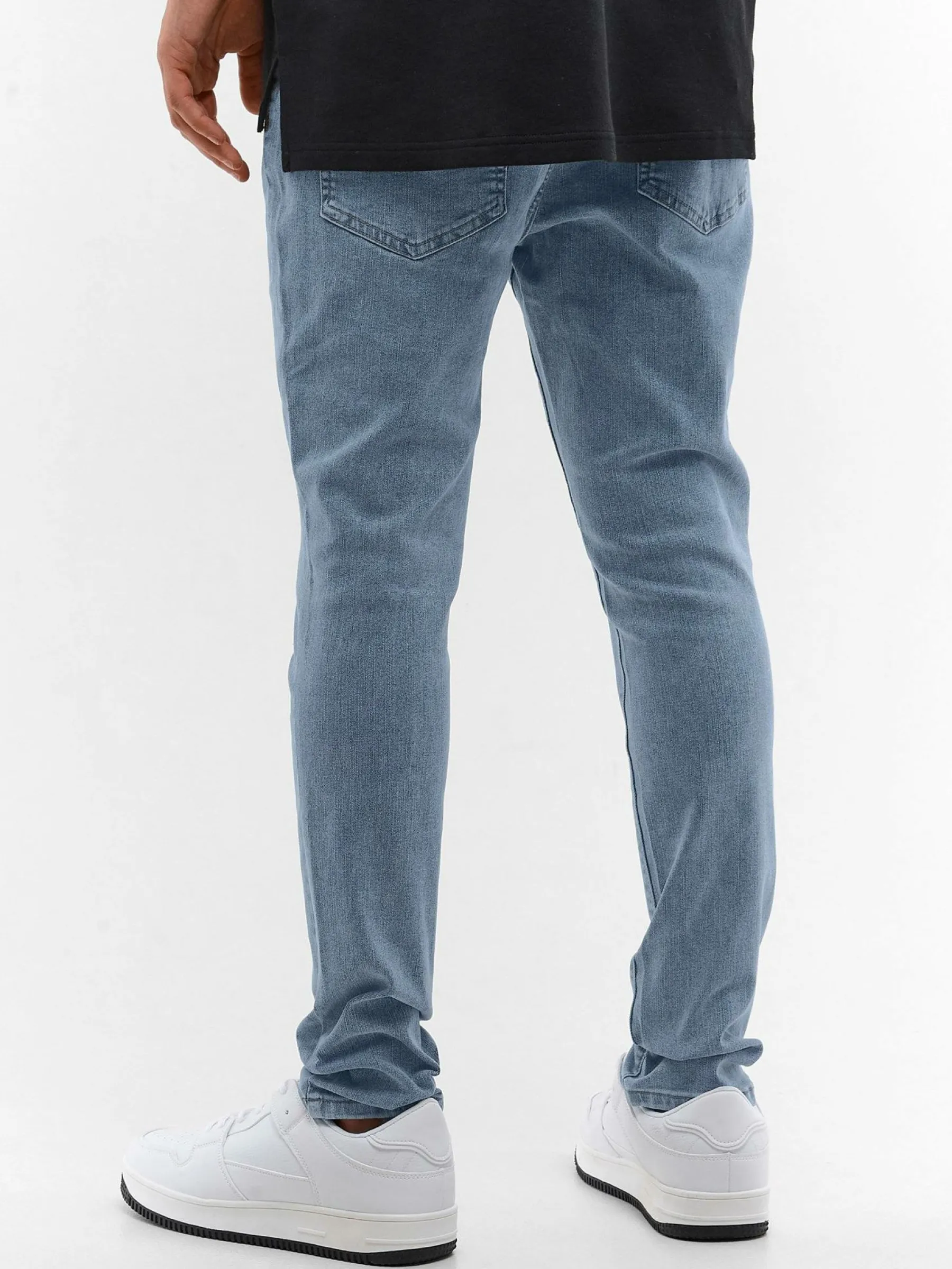 Kolor: niebieskiKrój: prosty slimTyp: jeansDługość: dlugiePattern style: pojedynczy kolorDetal: na zamekMateriał: d…