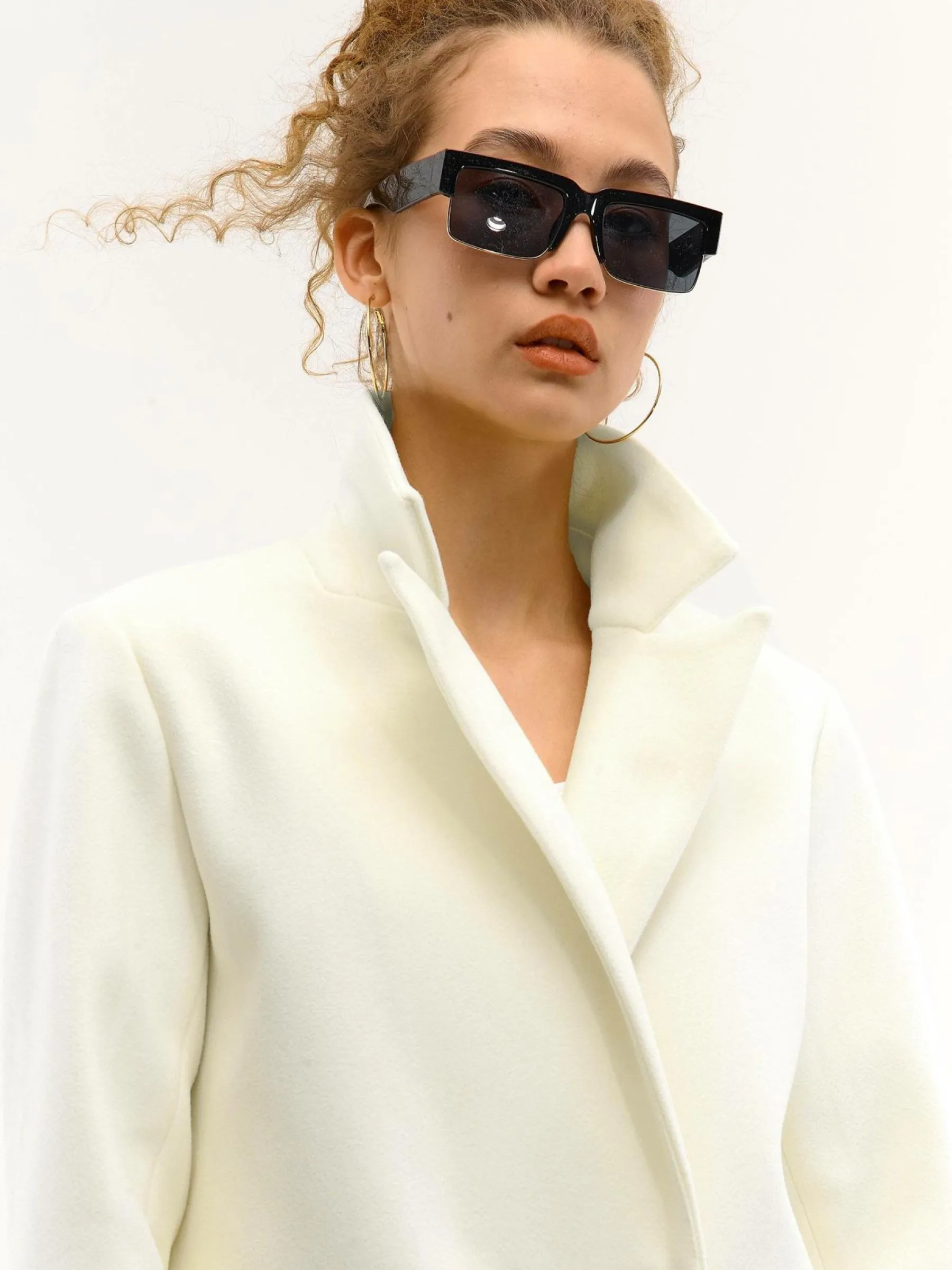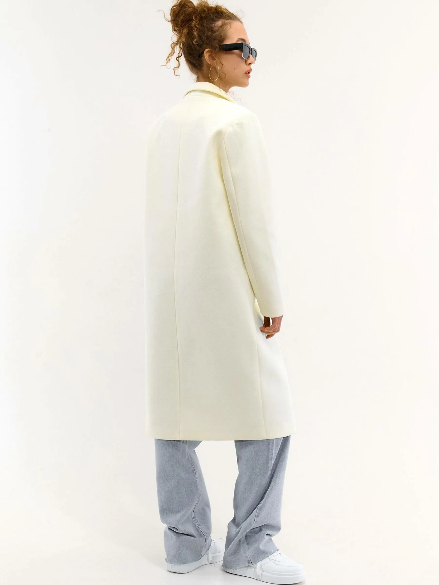 Kolor: białyKrój: regularTyp: płaszczRekaw: długi rękawDługość: dlugiePattern style: pojedynczy kolorDetal: na g…