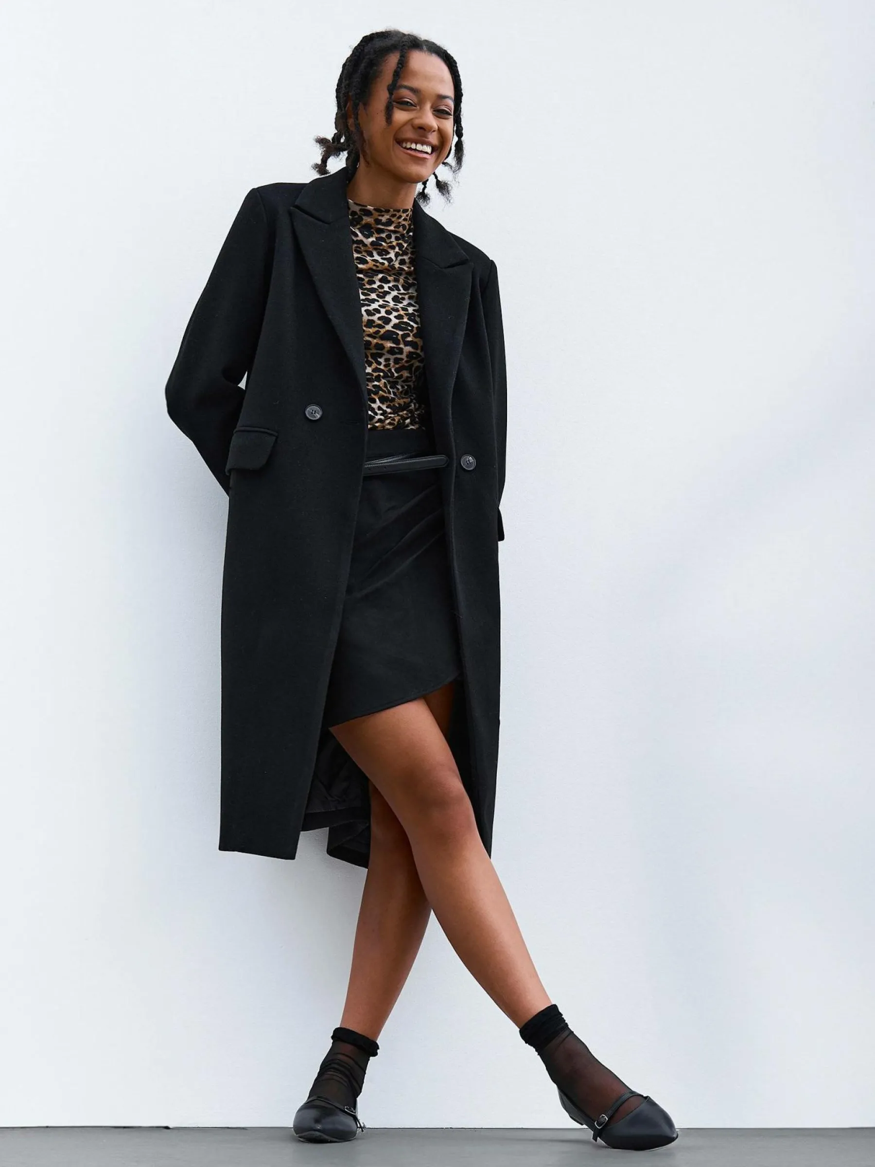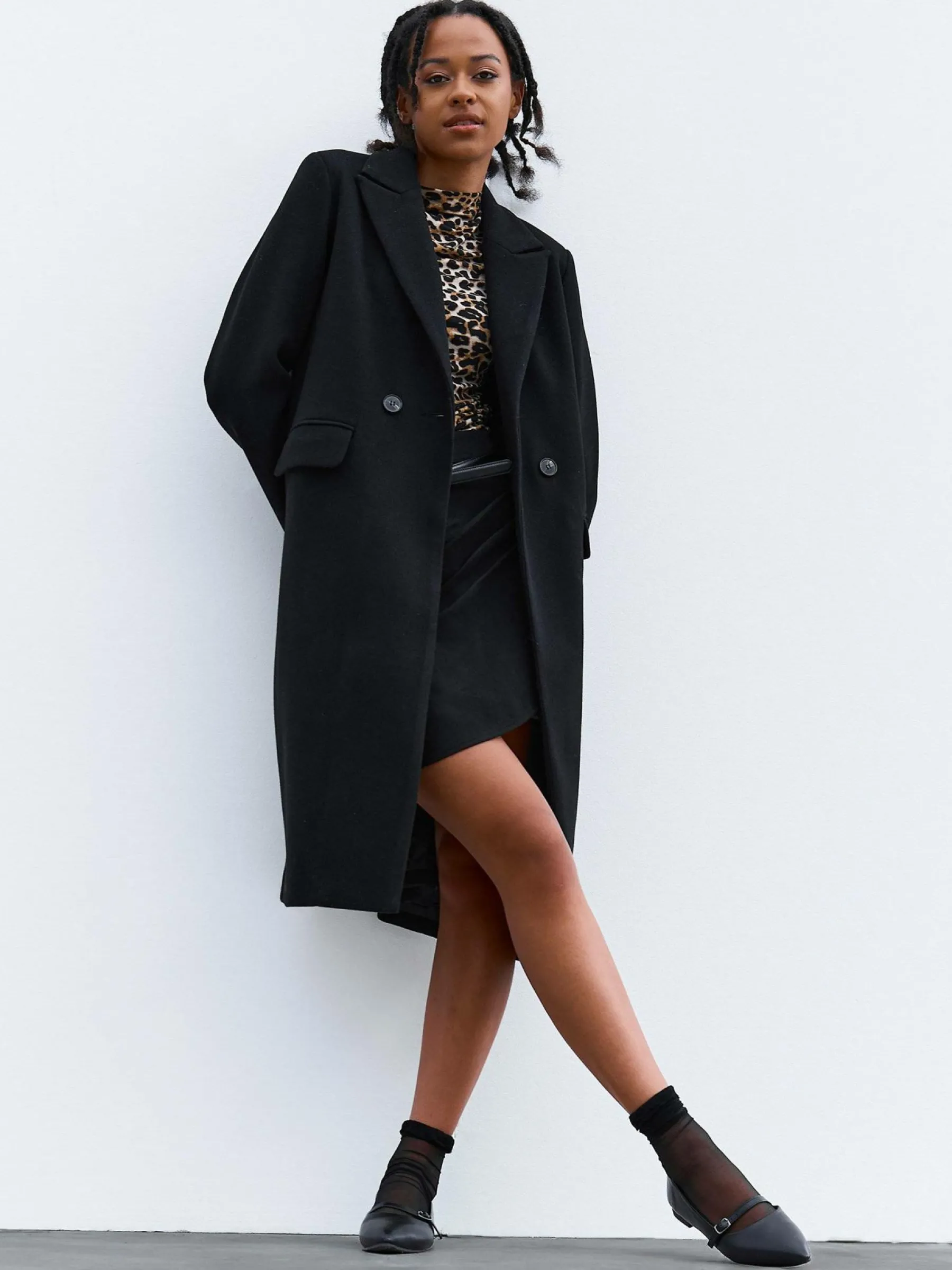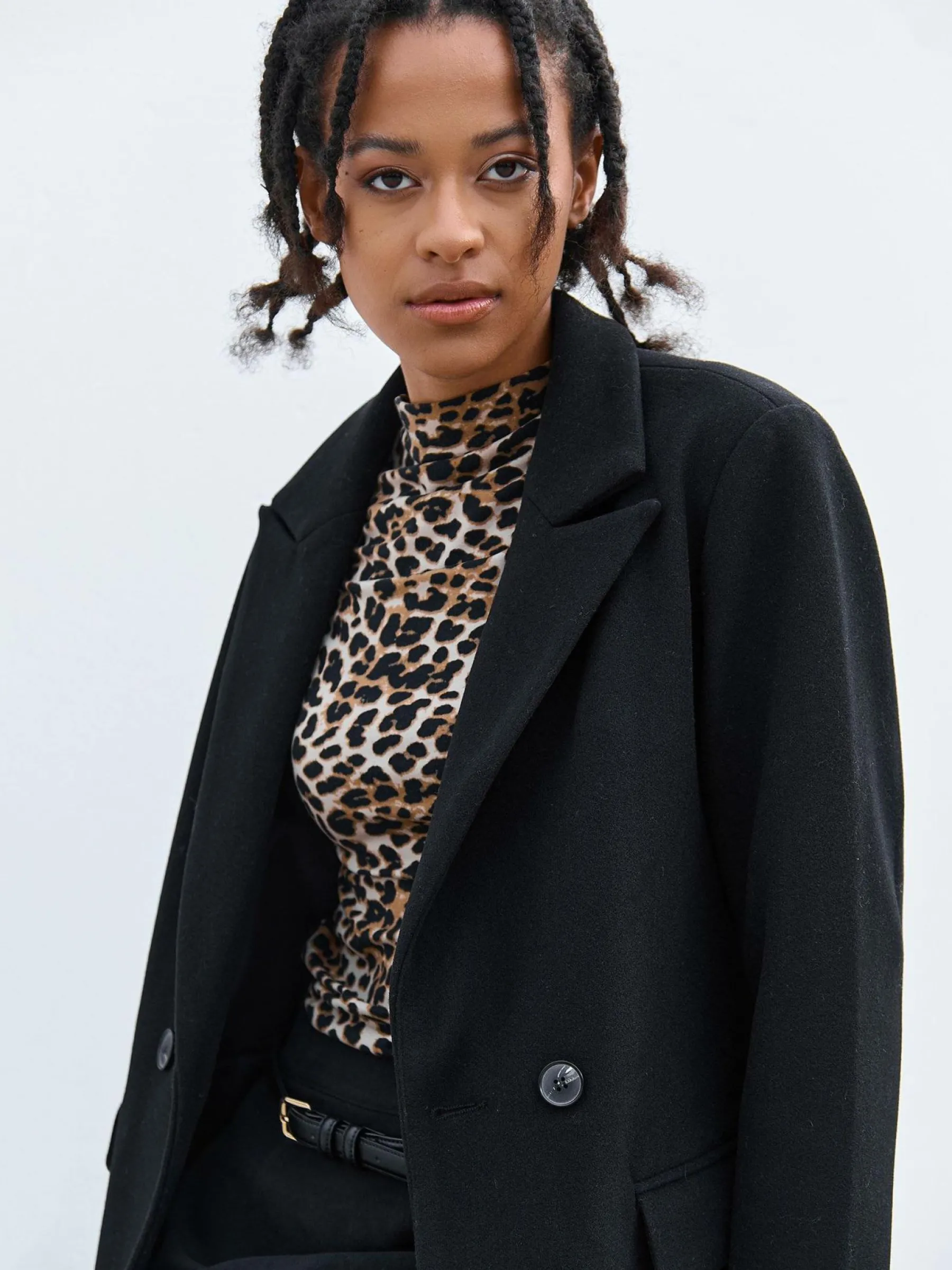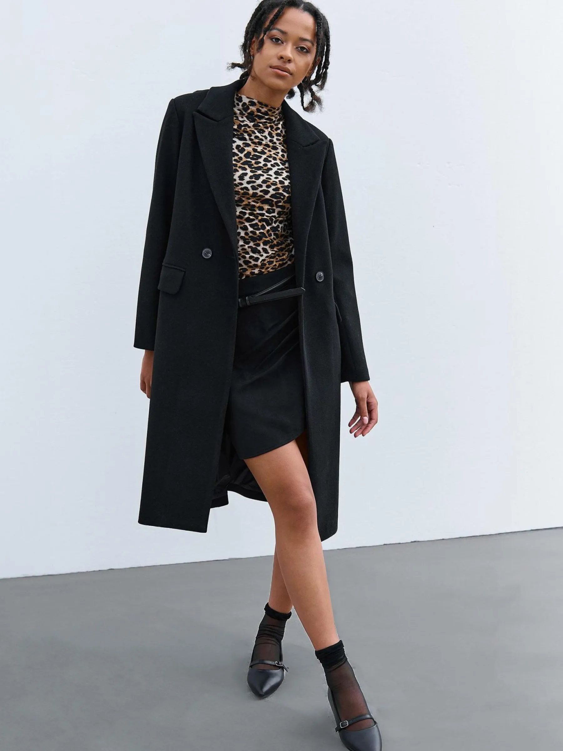 Kolor: czarnyKrój: regularTyp: płaszczRekaw: długi rękawDługość: dlugiePattern style: pojedynczy kolorDetal: na g…