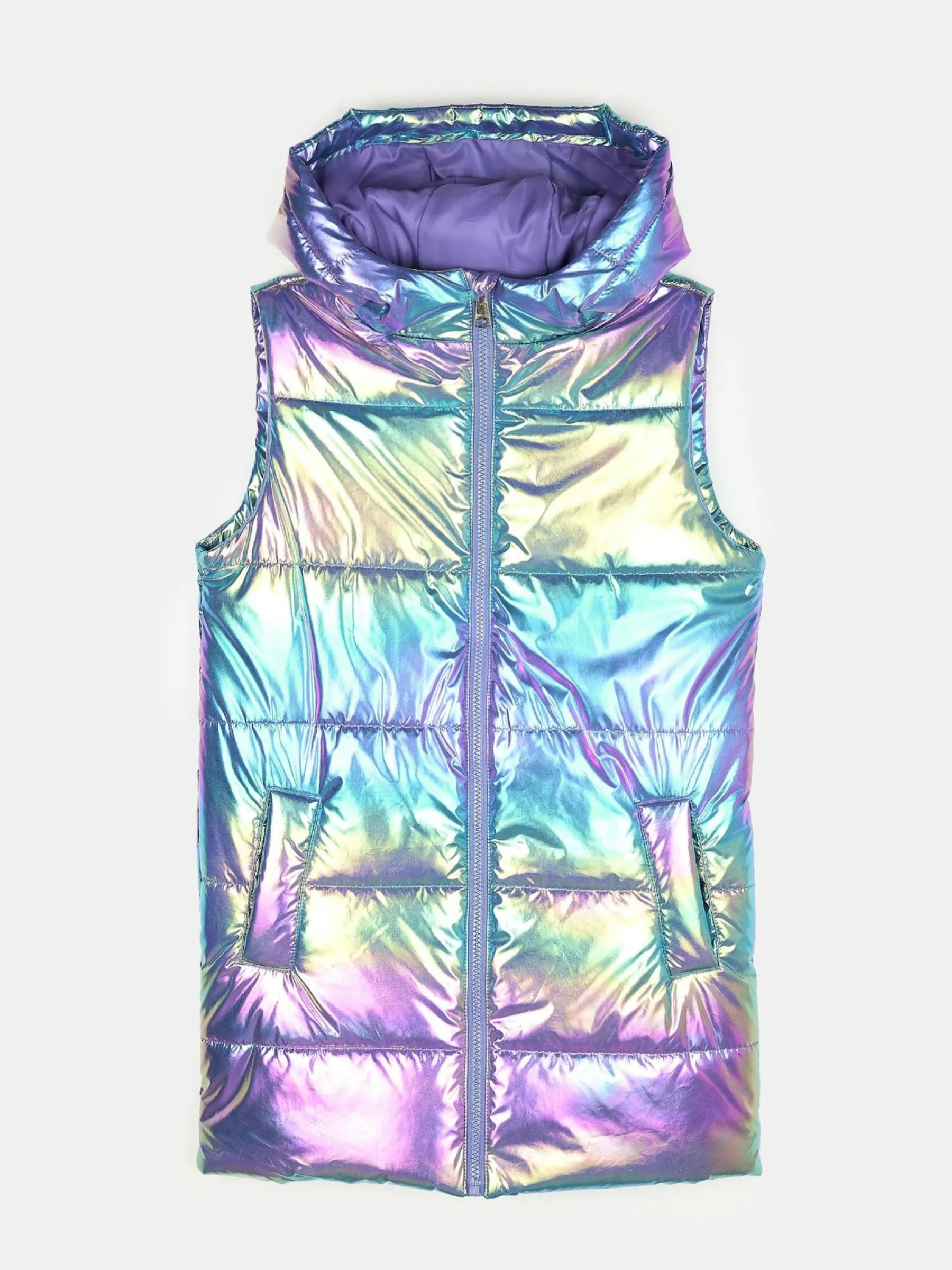 Kolor: purpurowyKrój: regularTyp: kamizelkaRekaw: bez rękawówDługość: krótkiPattern style: wielobarwnyDetal: bluz…