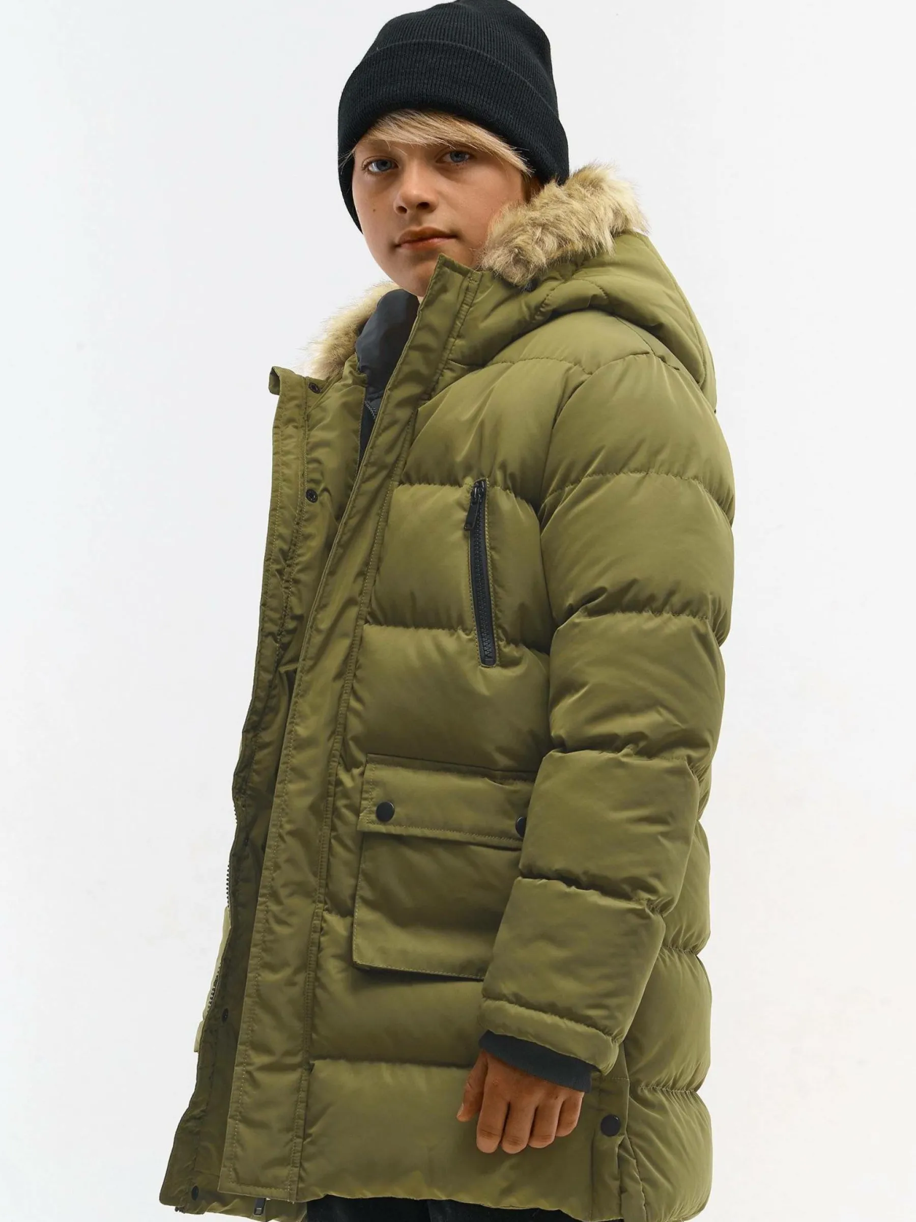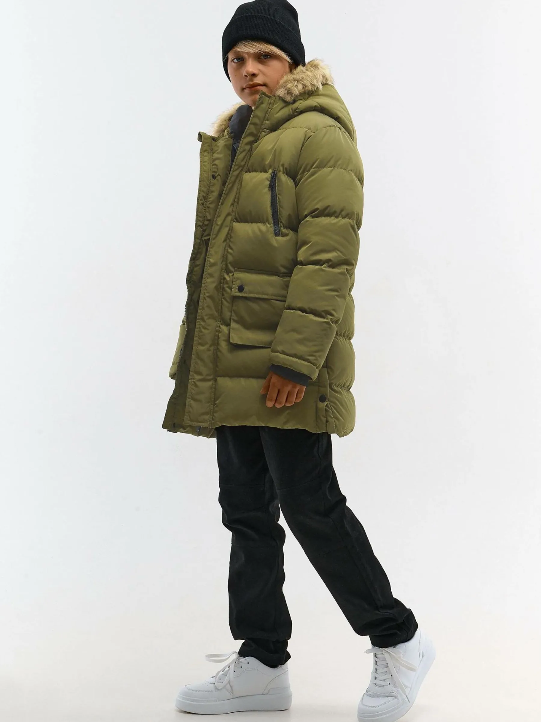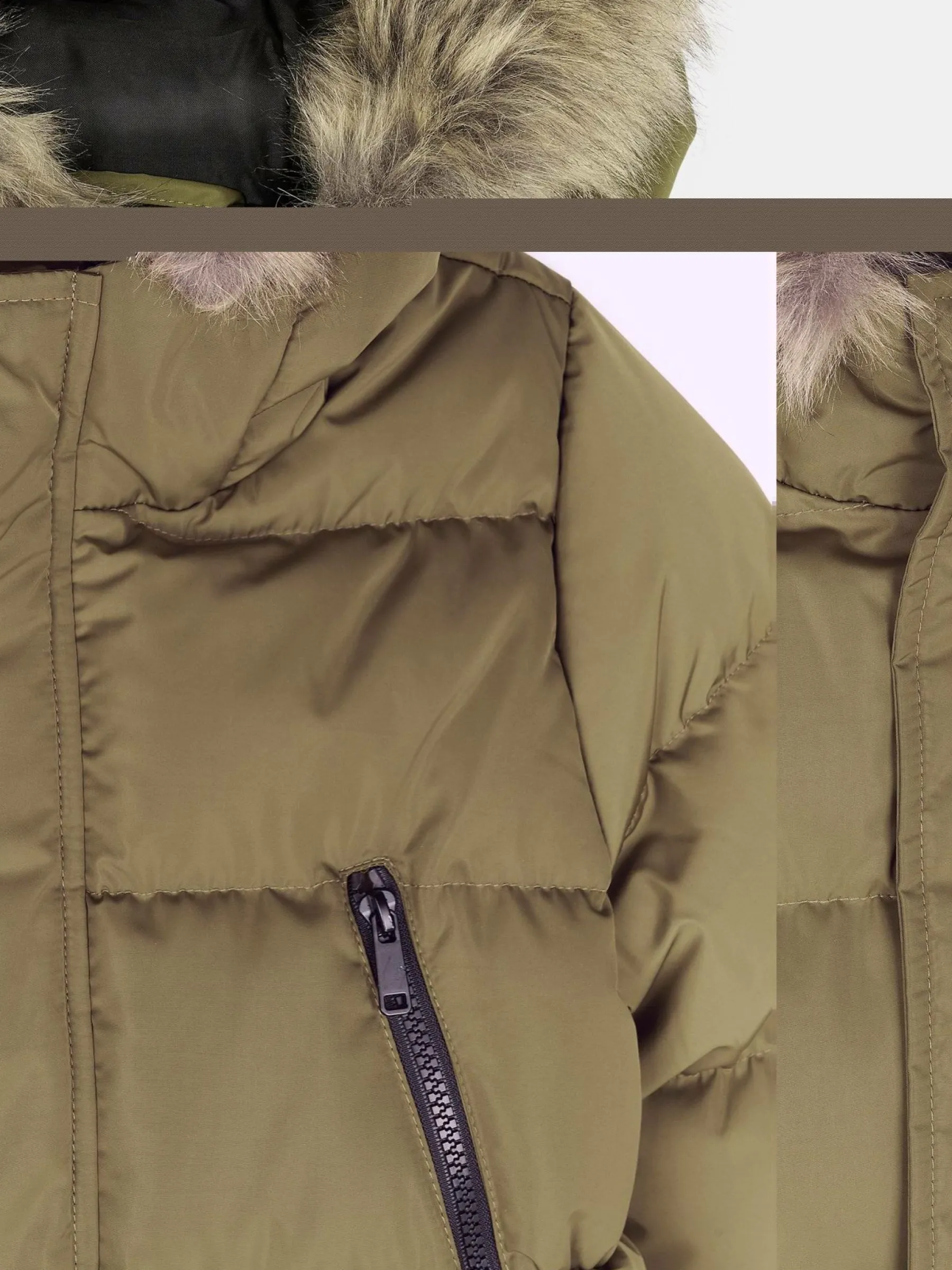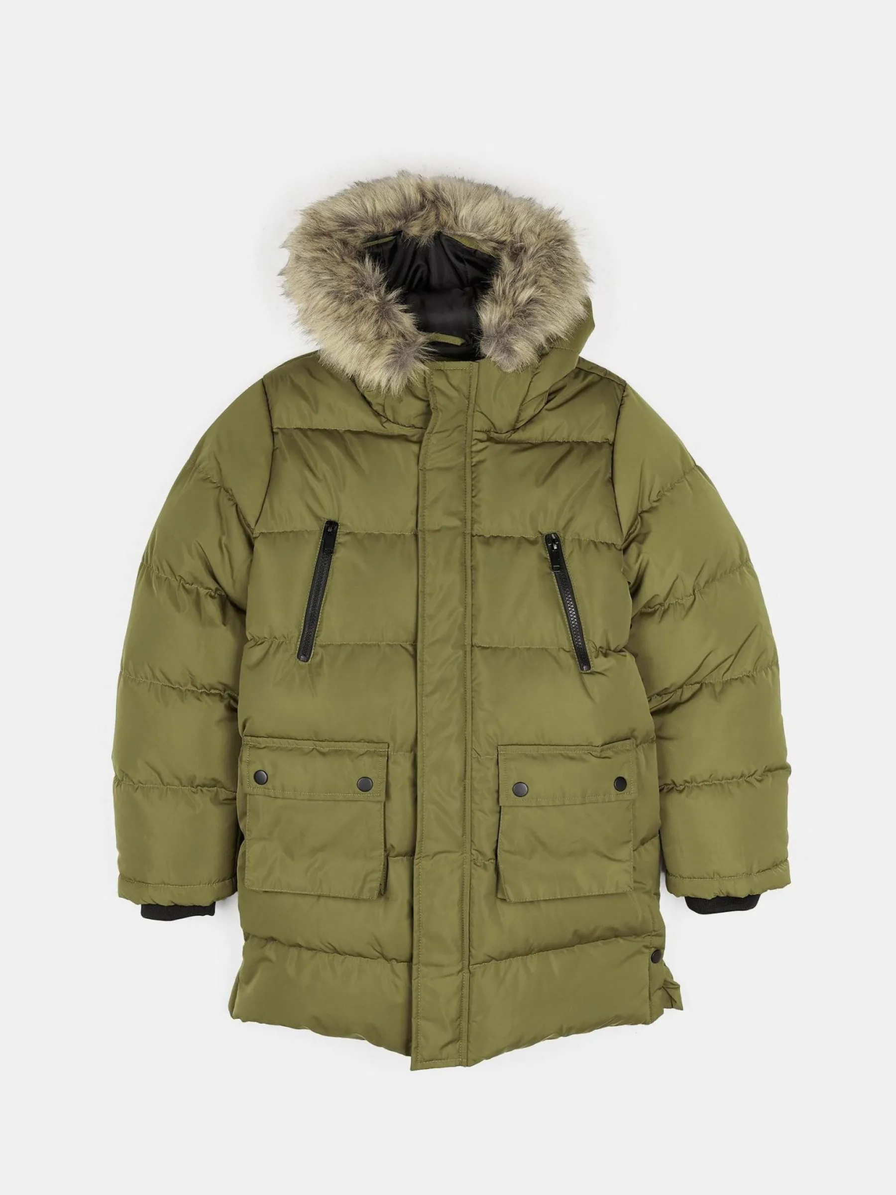 Zdjęcia z modelem mogą nie odpowiadać rzeczywistemu kolorowi produktu.Kolor: khakiKrój: pikowaneTyp: kurtka zimowaRe…