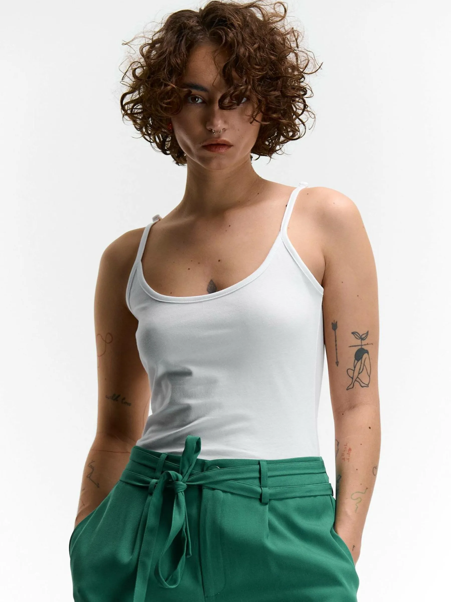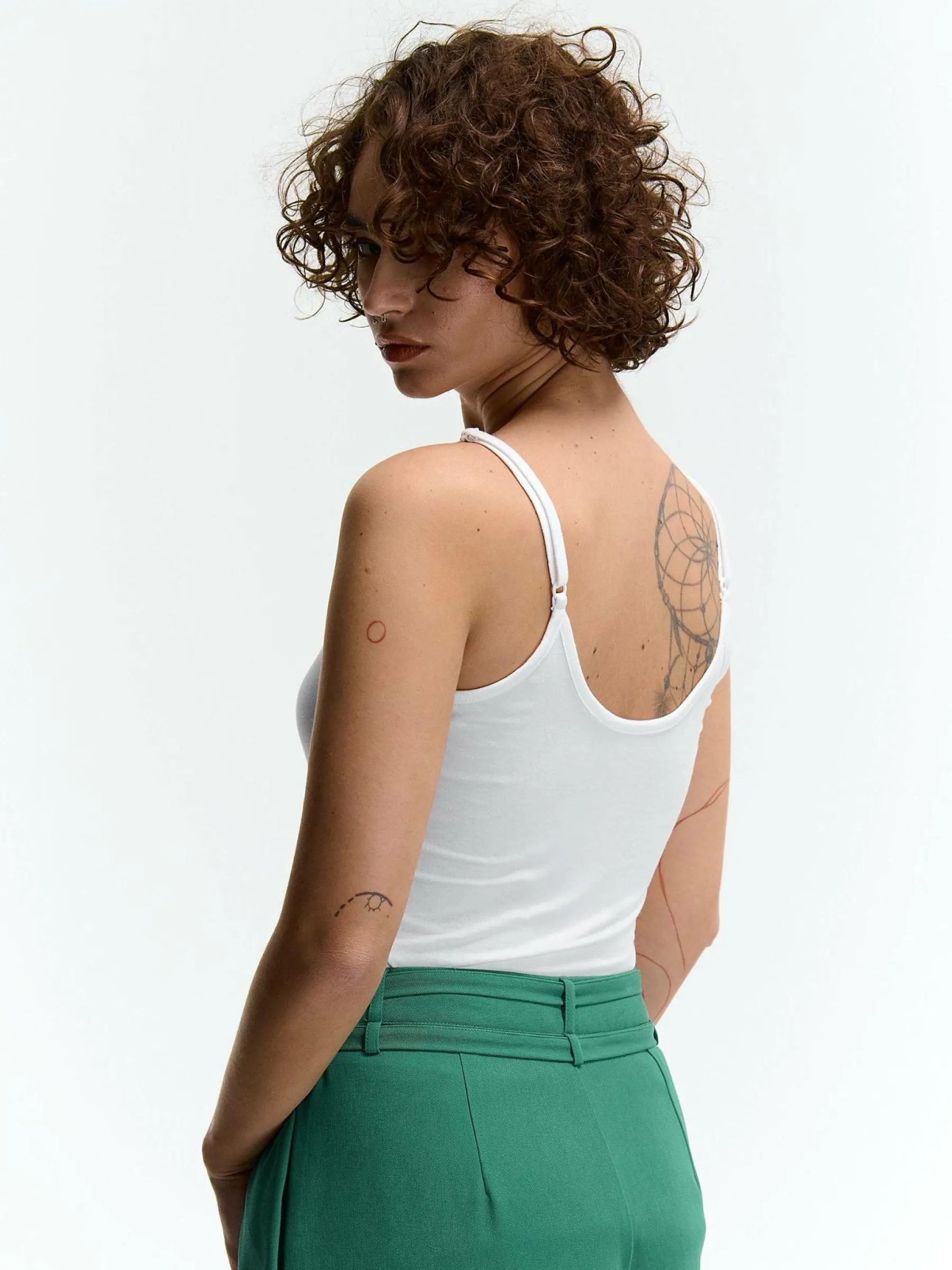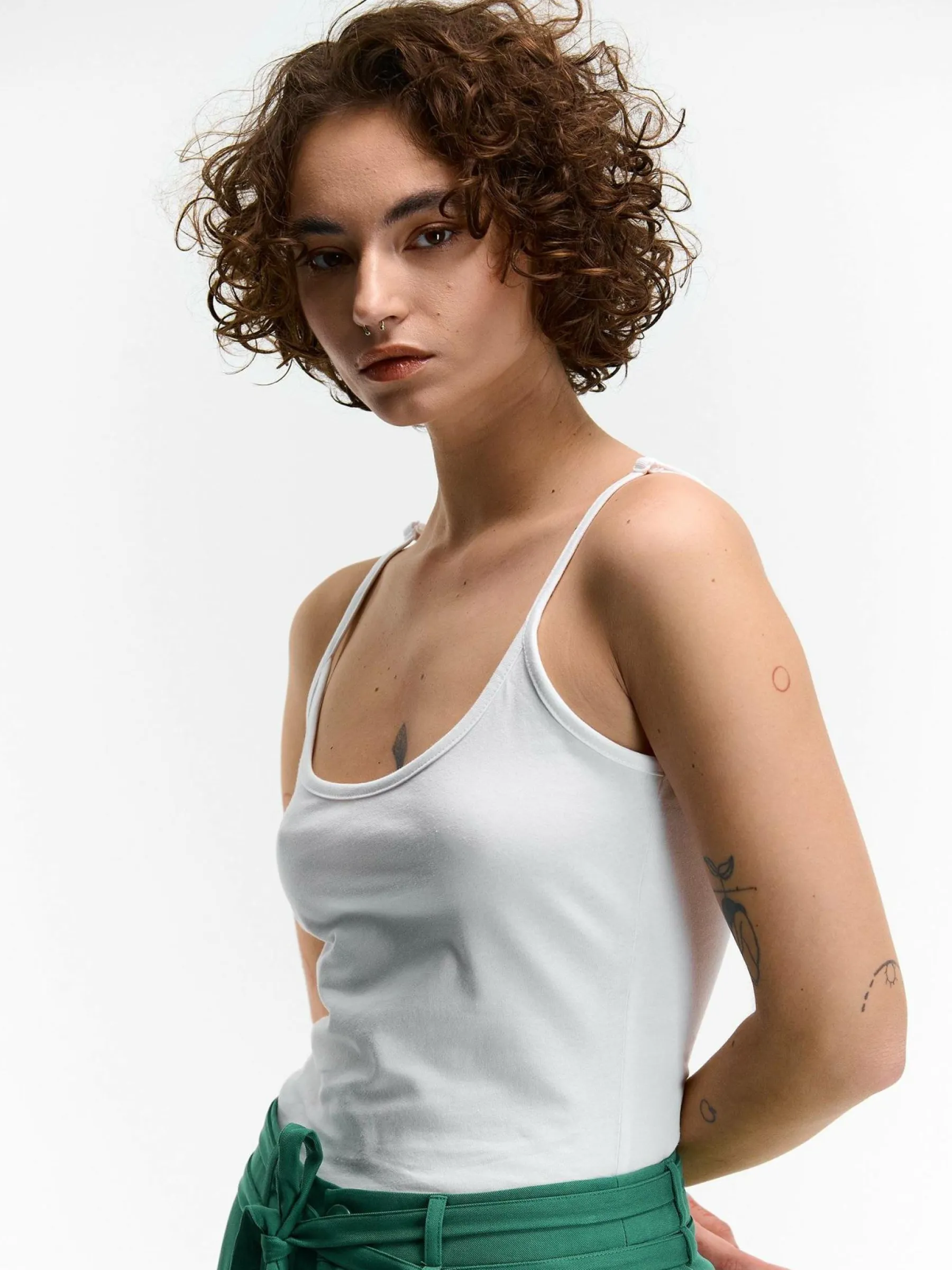 Kolor: białyKrój: podstawowyTyp: podkoszulekRekaw: bez rękawówDługość: krótkiPattern style: pojedynczy kolorDeta…